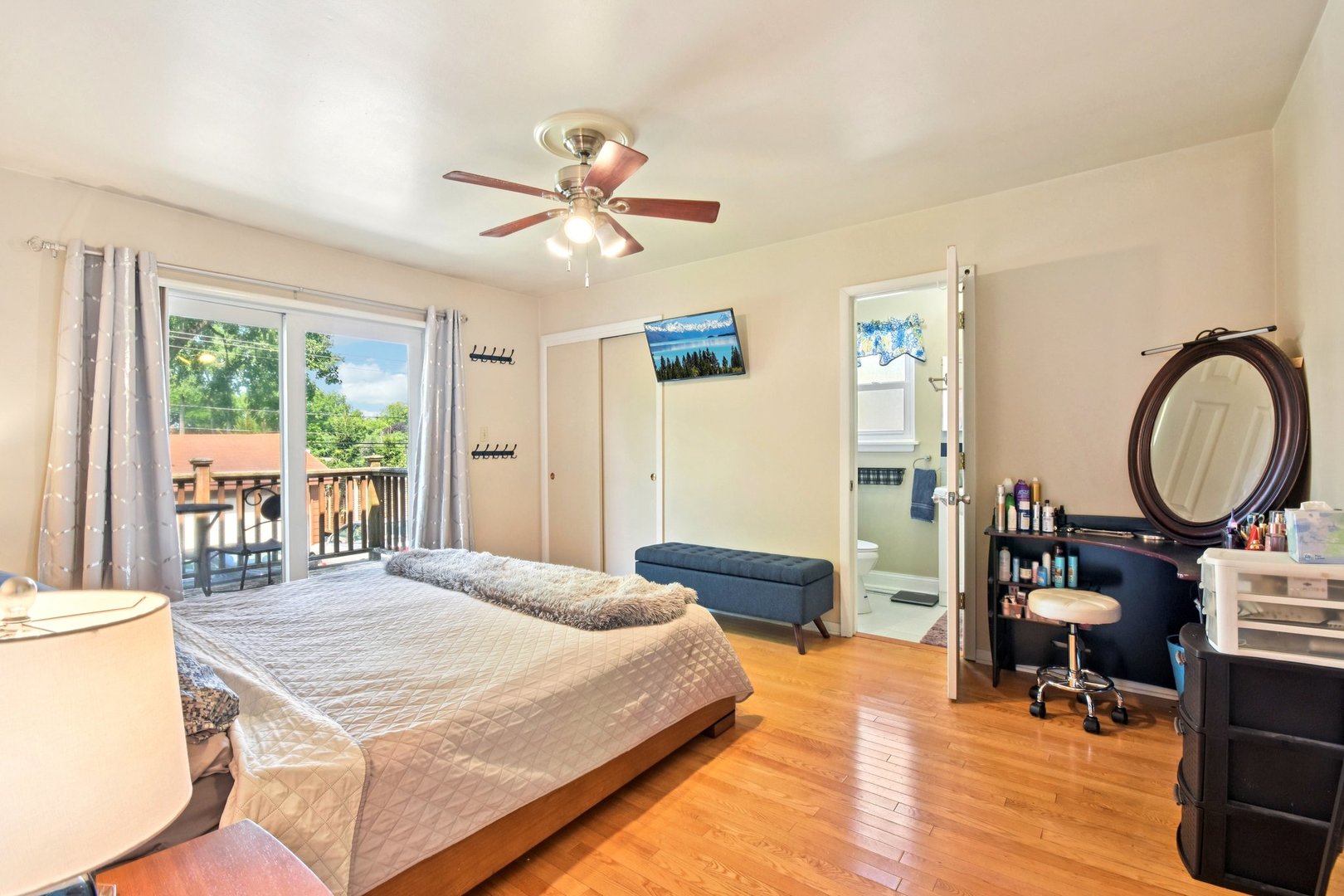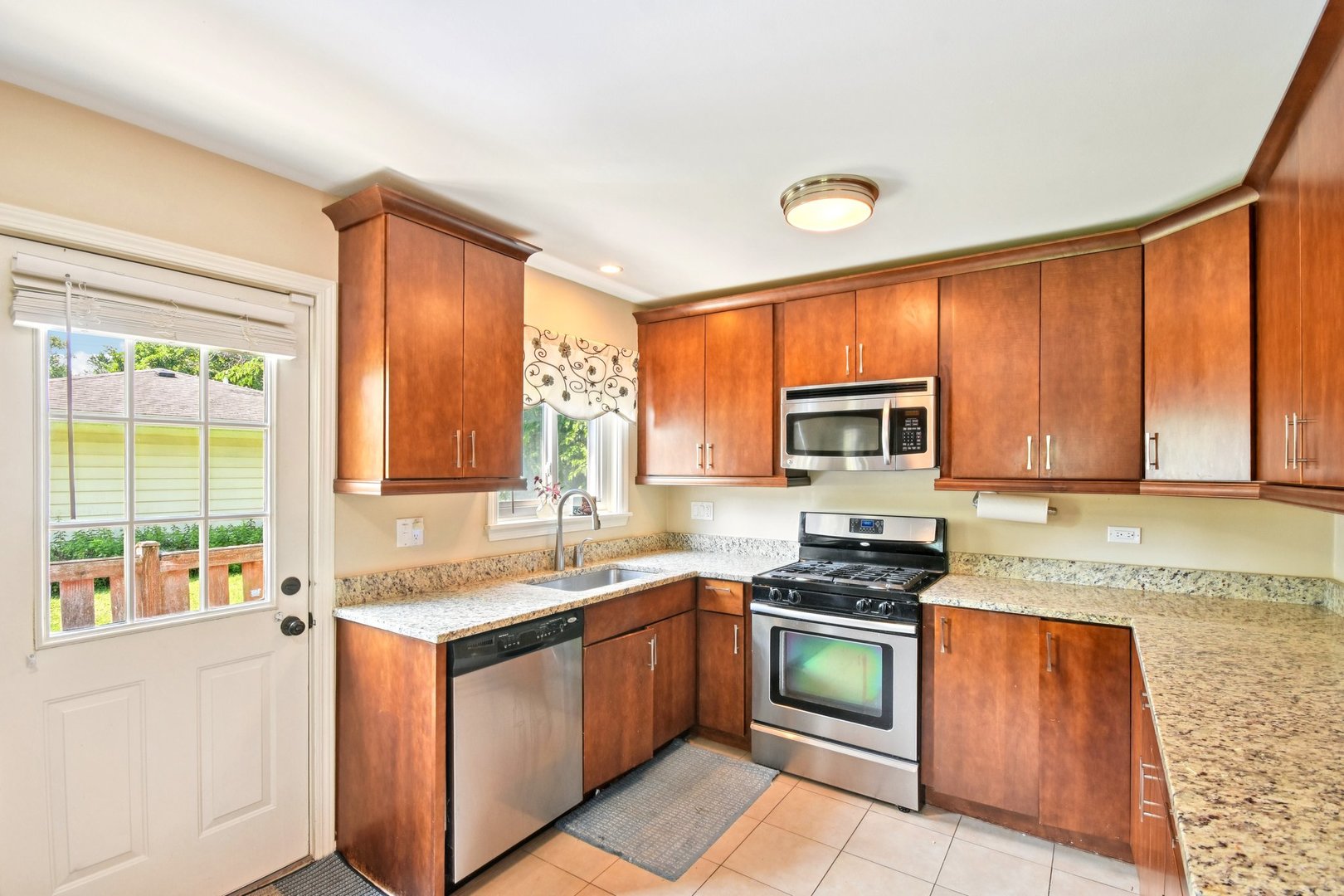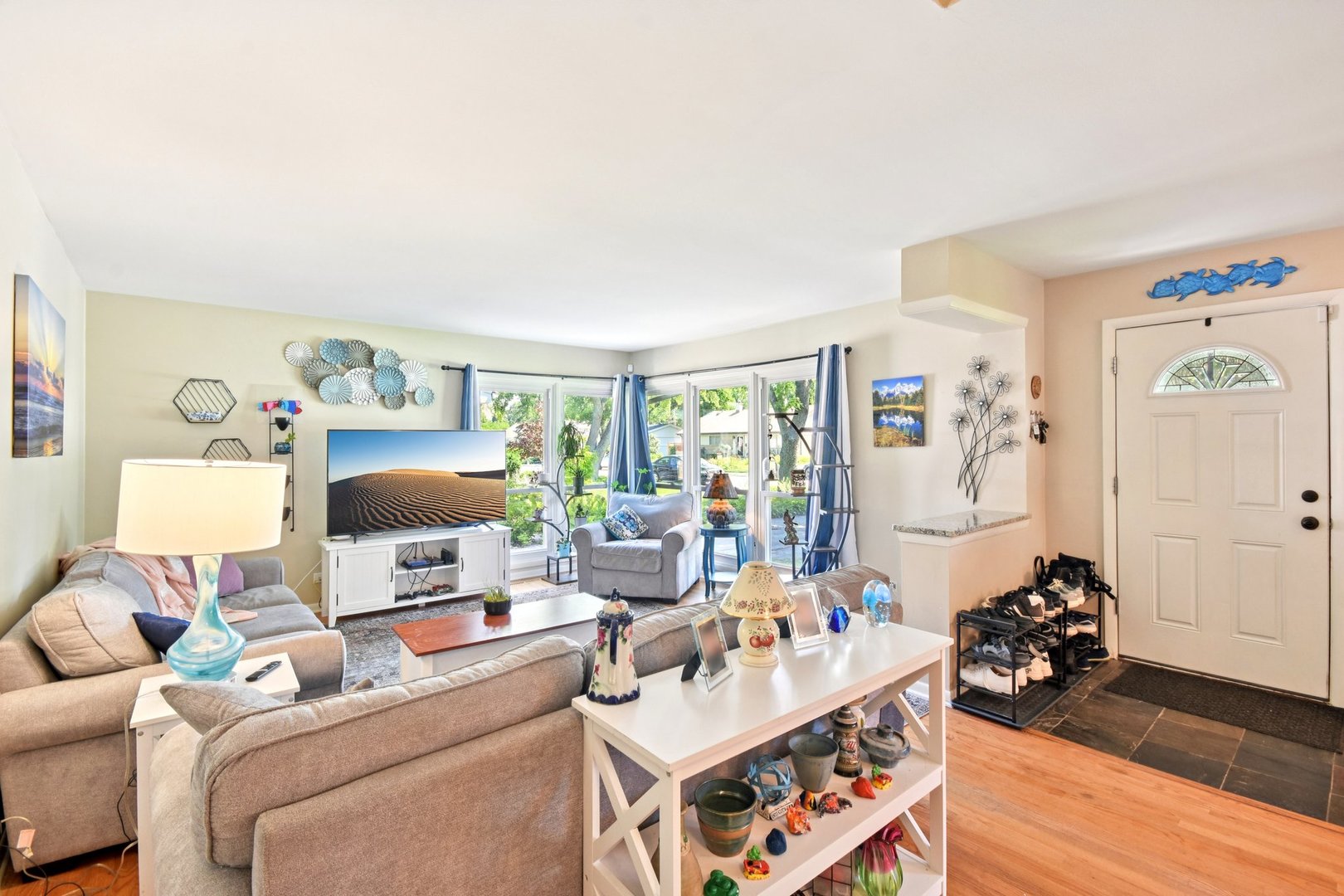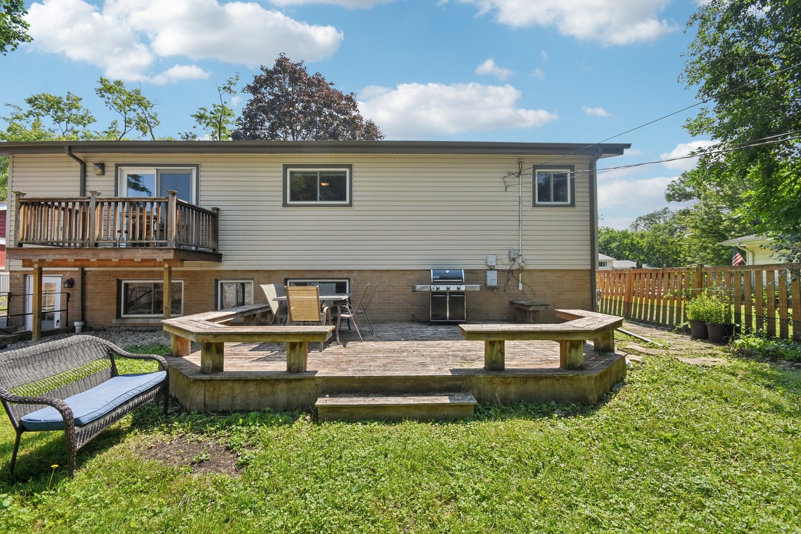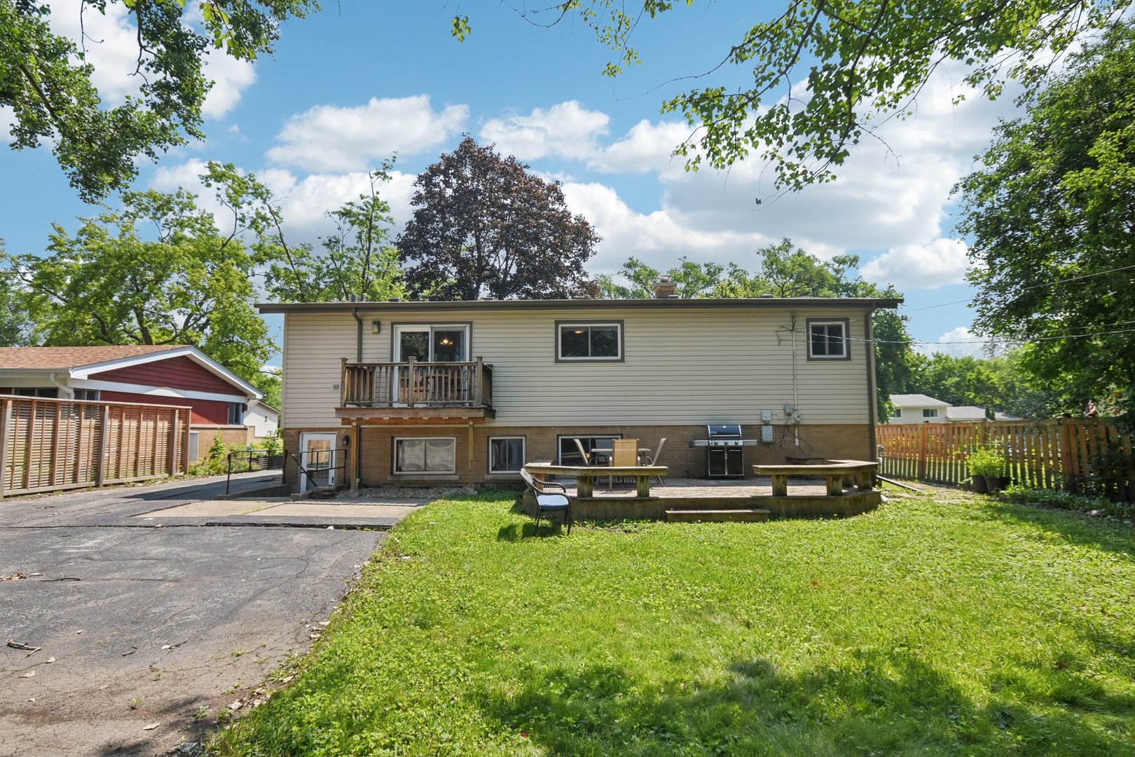 Bright & spacious 3-Bed/3-Bth split-level in perfect Deerfield location! The moment you enter the front door you’re greeted by a large and open living room and dining room with plenty of natural light and gorgeous hardwood floors that flow throughout the home. The updated kitchen features granite countertops, SS appliances and plenty of counter space. Upstairs, your Primary suite is complete with an en-suite bath and sliders that lead out to your private balcony. There are 2 additional comfortable bedrooms and a full bath with double sinks on the 2nd level. Head down to the lower level for even more living space where you’ll find a large family room perfect for a rec room, play room home office and more! The 3rd full bath is also located on this level. Outside, enjoy you large deck and spacious backyard – the perfect place to relax on these beautiful summer days. Oversized driveway and 2.5 car detached garage. Updates include new roof & vinyl siding in 2025, new gutters, fascia and trim outside as well! You truly can’t beat this home or it’s location – backing to a park and within walking distance to the elementary and middle school plus being close to all Deerfield has to offer.
