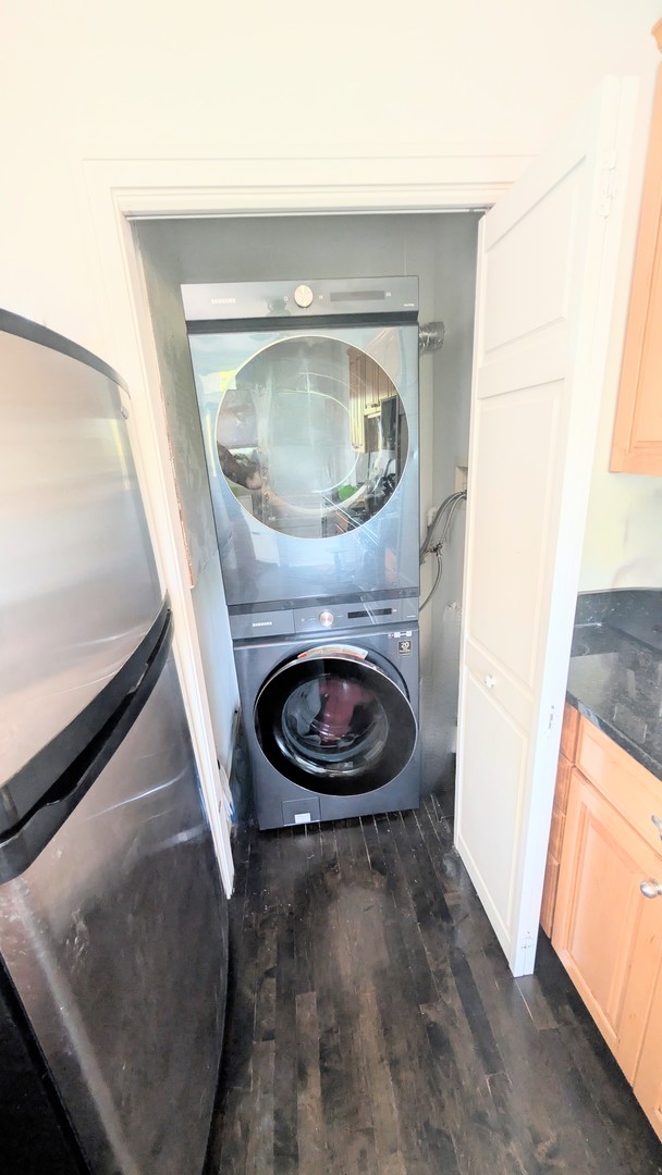 This third-floor condo lives like a house and features fresh neutral decor and gleaming hardwood floors throughout. Wonderful 2 large bedroom 1 bath condo. Located on a quiet, tree lined cul-de-sac street convenient to 290 and the blue line as well as Downtown Forest Park and South Oak Park Ave shops and restaurants. The condo boasts a sunny Living Room, full Dining Room, and an updated Kitchen. In-Unit laundry, a large storage space and 2 parking spaces are included. This truly is an easy-to-live in home. PET FRIENDLY BUILDING! Sunny dining room, and an updated kitchen with granite counters. Enjoy the convenience of an in-unit full-size side-by-side washer and dryer. To top it off, this unit includes 2 parking spaces-a rare find! Enjoy the convenience of walking to the Metra, Green Line, shopping, restaurants, coffee shops, Lake Theatre, library, schools, parks, and more. This is the top-floor condo you’ve been waiting for!