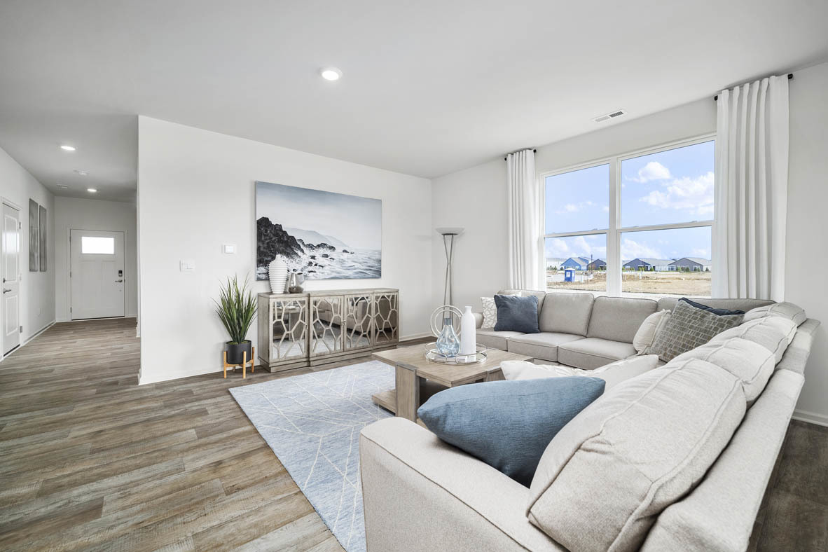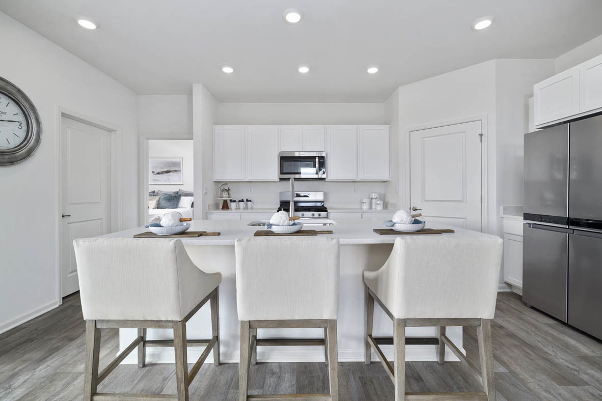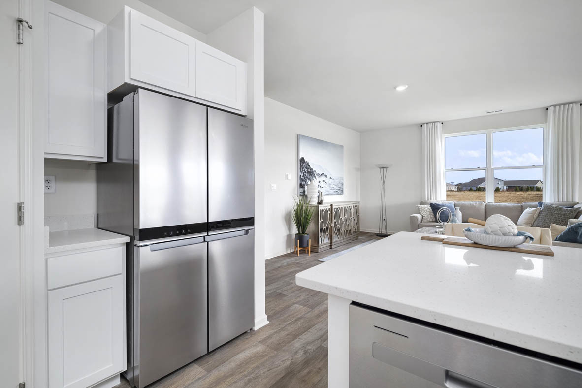 Find yourself in the popular Clifton floorplan at 819 Mesa Lane, in Pingree Grove, Illinois, a beautiful new home in our Cambridge Lakes North community. This home is ready for a quick move-in. The homesite includes a fully sodded yard and beautiful landscaping. This Clifton Ranch plan offers 1,863 square feet of living space with 2 bedrooms and 2 full baths. Enjoy this home’s open concept great room and kitchen which gives you the perfect space for entertaining friends and family. Your kitchen features White designer cabinetry with quartz countertops and spacious pantry. With this Ranch style home, you’ll be able to enjoy your private get away with your large primary bedroom on its own side of the house with a deluxe bathroom containing a raised dual quartz vanity and walk-in closet. As if the huge walk-in closet wasn’t enough, the master has a second walk-in closet for all your storage needs. Enjoy the convenience of a walk-in laundry room right next to the primary bedroom. Luxury vinyl plank flooring throughout the kitchen, bathrooms, and laundry. Impressive innovative ERV furnace system and tankless water heater round out the amazing features this home has to offer! All Chicago homes include our America’s Smart Home Technology. Photos are of similar home and model home. Actual home built may vary.