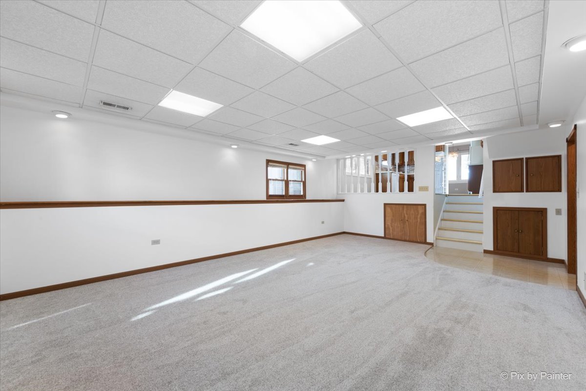 Charming split-level home offering 3 bedrooms, 2 full baths and wide 2.5 car garage. Walk up the long driveway and step inside the open living and dining area with fresh paint and carpet, big windows for tons of natural light. Great kitchen with ample cabinets and counterspace and eat-in area. Head upstairs to the Master bedroom with his and her closets and access to the full hall bath with double sink vanity and shower over tub combo. 2 additional bedrooms round out the upper level. Downstairs is a roomy family room with fresh carpet, full bath with shower stall, laundry room and access to the crawlspace for storage. Relax outdoors on the large concrete patio or in the lush greenspace of the fully fenced backyard. Walking distance to the schools and West DuPage Woods Forest Preserve.