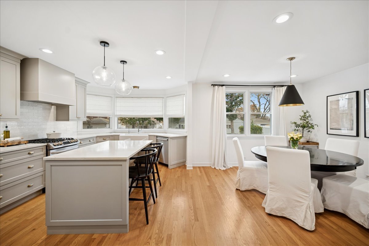 Welcome home to this beautiful brick & stone 4bed/2bath move-in ready home. Upon entry you are greeted by a welcoming living room featuring a large picture window that fills the space with natural light. Living room offers a comfortable layout with ample seating, hardwood floors and a neutral color palette that compliments any style. A fireplace adds warmth for everyday living or entertaining. New kitchen featuring soft gray shaker cabinetry, warm brass hardware and a large center island with seating. Quartz countertops, stainless steel appliances, and a spacious farmhouse sink offer both style & function. Two globe pendant lights highlight the island, while the expansive bay window brings in abundant natural light. Adjacent dining room complete with a bar area, beverage fridge & glass cabinets. A first floor bedroom perfect for guests and a newly renovated bathroom. Upstairs a gracious primary bedroom with additional desk space, walk in closet and a balcony. Two additional bedrooms with loads of natural light and ample closet space. Upstairs bathroom features a walk-in shower with a rain shower feature, a whirlpool tub and dual sinks. The basement is partially finished and offers a great space to hang out, storage room & laundry. New roof on the home & garage and new basement furnace in 2022. Lush fenced in yard with patio space. Steps from the Park District of Forest Park pool & brand new splash pad, tennis courts, pickleball courts, soccer field, skate park, playground, and ROOS recreation center. Easy access to 290 & Blue line and all Forest Park has to offer!