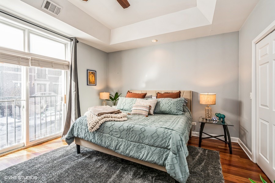 Welcome to your new sun-soaked condo nestled in the perfect spot of Fulton River District. This stunning 2-bedroom, 2-bathroom condo isn’t just a home – it’s a lifestyle. Within minutes, ALL the restaurants and coffee shops of Fulton Market & West Loop are at your fingertips, with East Bank Club just across the river. This spacious layout feels airy and bright with plenty of room to host friends and family. Off the living room the kitchen peninsula was meant for the everyday chef as well as a massive private outdoor terrace. South and west-facing windows? Check. Ample sunlight streaming in like you’re living in your very own golden hour. Your plants are going to love it, and so will you. Next, the second bedroom is a versatile dream – comfortably fitting a queen bed and a work station, so you can easily balance both comfort and productivity. It’s perfect for that hybrid life! Same energy goes for the second guest bathroom. The primary bedroom, however, is a whole vibe. You’ll have plenty of space for a king bed and nightstands to keep all your essentials close. Plus, the deep walk-in closet with built-in shelves is more than just storage; it’s an organized, wardrobe paradise. Primary bathroom has a dual vanity and tub/shower combo. Let’s talk about the cherry on top – a perfect parking space included in the price. No more hunting for a spot – it’s like the universe knew you needed one less thing to stress about.
