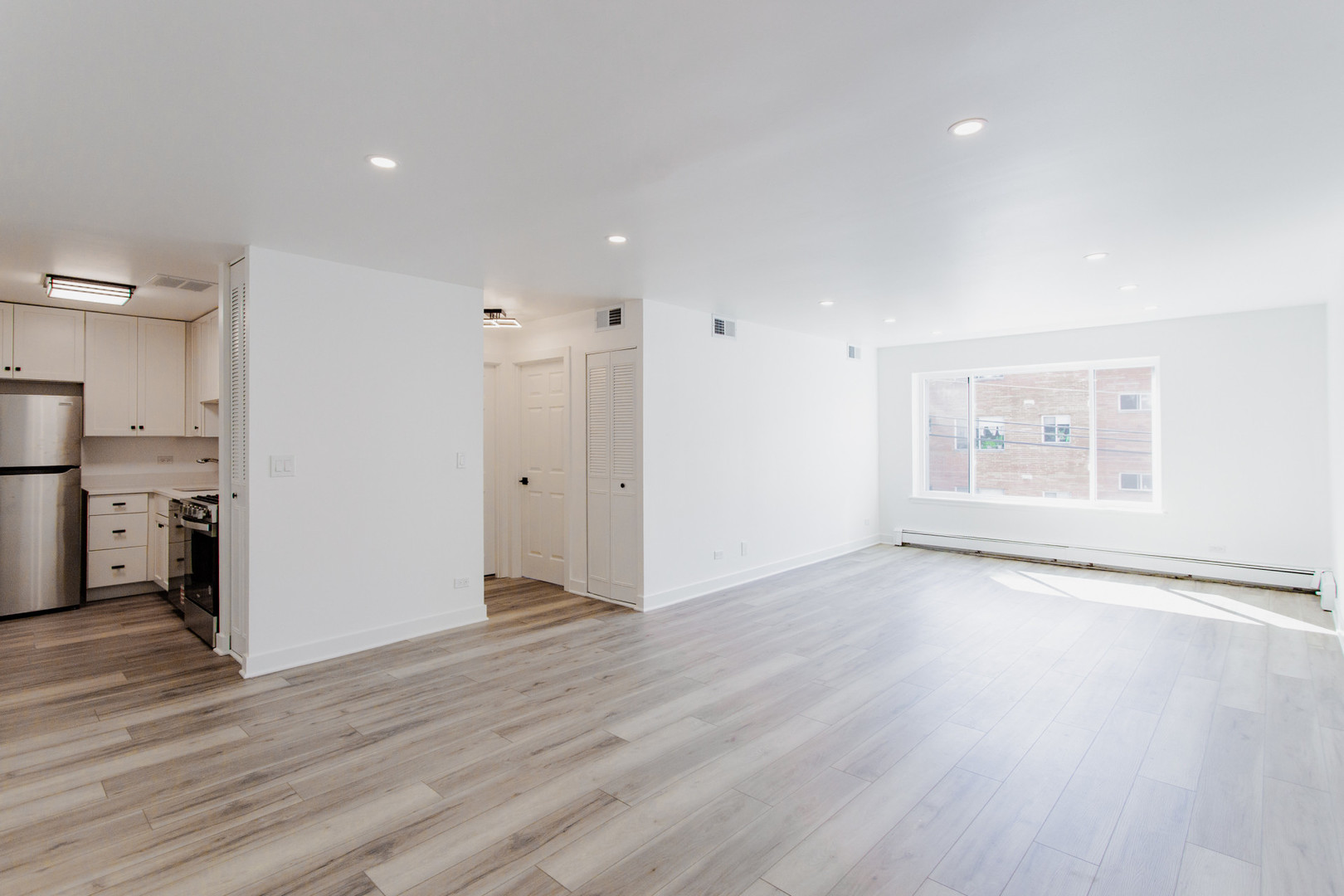 Beautifully remodeled one bedroom, one bath condo in the heart of vibrant Skokie. This stunning unit features brand new flooring, a modern kitchen with quartz counter tops, custom cabinetry, and stainless steel appliances. The bathroom has been completely renovated and the home boasts new lighting, fresh paint throughout and new windows. 1 car parking space and storage included. All updates were done with full plans and permits from the Village of Skokie. Don’t miss this move-in ready opportunity. Schedule your showing today.