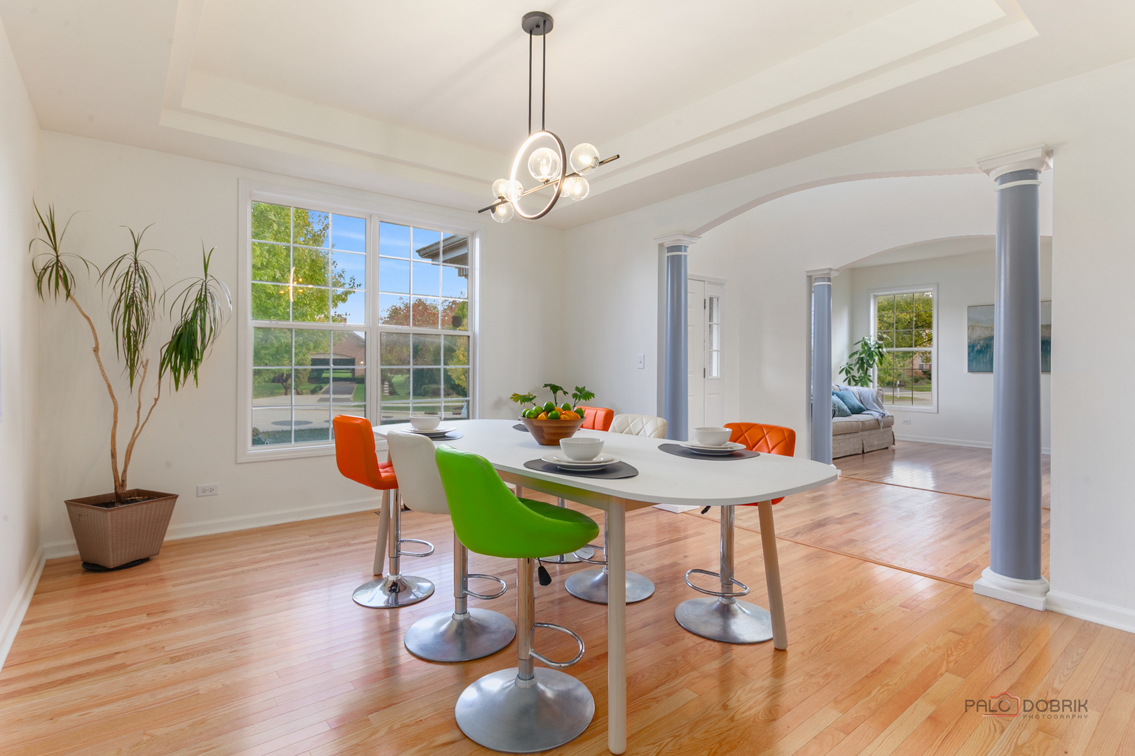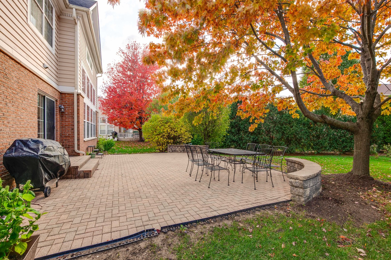 Welcome to this beautiful four-bedroom, 2.1-bath home in the highly desirable Gregg’s Landing community! This stunning home features sun-filled rooms, an open floor plan, and elegant finishes throughout. The inviting living and dining rooms set the tone for comfortable and stylish living. The two-story family room is the heart of the home, boasting soaring ceilings, a cozy fireplace, and abundant natural light. The chef’s kitchen offers stainless steel appliances, a large island, ample cabinet and counter space, and a sunny eating area with patio access, perfect for indoor-outdoor entertaining. A convenient main-level office provides the ideal space for working from home. Upstairs, the spacious primary suite features a walk-in closet and a luxurious private ensuite with double sinks, a soaking tub, and a separate shower. Three additional bedrooms and a full hall bath complete the second level. The full unfinished basement offers endless possibilities for future living space. Step outside to the beautifully landscaped yard with a brick paver patio, perfect for relaxing or hosting gatherings. Ideally located near Vernon Hills shopping, restaurants, parks, and top-rated schools, this home combines comfort, convenience, and luxury living in one of the area’s most sought-after neighborhoods! The recent updates: 2025(AC, water heater, carpet, fresh paint, refinished kitchen and bathroom vanities, light fixtures, 8 windows,refinished main level hardwood floor, power wash patio, kitchen sliding door), 2024(upper level hardwood floor, oven, stovetop, kitchen sink and faucet), 2023 furnace, 2022 roof, 2019 washer, 2015(dryer, fridge).