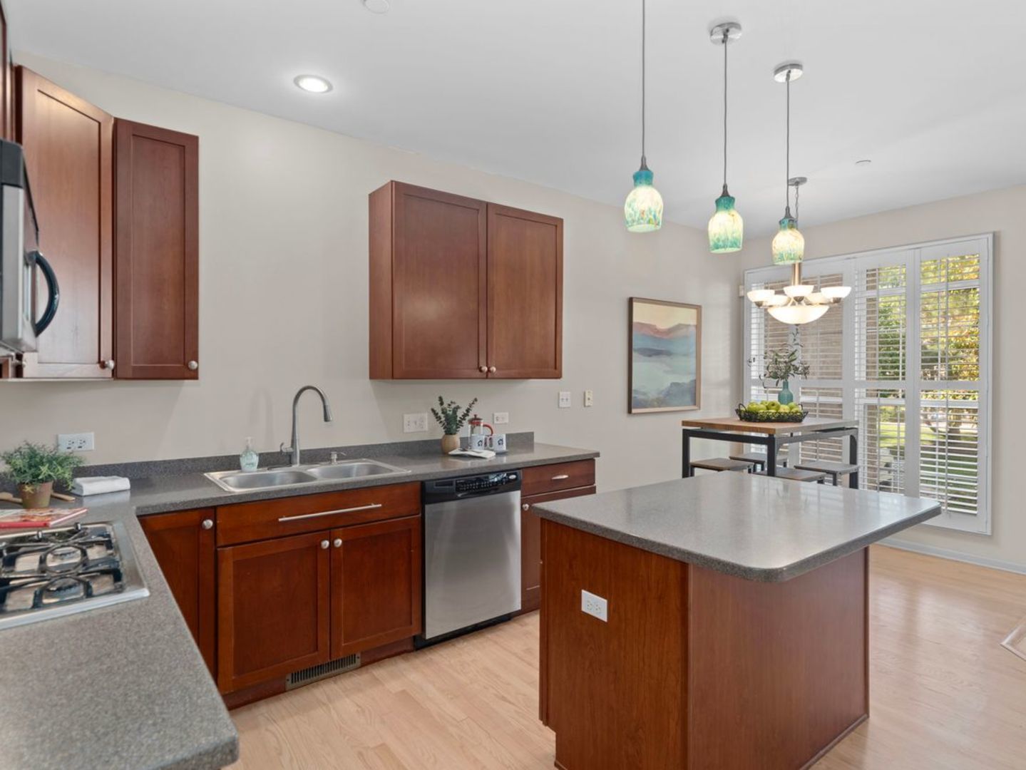 Gorgeous Inverness townhome welcomes you! Discover this beautifully maintained home in the desirable Weathersfield subdivision, perfectly located near Barrington shopping, restaurants, the Metra train, and major expressways. Offering style, space, and functionality, this home is in absolute pristine, move-in condition. Newer appliances replaced in 2023 and 2024, floors refinished in September 2025 and interior freshly painted in today’s popular color palette in August 2025. Roof replaced summer of 2024, central AC and garage door/opener in summer of 2023. As you enter, you’ll be met with gleaming hardwood floors and fine finishes throughout. On the main floor, you’ll find a versatile room at that would be ideal as a private den or office. Expansive living room/family room is large enough to create two different areas as depicted in photos and floor plans. Picture yourself warming by the fireplace that ignites simply with a wall switch, offering immediate comfort and warmth. Sliding doors flood the room with natural light. They open to the brick paver patio that overlooks lovely outdoor space. The bright, beautifully designed chef’s kitchen is designed for both everyday living and entertaining. Features include an island, breakfast room eating area, double ovens, cooktop with built-in overhead microwave hood, garbage disposal, high end refrigerator, and an abundance of high quality cabinets offering ample storage space. The kitchen open layout flows seamlessly into a dining area next to the warm and cozy double-sided fireplace, offering plenty of space for gatherings in the heart of the home. A powder room and spacious laundry room with cabinetry and a utility sink complete the main floor. Upstairs you’ll find stunning luxury vinyl flooring in the expansive loft, primary suite and 2nd ensuite bedroom. The loft would make a perfect sitting room or home office. The primary suite has a large luxurious bathroom with tub, separate shower and double sink vanity. Notice the huge walk-in closet! The 2nd bedroom privately located on the opposite side of the loft, is generously sized with a full bath and walk-in closet. The large unfinished basement is a blank canvas — offering endless possibilities for customization based on your specifications. Spacious 2-car attached garage. Bring your precious pets with you to this lovely community with the HOA taking care of snow removal, lawn care, and exterior maintenance. This exquisite home combines comfort and elegance in a prime Inverness location-an opportunity not to be missed!