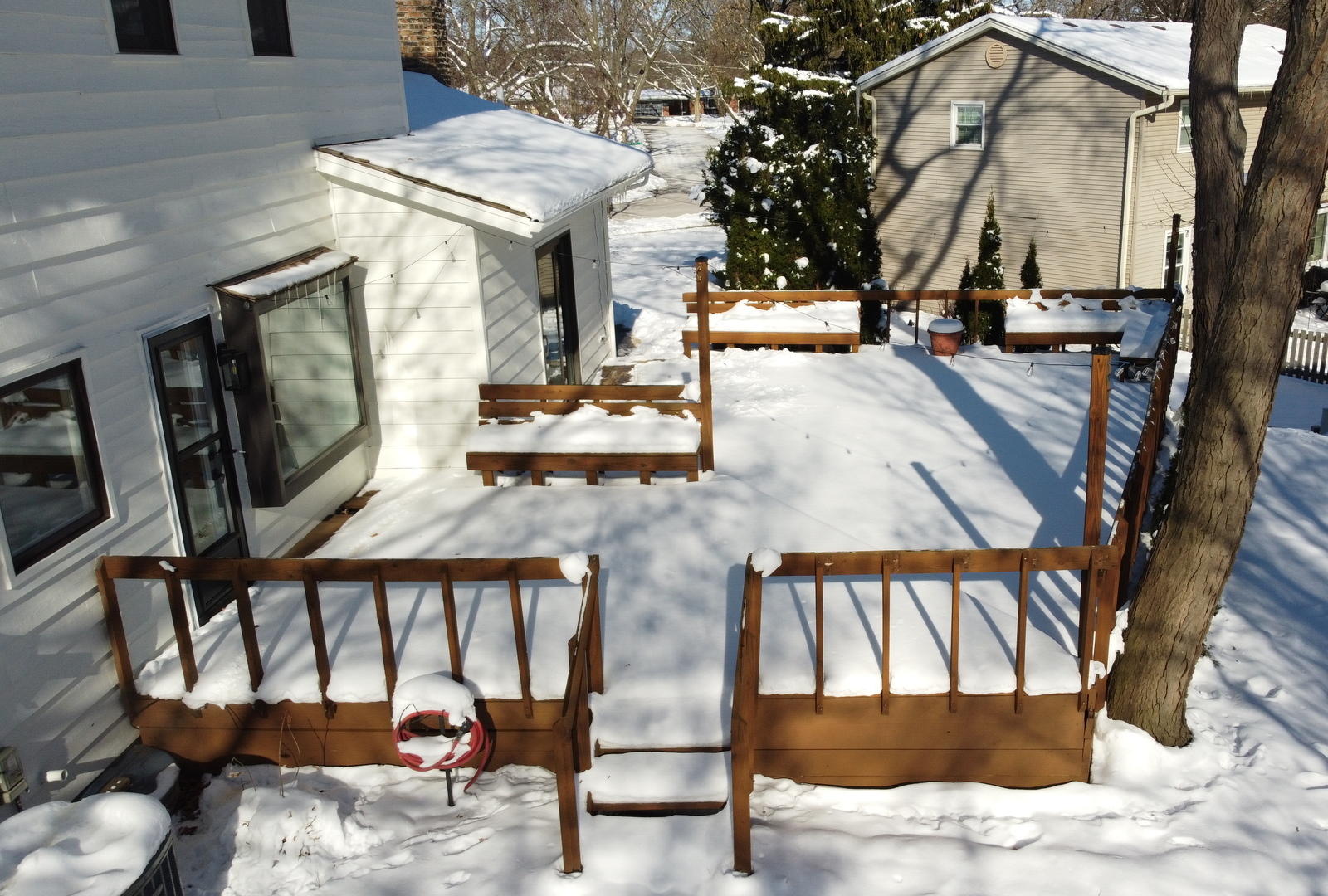 Beautifully updated and ideally located, this 4-bedroom, 2.5-bath home sits on charming 5th Avenue, in the heart of Libertyville. Step inside to a well-designed circular floor plan with hardwood floors throughout, perfect for easy living and effortless entertaining. The brand-new, sun-filled kitchen features all-new appliances, expanded cabinetry, a beverage fridge, and a pot filler above the range. It opens directly to both the living room, and a warm and inviting family room with a wood-burning fireplace with a gas starter, and sliding glass door leading to an expansive wood deck with cafe lights, an ideal extension of your entertaining space. Upstairs, the stunning primary suite offers a newly expanded luxury bath with an oversized walk-in shower. Three additional bedrooms share a beautifully renovated hall bath with double sinks. The finished basement adds even more versatility with a recreation area and a bar for hosting. The newly added mudroom is a necessity in our snowy climate, with tile floors and lockers, it’s ready for all your boots and gear! Situated on a desirable corner lot, the property offers abundant outdoor entertaining space. This centrally located home is just two block south of Copeland Manor Elementary, and close proximity to the middle school and high school, with easy access to MainStreet Libertyville, the Metra, and everything Vernon Hills has to offer just south and easy access to 94. Fully renovated, top to bottom, this one is completely turn-key, ready for new owners to love!