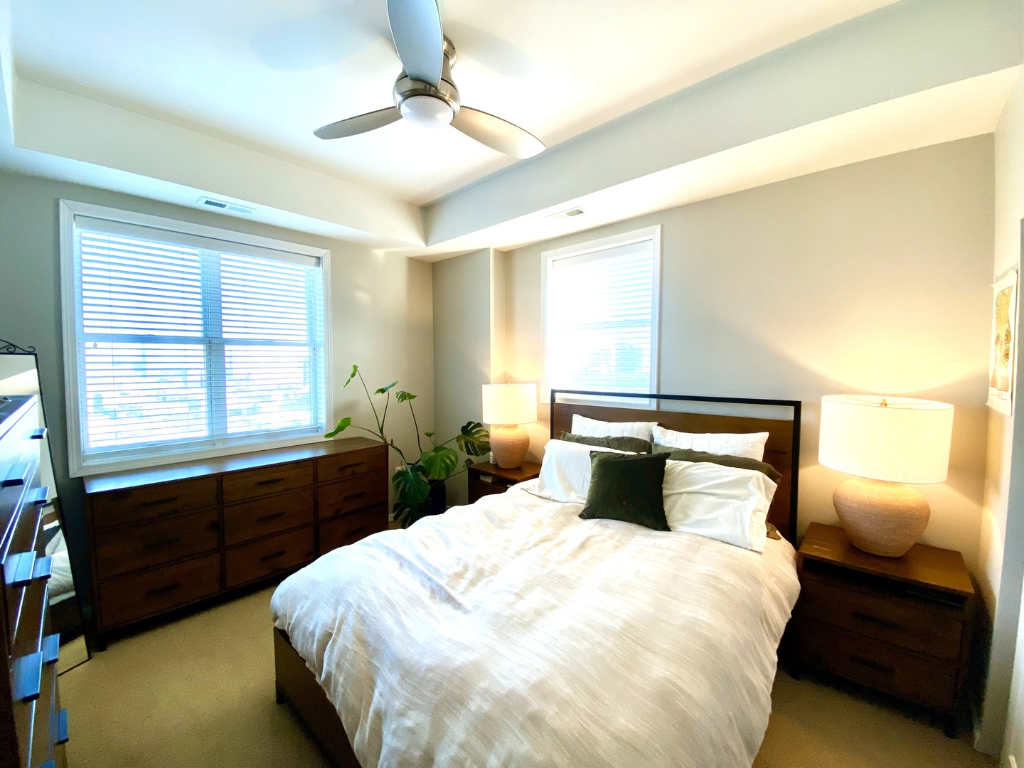 Beautiful Corner Unit 2 bed/1 bath Lakeview East condo with garage parking in a boutique elevator midrise. 2 deeded garage parking spots included in price. You can use both parking spots, rent one out, or sell one. This unit has a beautiful entrance foyer, a large living/dining room combo, and a modern kitchen with stainless steel appliances, ample granite counters, 42″ cabinetry, and an island. The primary bedroom will accommodate a king-size bedroom set. The second bedroom is also a generous size. The large bathroom has been updated with a dual-sink vanity, Whirlpool tub, and ceramic tile. IN-UNIT LAUNDRY, new hardwood floors, a fireplace, central air, forced heat, and a private balcony. The building has a high-tech entry system, fob access to the garage and elevator, private storage lockers, a package delivery room, and a doorperson. Enjoy everything Lakeview has to offer, including a variety of restaurants, entertainment, shopping, the lakefront, beaches, golf course, Wrigley Field, Whole Foods, parks, public transportation, and much more right outside your doorstep!