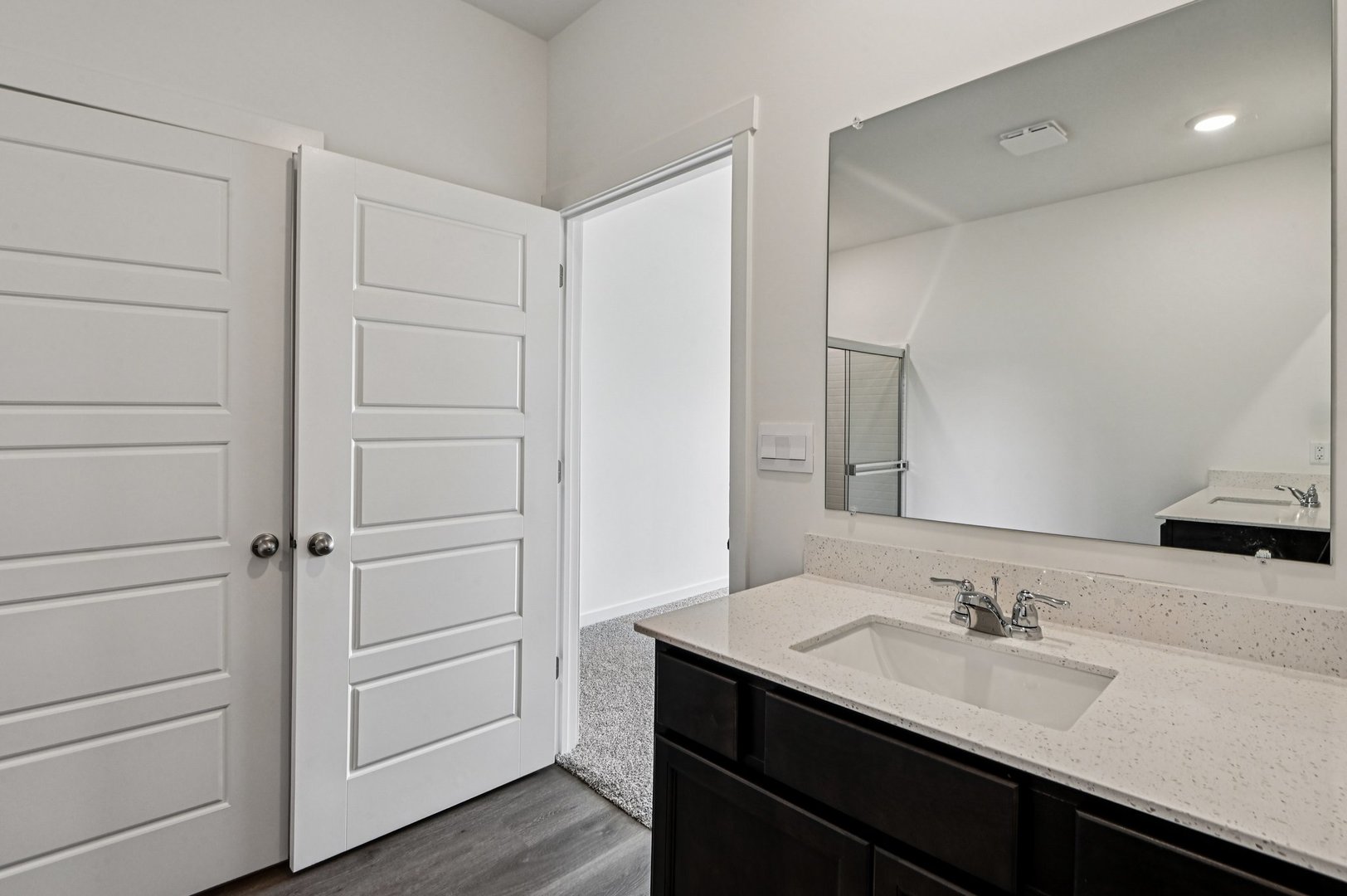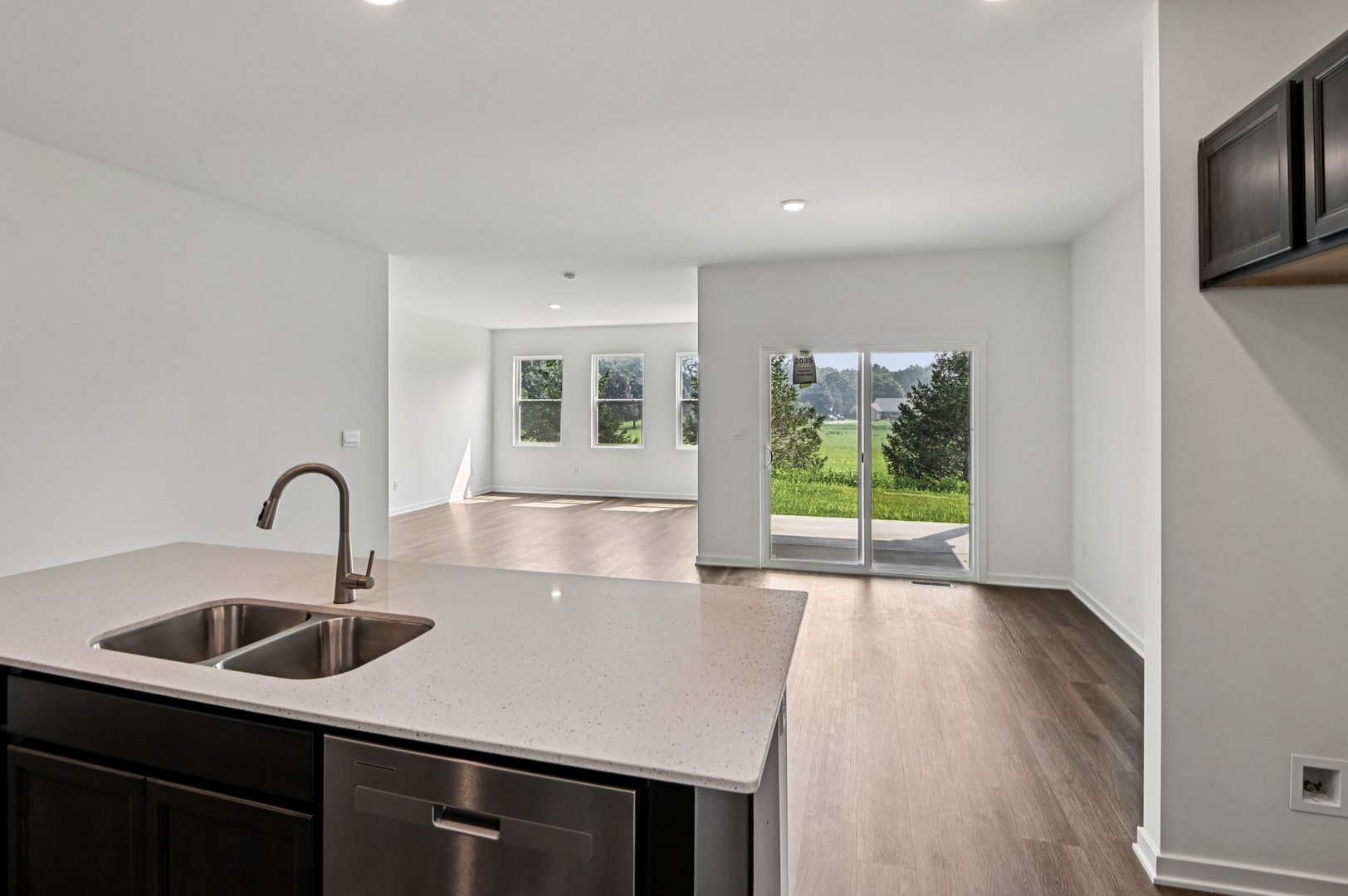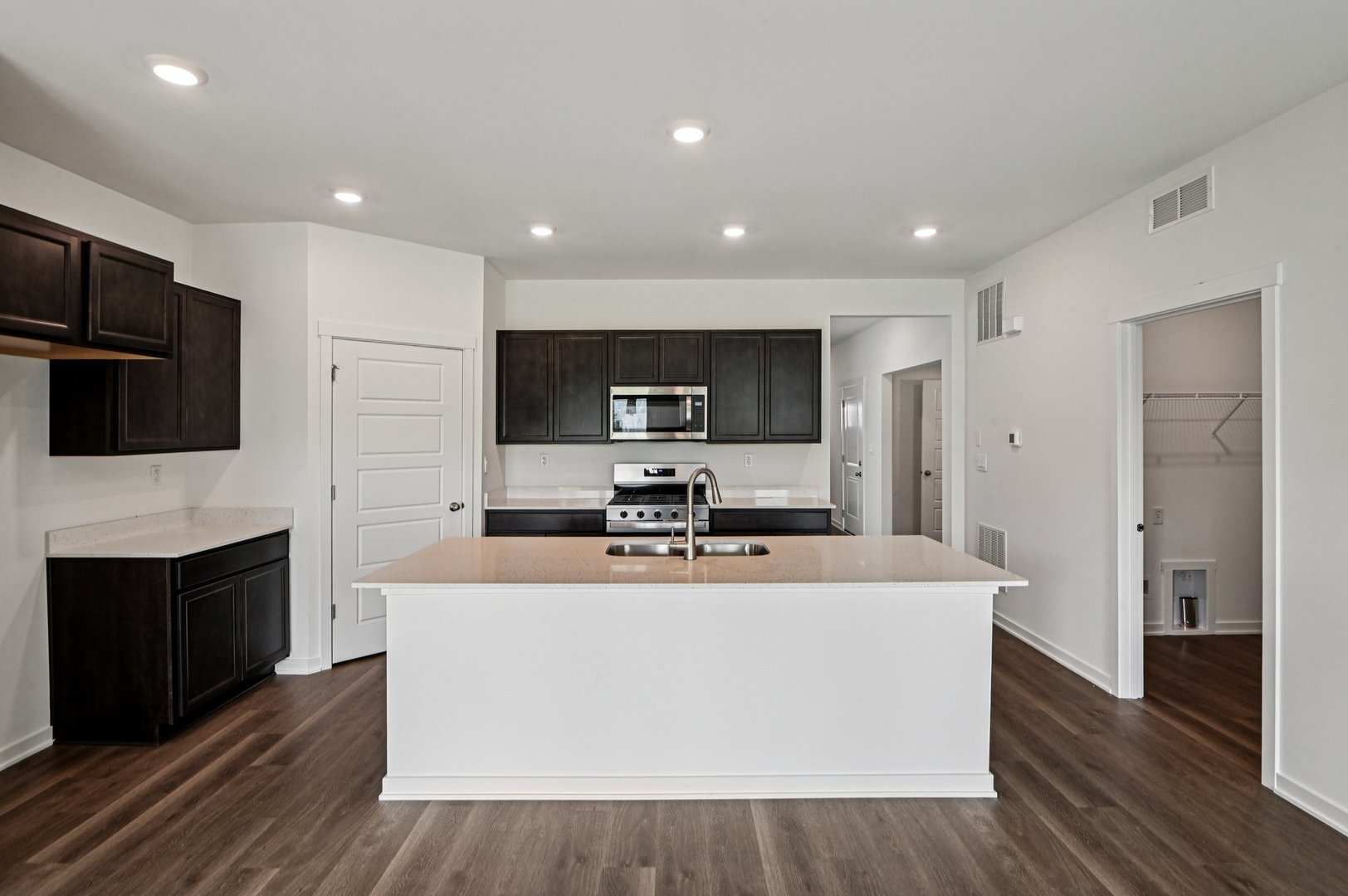 Discover expansive ranch living at 829 Mesa Lane in Pingree Grove, Illinois, a beautiful new home in Cambridge Lakes North. This modern one-level home is ready for a quick move-in. Homesite includes a fully sodded yard and covered back patio. The Dover plan offers 1,956 square feet of living space with 3 bedrooms plus a Flex room, 2 full bathrooms all with 9-foot ceilings! When you first enter the home, set off to side, you’ll find a secondary bedroom and full hall bath tucked away for privacy. Next, you’ll come upon the open flex room, excellent for an office, game room, formal dining room, guest area or a hobby room. Across the hall, you will find the 3rd bedroom tucked away. Continuing through the home, the open concept kitchen flows to the dining and family room areas. The kitchen layout includes a large island with an overhang for stools, quartz counter tops with a stainless steel undermount sink, stainless steel appliances, corner pantry and cabinetry. Enjoy your private get away of your spacious primary bedroom in the back of the home complete with en suite bathroom featuring two separate, raised height sinks, quartz top vanities and walk in seated shower, tile surround and shower doors. Additionally, the main floor includes easy-to-maintain Luxury vinyl plan flooring. Our Chicago home includes our America’s Smart Home Technology. Exterior photo of actual home. Interior photos of similar home, actual home as built may vary.
