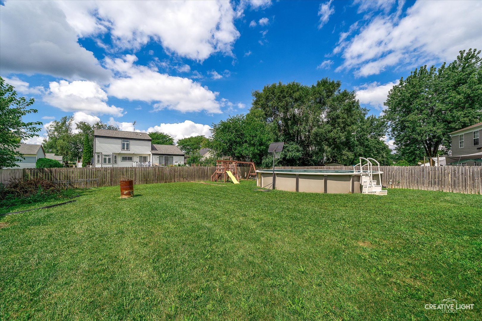 Hurry! Great opportunity! Situated on a nice deep level fenced lot! The large above ground pool is perfect for summertime fun! Cozy family room with triple patio doors and direct access to the backyard! Very functional eat-in kitchen with oak cabinetry, tile backsplash and separate eating area with sliding glass door to the backyard! All appliances stay! Separate formal living room flows into the separate formal dining room with bay area great for entertaining! Spacious master bedroom with large walk-in closet and direct access to the full bath with oversized vanity! Gracious size secondary bedrooms! Full finished basement with rec room, den/exercise room and separate storage/laundry area! So much potential to make this home yours! Great location with quick access to shopping, train and I-90 interchange! Bring offer!