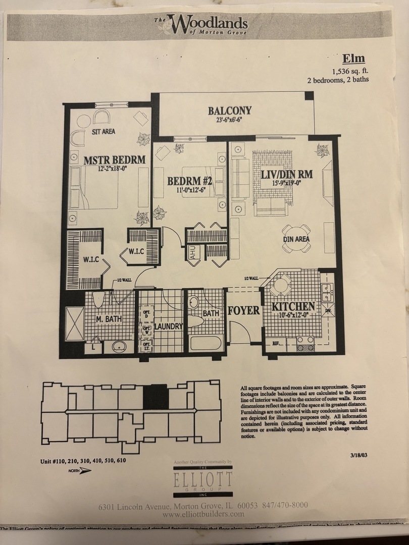Well managed building at The Woodlands of Morton Grove. 1st time on the market since original owner purchased. Top floor, bright unit has west exposure towards new Metra townhomes. This Elm model unit is 1536sf and features 2 bedrooms/2 baths with large balcony off living room & combo dining area. Recessed lighting in living room with newer carpeting throughout(2023). Kitchen provides room for dining table & chairs & boasts granite counter tops with stainless steel & black appliances & under cabinet lighting. Refrigerator (2023). Primary bedroom is complimented with 2 separate walk in closets, primary bath complete with linen closet & shower with seat & grab bars. You will appreciate the In unit laundry with extra cabinets, full size washer & dryer and slop sink. Foyer & kitchen has wood laminate flooring & vinyl tile in laundry. One heated indoor garage space #7 with spacious storage unit. And for those particular about their cars, there is a car wash stall in the garage! 2 elevators in the building. Party room & exercise room too! Assessments include radiant heat, water & gas.