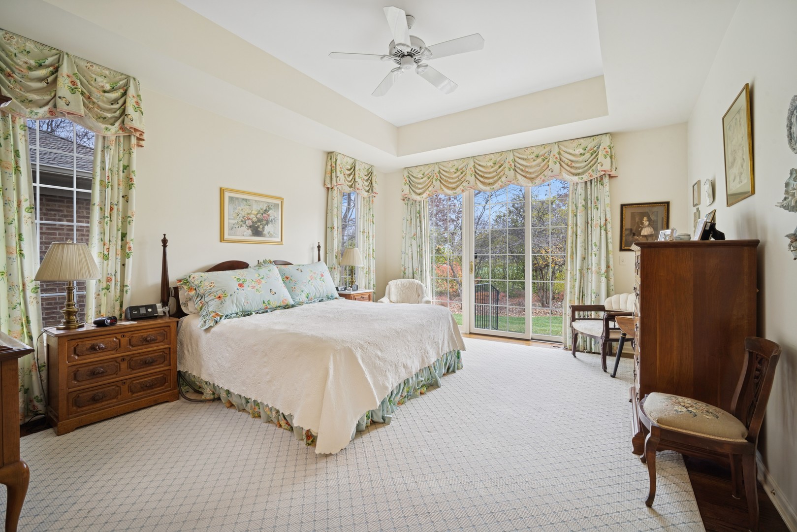 ROYAL RIDGE. Premium location in THE North Shore’s premier 24 hour maintenance free 24 hour guard gated community. Fifty gorgeous acres in East Northbrook. This beautifully appointment Carlyle model offer a first floor primary suite with two walk in closets. All white primary bath with separate shower and whirlpool bathtub. Lovely sliding door to private brick patio overlooking the Sunset Ridge Country Club Golf Course. Dramatic and inviting Great Room/Dining Room with hardwood flooring, full height windows, inviting fireplace. Spacious kitchen with stainless steel appliances and granite counter tops. Very large first floor laundry/utility room with sink. Two bright and sunny second floor bedrooms and bath. Finished lower level, two car attached garage. New roof. Monthly Assessment $1199 includes 24 hour guard gate, snow removal and lawn care, on site manager, on site handyman, clubhouse, exercise facility and outdoor swimming pool. Gathering Room and full catering kitchen. Northfield Lower Schools and New Trier High School. Ask about 150 year land lease. June possession preferred.