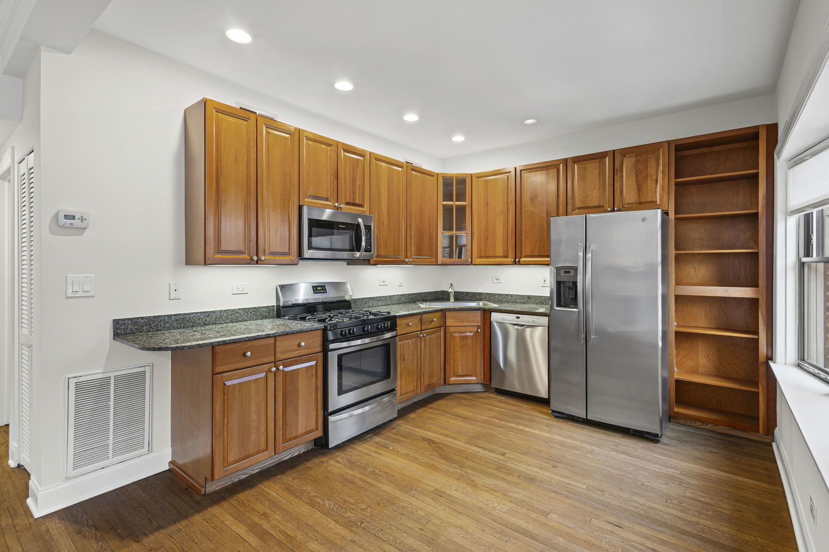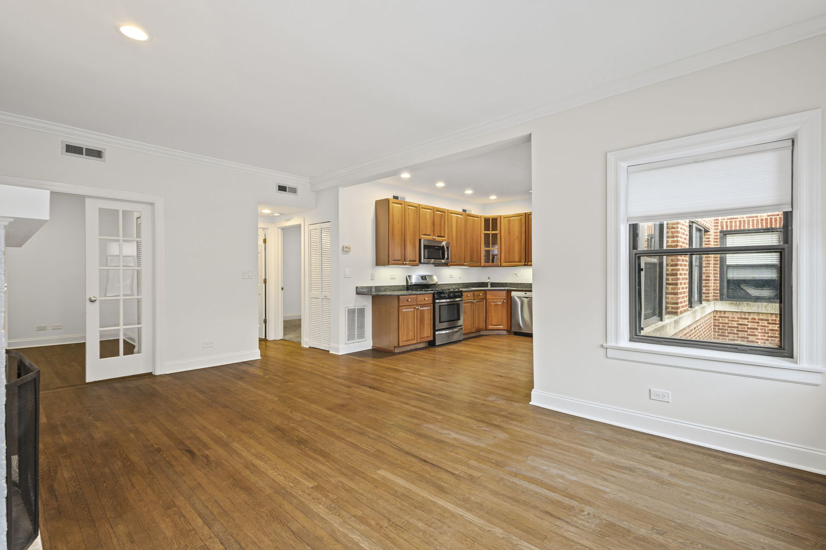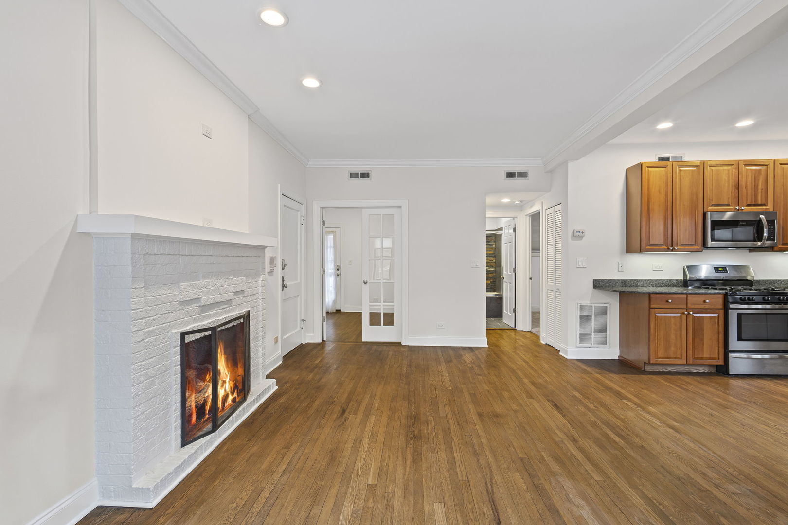This inviting condo blends timeless character with today’s must-have conveniences. The open-concept layout is enhanced by hardwood floors and a wall of windows that provide the living, dining, and kitchen spaces with incredible natural light. The kitchen features granite countertops, stainless steel appliances, and 42-inch cabinetry, while the home also offers an in-unit washer and dryer, a gas fireplace, and generous closet space throughout. The second bedroom, accented by French doors, is perfectly suited for a home office or welcoming guest space. Enjoy outdoor living with a rear deck, plus the added benefits of dedicated storage and two exterior parking spaces (tandem). Ideally situated just minutes from Wrigley Field, top-rated dining, public transportation, shopping, entertainment, and everything Southport Corridor has to offer!