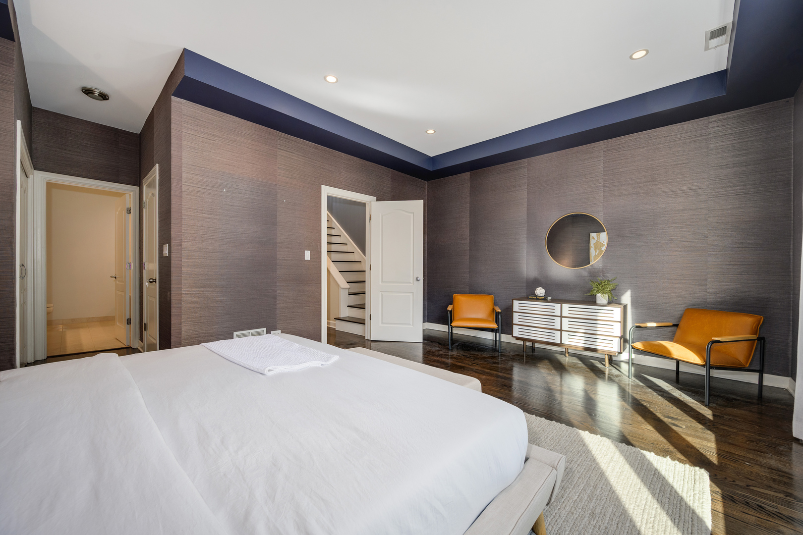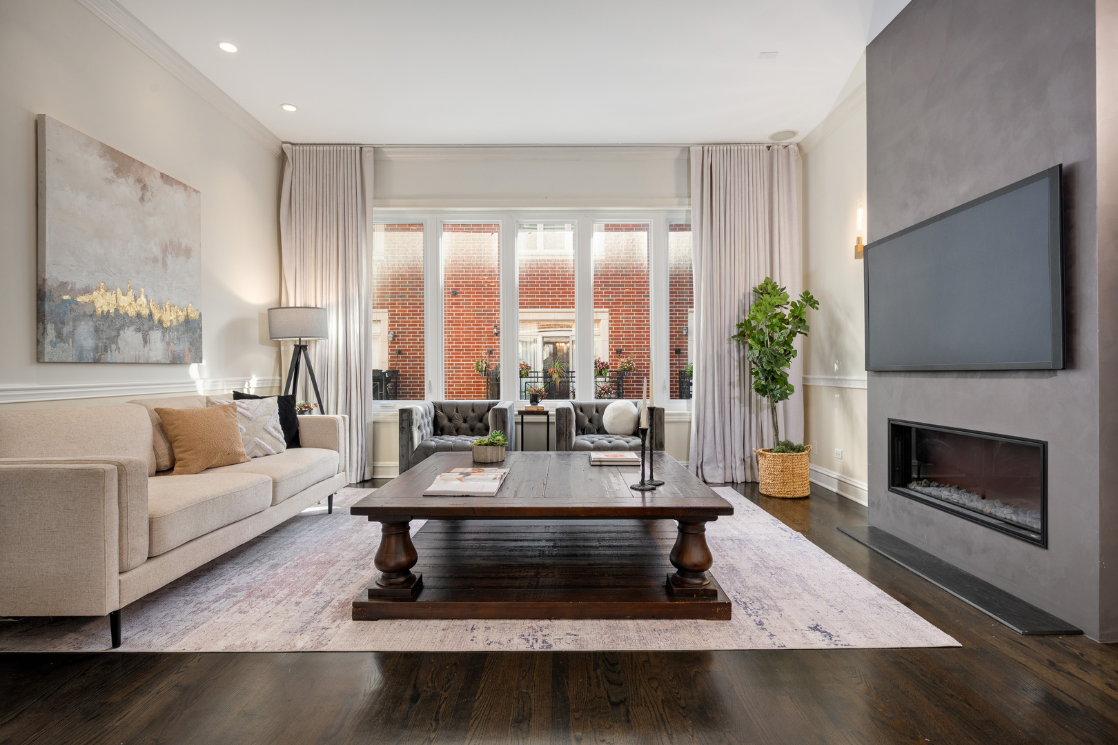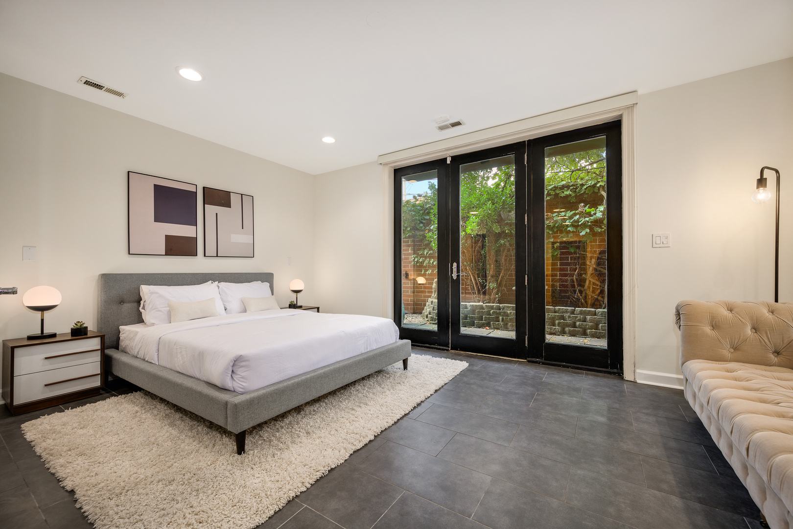 In the heart of the city’s sought-after River West neighborhood, this elegant 4 bedroom, 3.5 bath townhome in a gated boutique community lives like a spacious single family with 3,000+ square feet of exquisitely-updated space. On the main level, expansive living and dining areas feature 10-foot ceilings, newly refinished walnut-stained hardwood floors, a dramatic new fireplace and oversized windows with lots of natural light. The chef’s kitchen has abundant storage with 42-inch cabinets, new stainless appliances and new quartz countertops including a large waterfall-edge island with plenty of extra space to work and comfortable seating for three. The luxurious primary bedroom is enhanced by customized wall coverings, a stylish tray ceiling, and a tasteful en suite bath with dual vanity, soaking tub and roomy dual-head walk-in shower. The additional top floor living area includes a wood-burning, stacked-stone fireplace and opens to the private rooftop deck where you’ll enjoy ample room for al fresco relaxing and entertaining. The ground floor has new tiling and features a new walk-in wine cellar, a full bathroom and an outdoor space. Other recent updates throughout this meticulously-maintained home include fresh carpeting upstairs, a resurfaced roof and new windows throughout installed in 2019. The home has dual-zoned cooling and heating and a 2 car attached garage. This is a unique opportunity to have extra space in such a central accessible location – ideally situated between all that River North, Wicker Park and the West Loop have to offer. This is fee simple so short term rental could be possible.