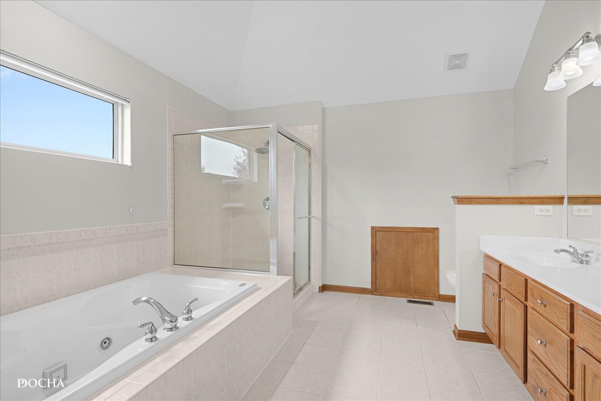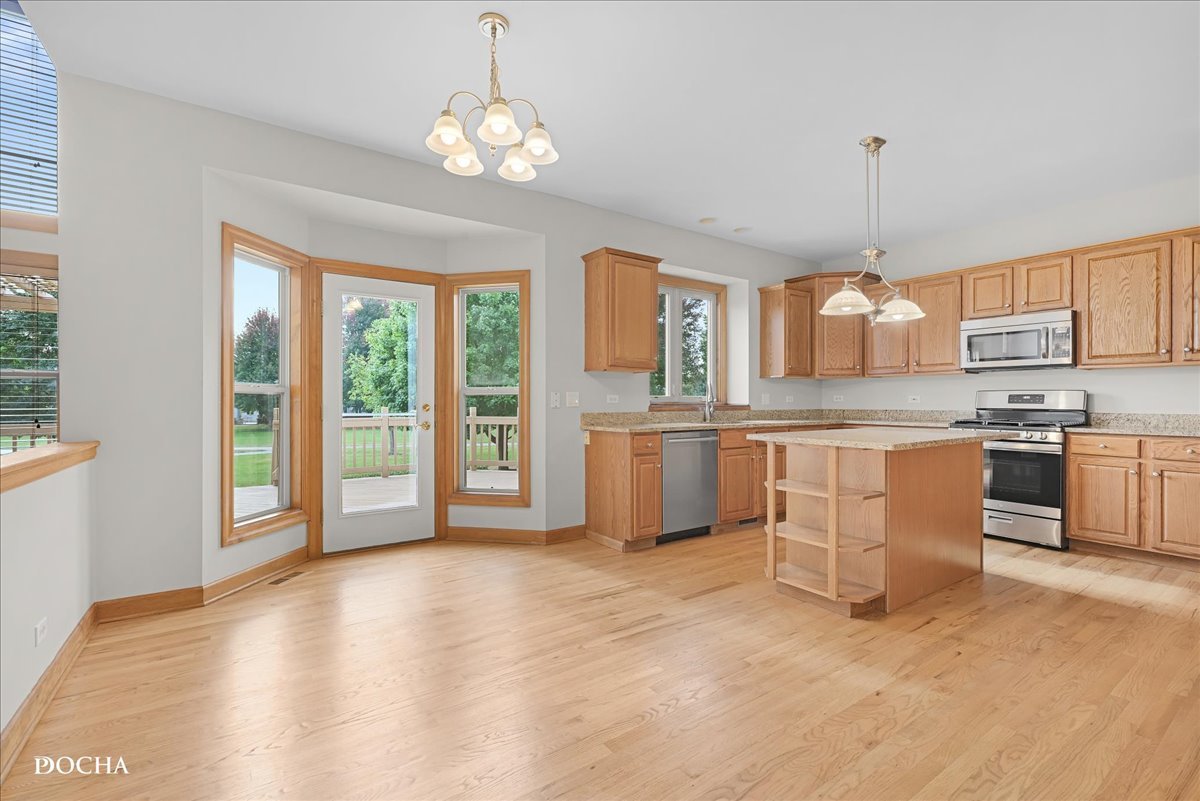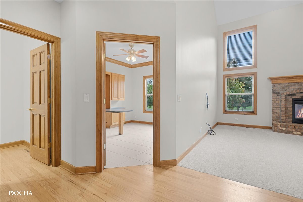 Move-in ready and better than new, this stunning Heartland home has been refreshed from top to bottom! Nearly every detail has been updated-fresh paint throughout, plush new carpet, refinished hardwood floors, a brand-new A/C, plus a new refrigerator and stove. With almost 3,000 square feet of living space, plus a beautifully finished basement, this home has room for everyone. The inviting island kitchen features granite countertops and flows into the vaulted family room with a cozy fireplace-perfect for gatherings. You’ll also find formal living and dining rooms, a convenient main-floor office/flex space, and a guest powder room. Upstairs, the primary suite is a retreat of its own with soaring ceilings, a spa-like bath with a Jacuzzi tub and walk-in shower, and an oversized walk-in closet. Three additional bedrooms share the level. The finished basement adds even more living space with a full bath and a wet bar, ideal for entertaining or relaxing. Step outside to enjoy the professionally landscaped backyard, complete with a deck, pergola, and peaceful views of open space and walking paths. A 3-car garage provides all the storage you need. Located in the highly desirable Heartland subdivision, you’ll love the community pool, bike paths, and parks just steps from your door. This home truly has it all-don’t miss your chance to make it yours!