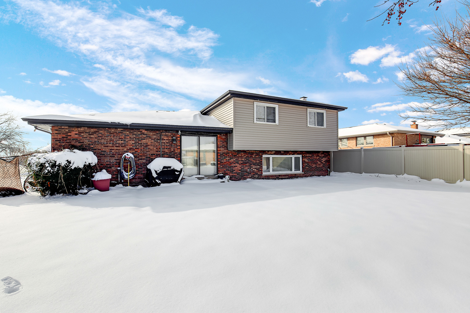beautiful split level 4 bedrooms, 2 full baths, large bright living room, huge eat-in kitchen, massive family room, good size laundry room & possible second kitchen, attached garage, fenced yard, concert patio, professional landscaping. Many major updates New Roof, Heating & A/C 2 years, appliances 3 years, windows 5 years old, sump pump 1 year, Huge master bedroom with shared bath, first floor bedroom or it could be used as formal dinning. Hardwood floors throughout except the kitchen and family room. Fireplace in a large family room, Newer updated two full bathrooms, Maple cabinets, granite counters & back splash. SS appliances, pantry, Desirable Tinley Park, great school district. Priced to sell