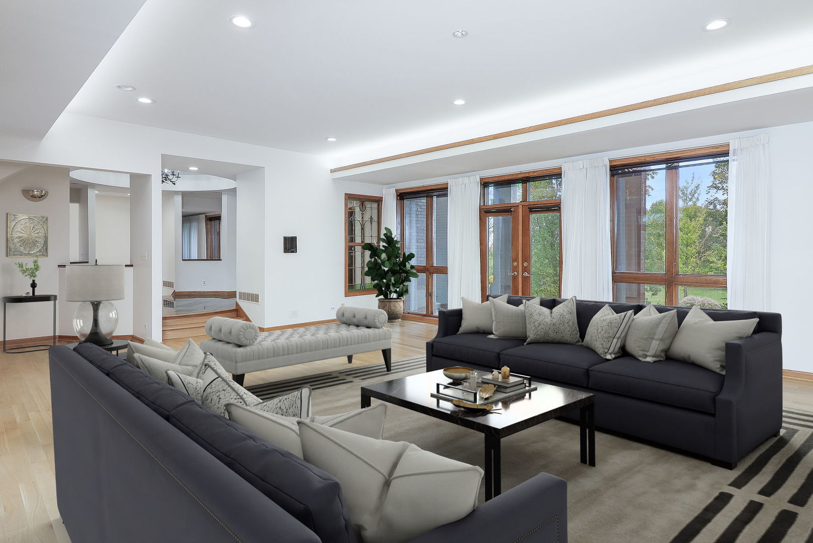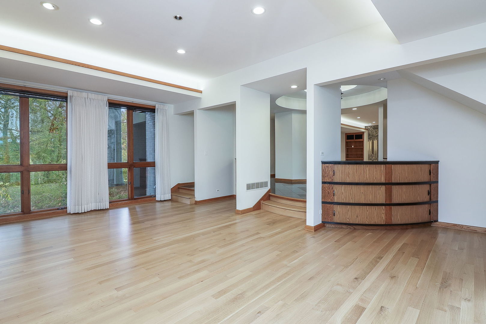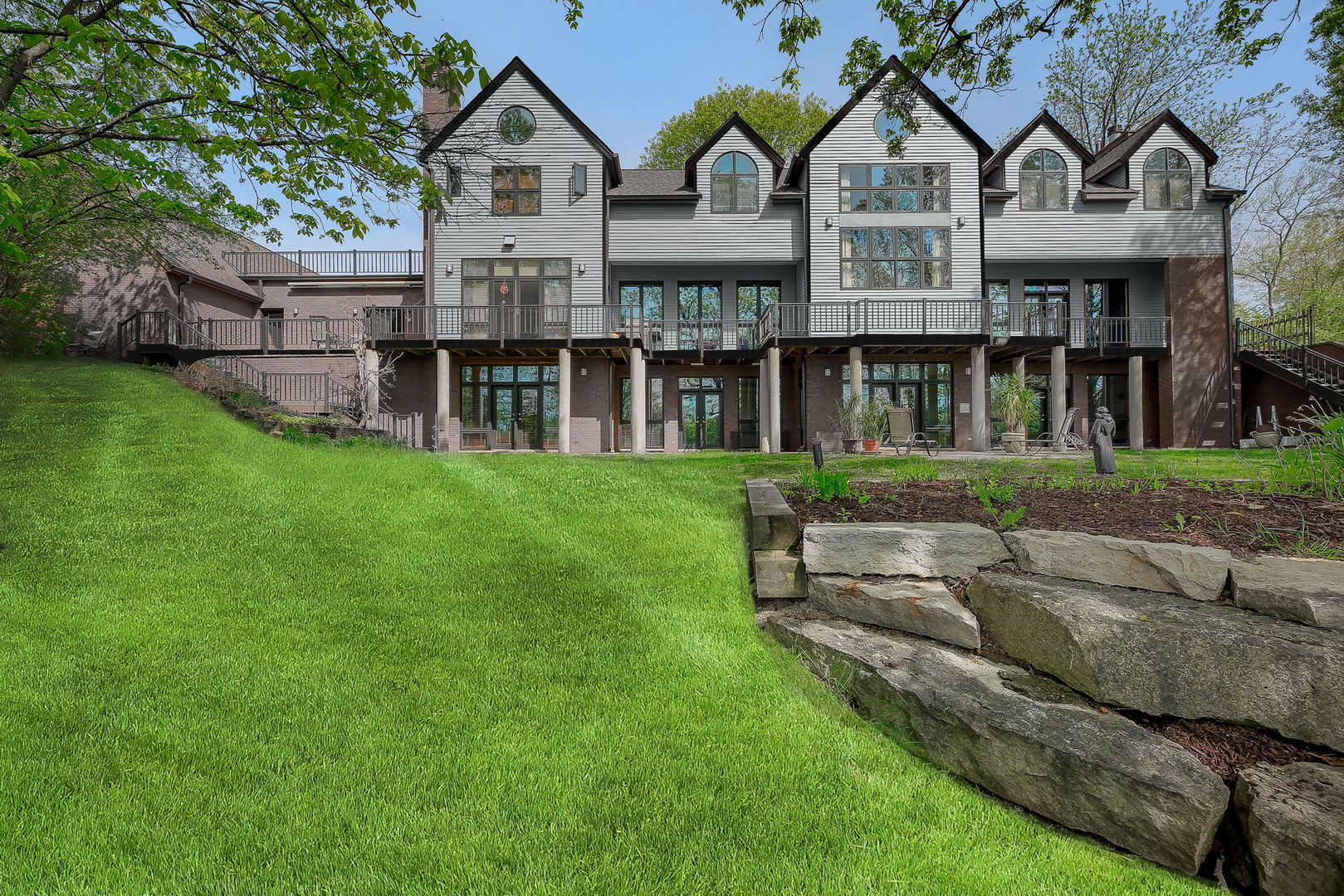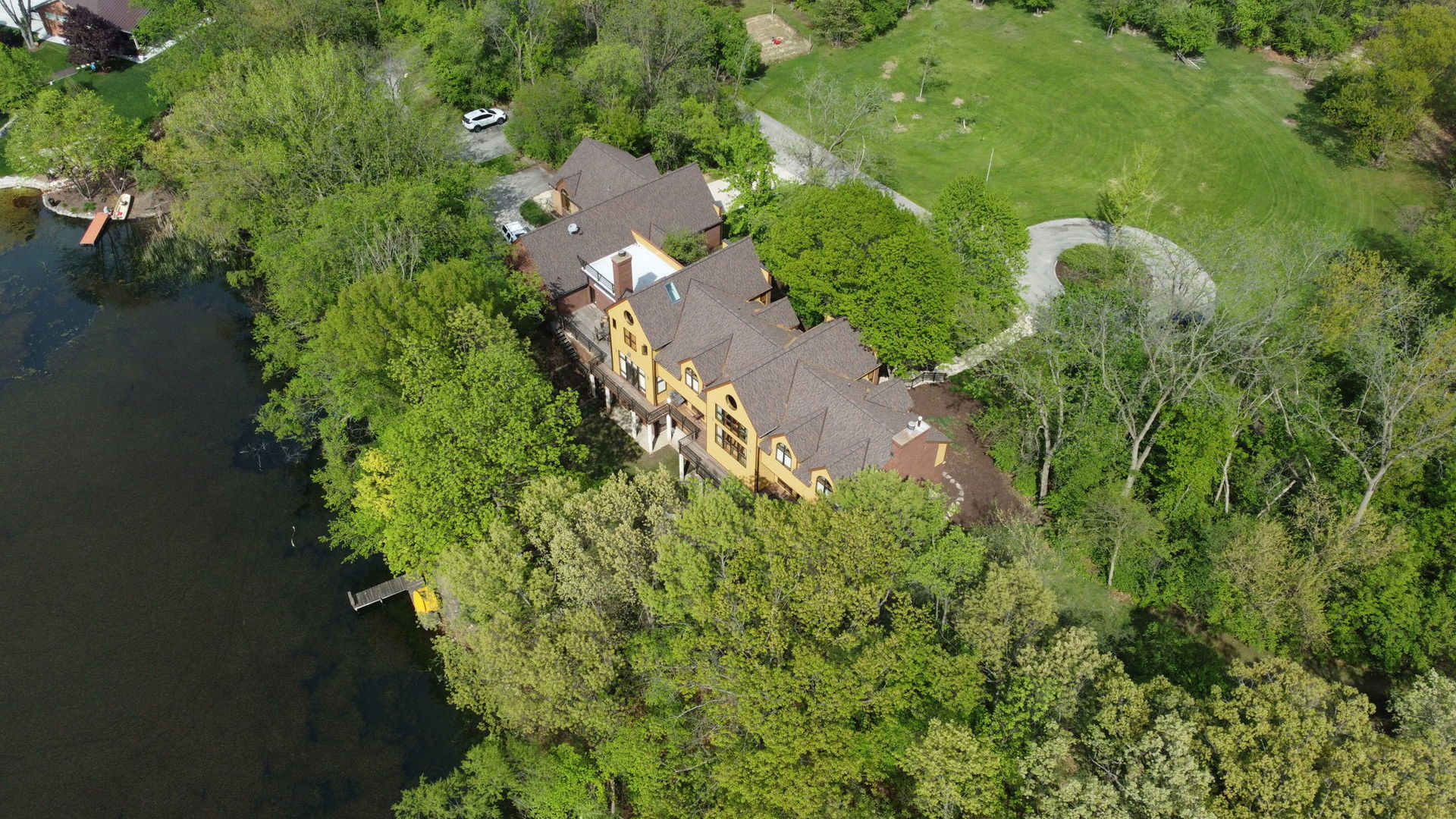 If the ordinary won’t do, this home is the one for you. Imagined by award-winning architect John Allegretti, this one-of-a-kind property was crafted with luxury, flow, aesthetics, privacy, and multi-generational living in mind. Views, light, and airflow are maximized with the home’s construction. The 6-bedroom, 6.1-bath home’s remarkable characteristics include specialized millwork and built-ins, voluminous ceilings, walls of customized windows, a secure, gated entrance, and 5 sprawling acres of peaceful, secluded woodland that’s all yours to enjoy. Envision riding your horses through the trees and kayaking on a private spring-fed lake. The main home features 4 bedrooms, 4 full bathrooms, 1 half bathroom, a chef’s kitchen, newly installed white oak flooring, and 2 attached 2.5-car garages. Conveniently, two of the bedrooms and two full bathrooms are located on the main floor in the attached guest house. The guest quarters, designed for various living scenarios (multi-generational, in-law, au pair arrangements, short- or long-term guests), include 2 bedrooms, 2 bathrooms, a kitchen, an eating area, a foyer, a living room, and 2 separate entrances. The main home and guest quarters are uniquely separated by an office area that can accommodate up to 6 work spaces. Ideal for a home office or a quiet space for homework. And the lower level definitely has the wow factor! You and your friends will spend many hours enjoying the energy-efficient indoor lap pool, exercise room, billiards room and workshop/utility room. Your home will be THE place for fun! This home offers a rare opportunity to have it all – a home nestled in nature… and the ability to be in Downtown Chicago in as quick as 20 minutes. The Metra, shopping, dining, major highways, and forest preserves are right at your fingertips. That is if you ever want to leave your own piece of paradise. Move Confidently.