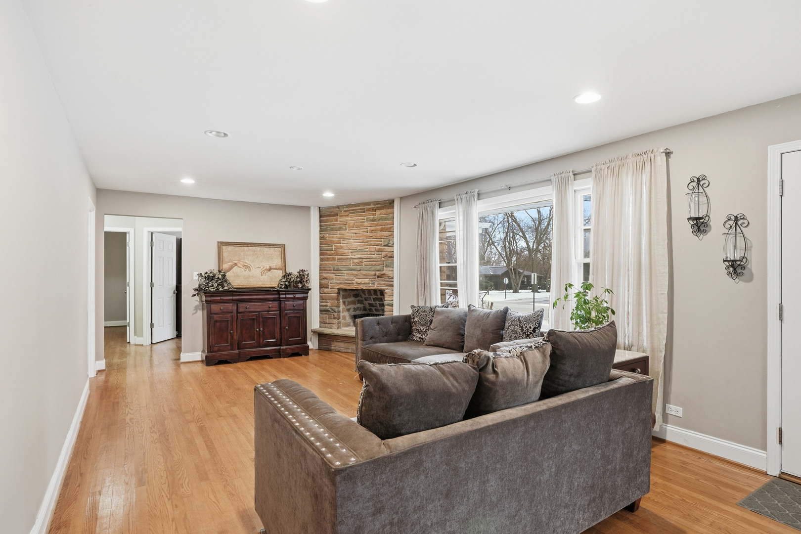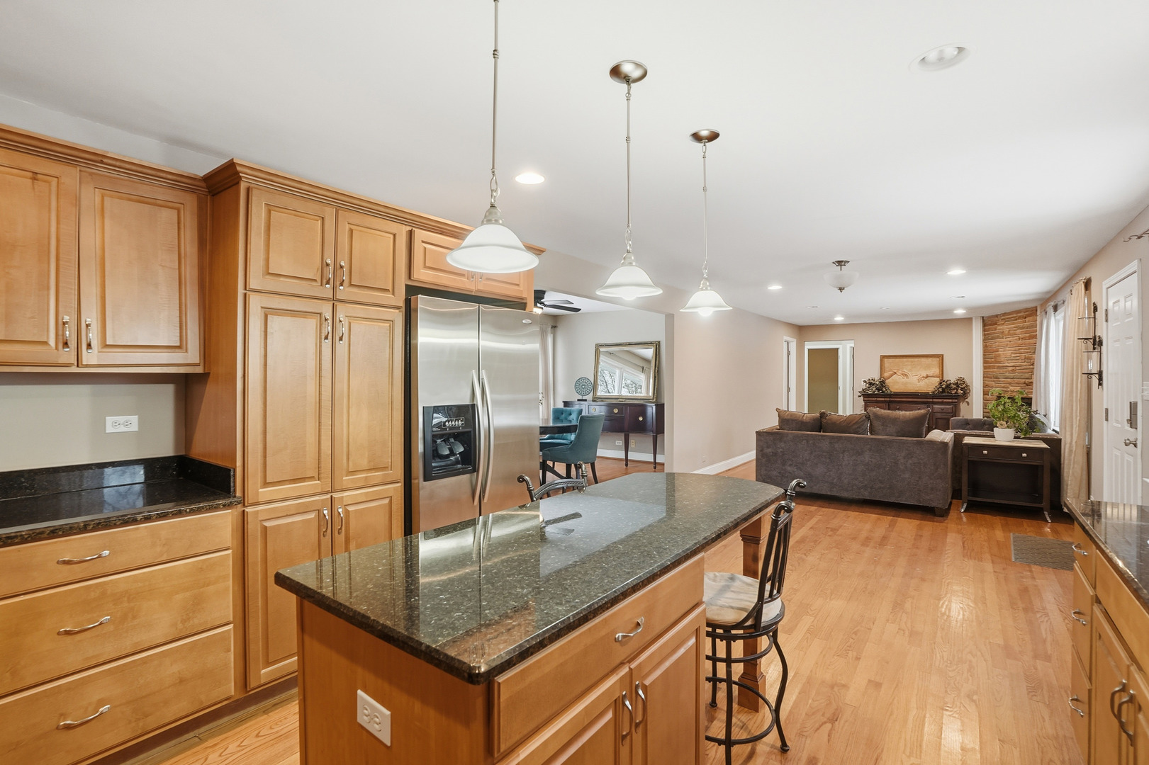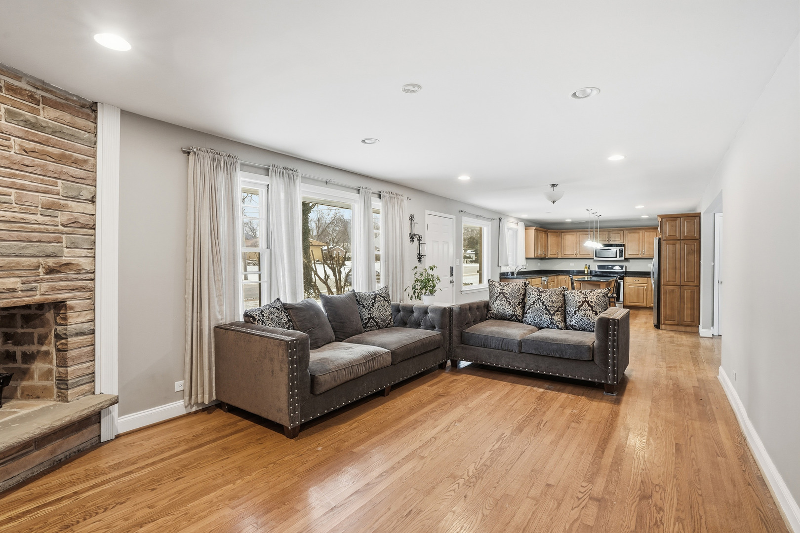 Well-maintained 3-bedroom, 2-bath Hickory Hills ranch offering all one-level living with an attached two-car garage, plus a rare additional two-car garage on a spacious corner lot with a large yard. This inviting home features a bright open-concept living, dining, and kitchen layout, ideal for both everyday living and entertaining. Hardwood floors are in excellent condition throughout the home. The kitchen has been recently updated with higher-grade custom cabinetry featuring soft-close doors and drawers, new countertops, and all stainless-steel appliances, providing exceptional storage and functionality. All bedrooms include walk-in closets. Enjoy outdoor living on the concrete patio, conveniently accessible from both the dining room and the garage, creating seamless indoor-outdoor flow. The huge yard, mature trees, and corner-lot setting enhance privacy and outdoor enjoyment. Major updates include a newer roof (approximately 5 years old) and a preventative water management system. Conveniently located near parks, forest preserves, shopping, dining, and major expressways. Property is being sold AS-IS. A well-maintained, low-maintenance ranch offering flexible ownership opportunities, long-term value, and room for personalization.