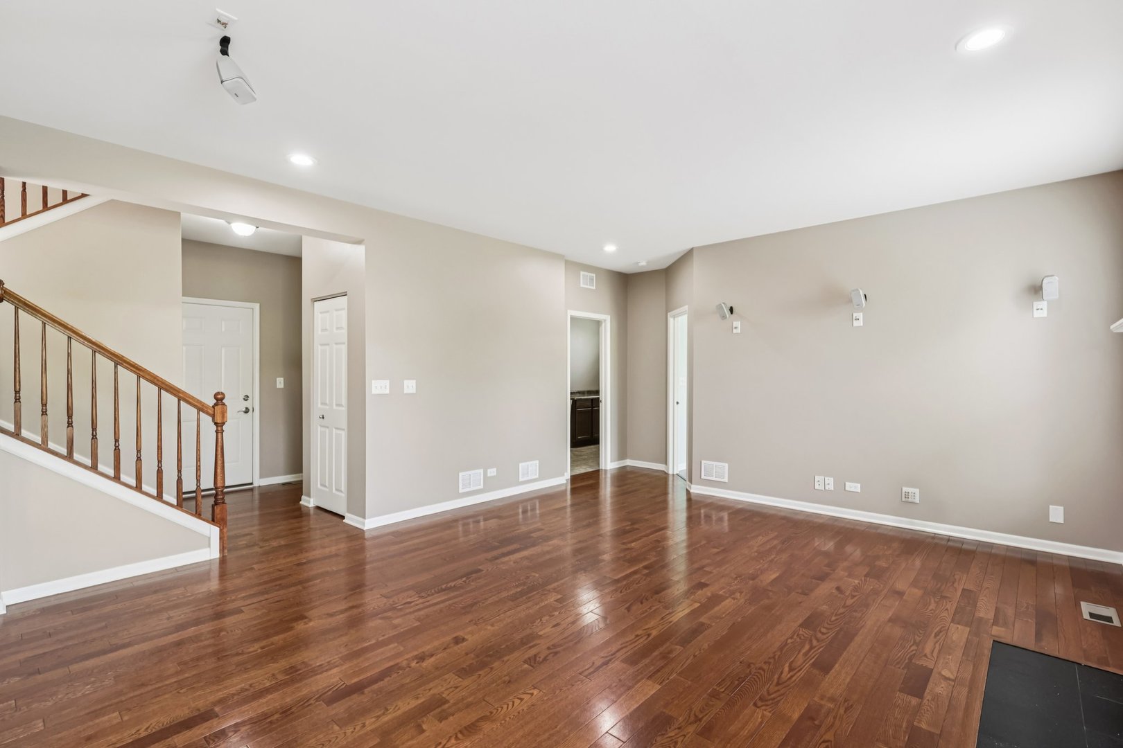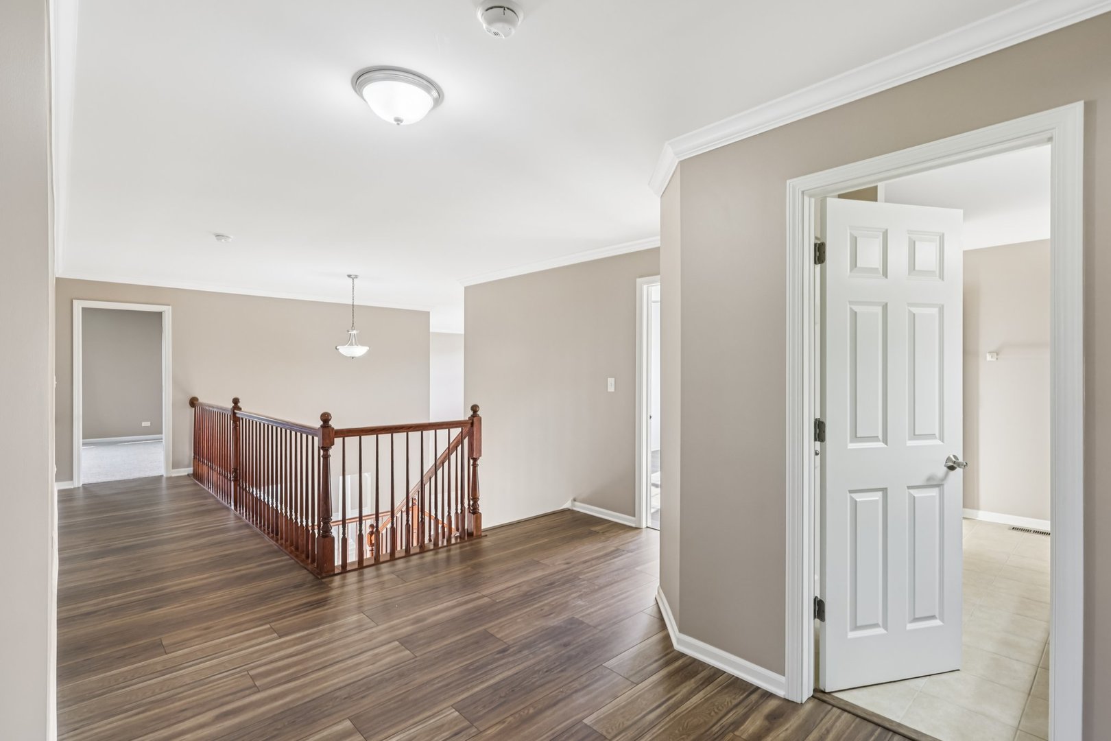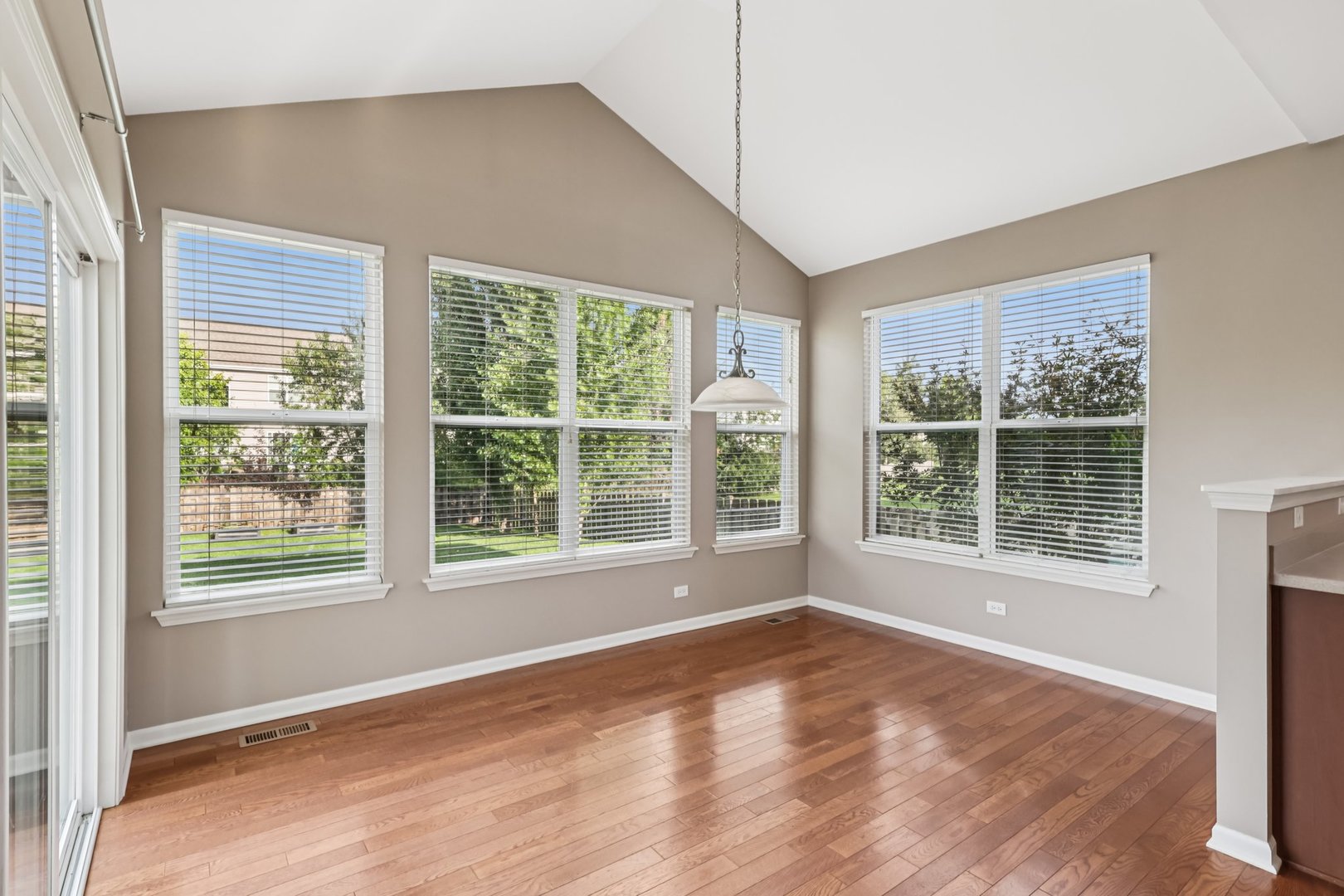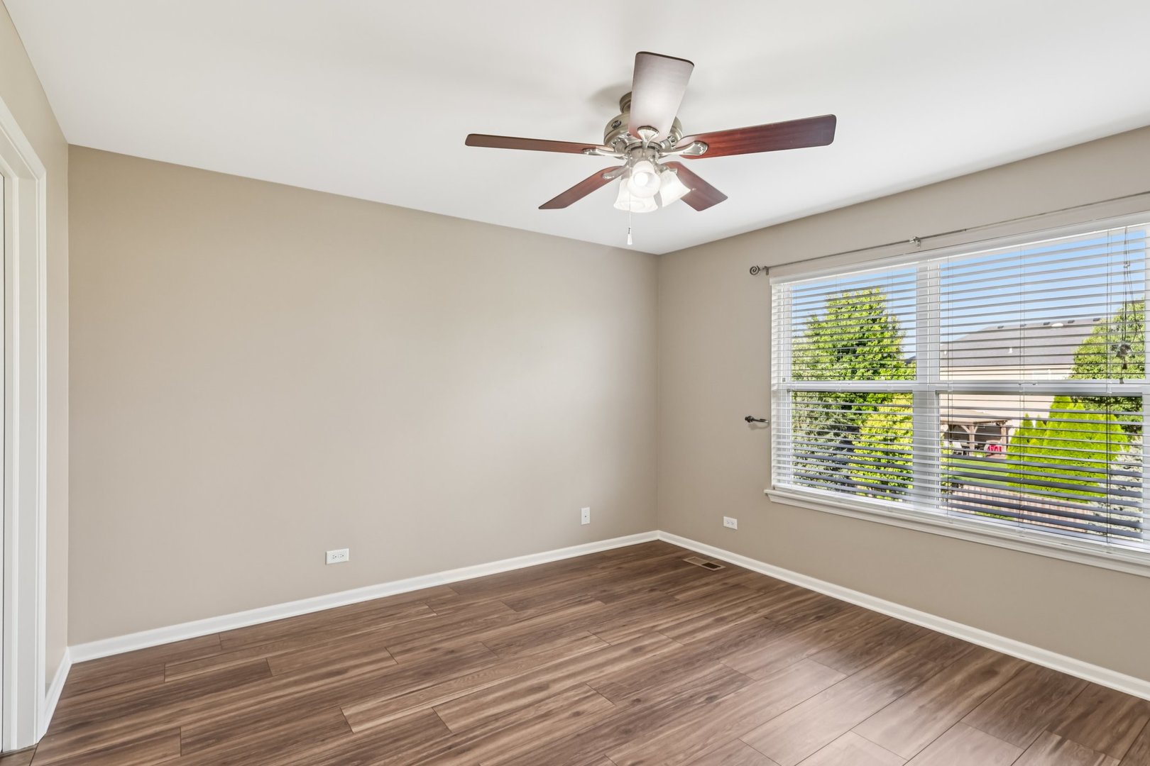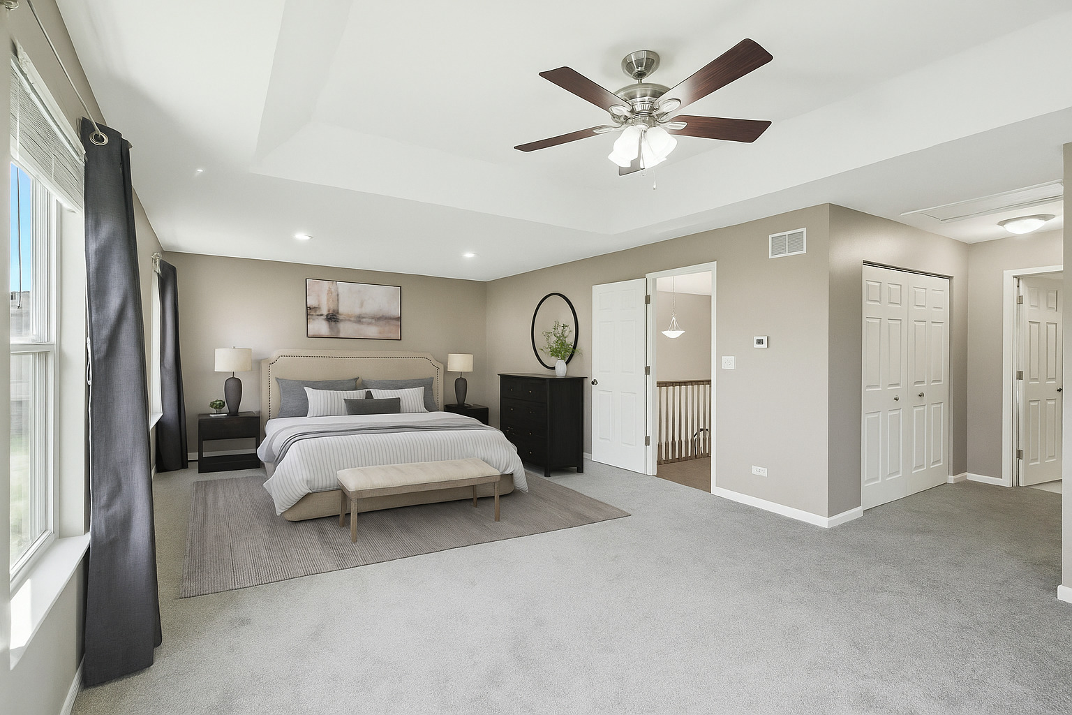 Beautifully upgraded 4-bedroom, 3.5-bathroom east facing Haverford model. The moment you walk through the front door, the two-story vaulted foyer welcomes you with natural light that pours in through soaring windows, creating a bright and inviting atmosphere. The gourmet kitchen is a true showpiece, featuring 42-inch maple cabinets, sleek Corian countertops, and stainless steel appliances. A perfect blend of style and function, the kitchen opens seamlessly to the family room, accented by classic columns and an integrated surround sound system. Arched doorways and custom chair and crown moldings add elegant character throughout the main floor. A versatile first-floor office/den/bedroom offers flexibility for your lifestyle needs. Upstairs, the oversized primary suite is a luxurious retreat with a tray ceiling, dual sinks, a whirlpool tub, and a separate shower. The additional three bedrooms are spacious and comfortable-two share a convenient Jack-and-Jill bath, while the other enjoys its own private bathroom. Brand-new carpet on the stairs and in the primary suite adds a fresh touch. The FULL unfinished basement with rough-in plumbing offers endless possibilities for expansion, while the expanded laundry room makes daily tasks easier. Outdoors, enjoy a private fenced backyard with a paver patio and built-in firepit, perfect for entertaining or relaxing. The 3-car garage provides plenty of space for vehicles and storage. This home is part of a vibrant community with outstanding amenities, including a pool, clubhouse, tennis and pickleball courts, and beach volleyball. Its prime location is just a short walk to the nearby elementary school, making everyday living convenient and connected. Close to shopping and restaurants.