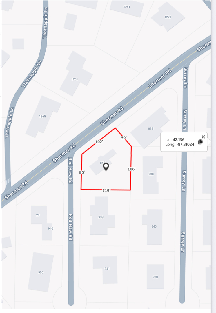 • Directions: Shermer east of Waukegan and west of Lee Rd. on south side of street. Home on corner of Shermer & Red Haw.