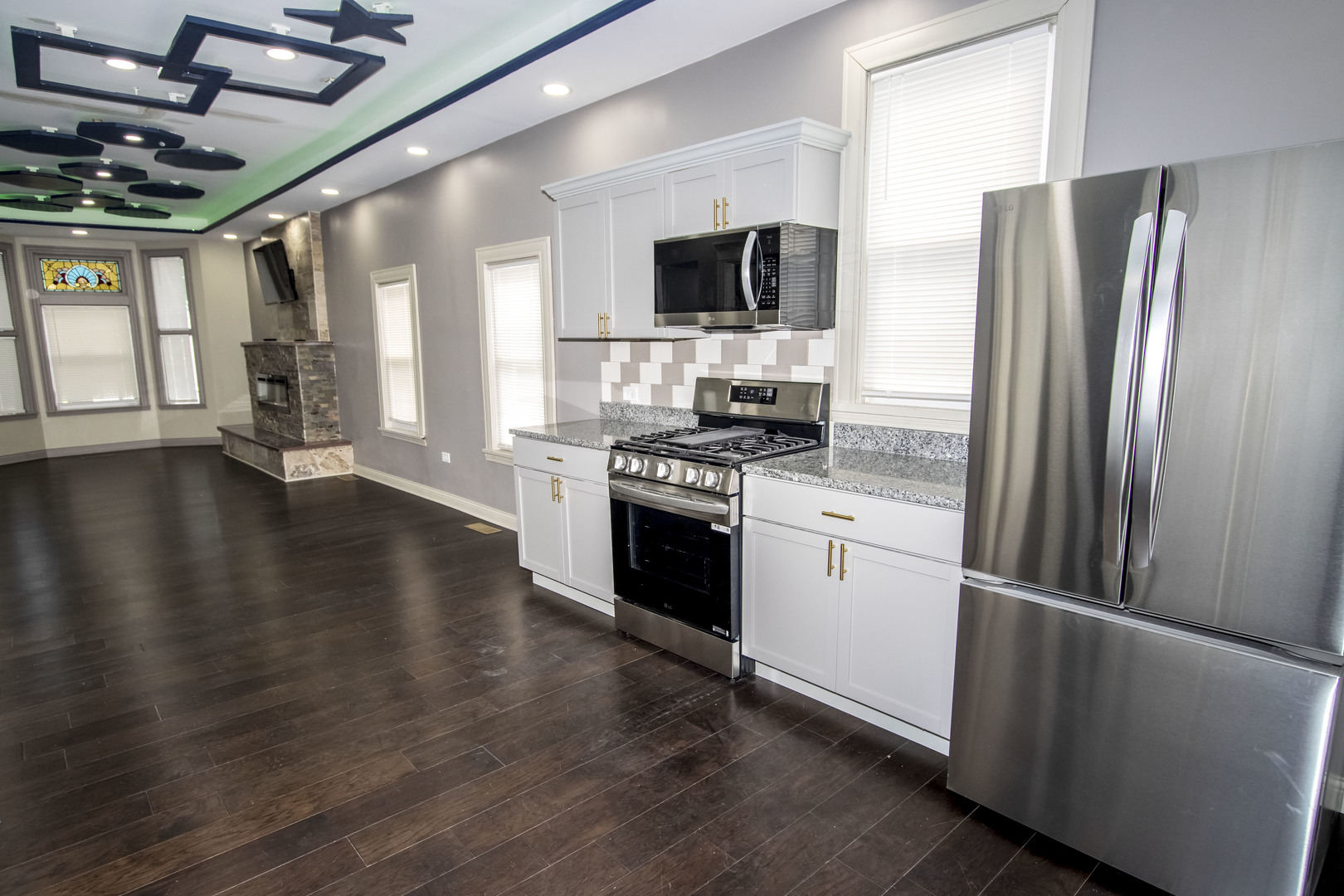Unique opportunity to own this fully rehabbed 5-bedrooms, 2-bathrooms, 2 story home with a full, finished walk-out basement. Completely redone from top to bottom, waiting for a new family. Main level has an open floor plan which is perfect for a family events. Spacious kitchen offers nice cabinets with a granite countertop, a nice backsplash and all SS appliances. 600 sq ft basement is a great addition and can be used as a rec room. Conveniently located near schools, shopping, and public transportations. This property is listed below the appraised value.