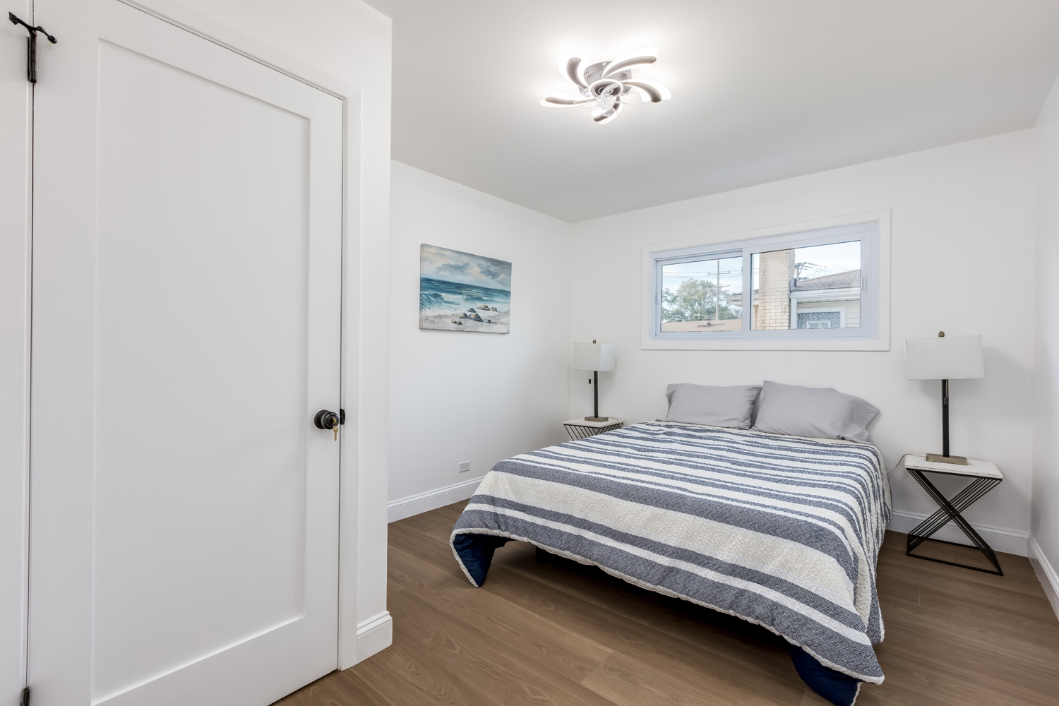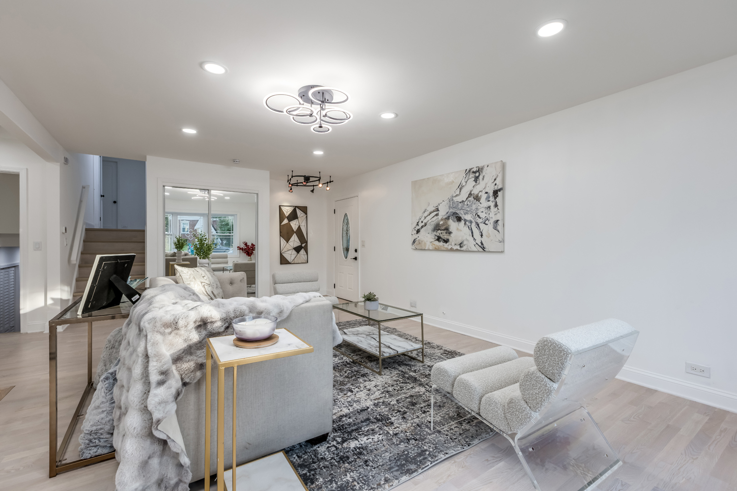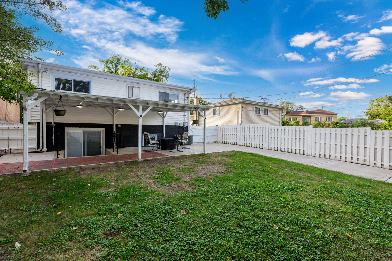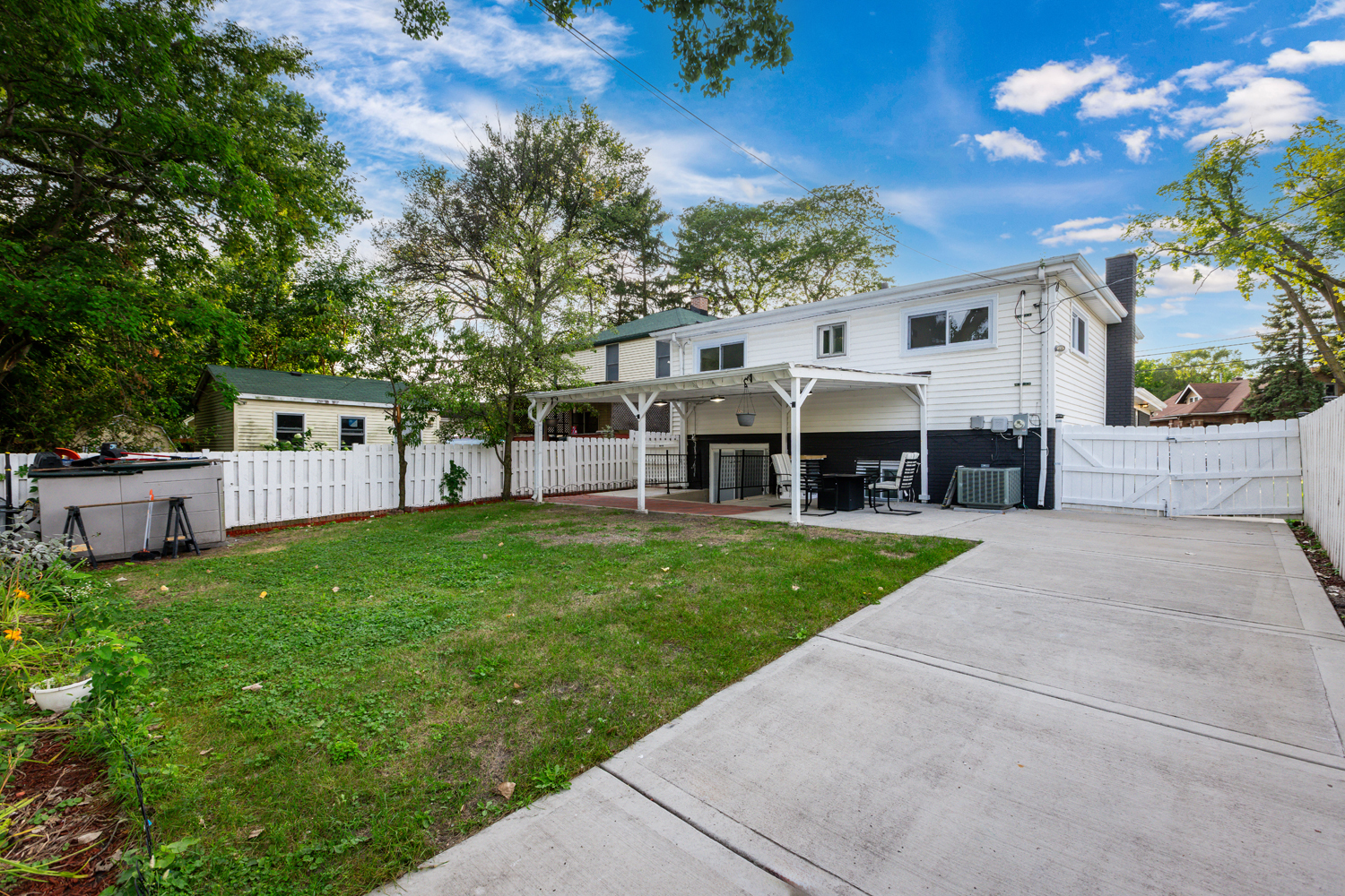 Experience this stunning, fully renovated split-level home featuring 5 spacious bedrooms and 3 luxurious bathrooms. The moment you walk in, you’re welcomed by a sunlit living room with an open floor plan that seamlessly connects to the modern kitchen and dining area. The living and dining spaces boast brand new white oak hardwood floors, creating a warm and inviting atmosphere. The state-of-the-art kitchen is a chef’s dream, showcasing multicolor cabinetry, a massive quartz island with ample seating, upgraded white appliances, and plenty of space for bar stools-perfect for entertaining guests. Upstairs, you’ll find 4 generous bedrooms, including the master suite with an attached bath. The master bathroom features a new vanity, stylish tile work, a modern shower, and an anti-fog mirror. The upper level also includes three additional bedrooms and a completely renovated hallway bath. The lower level offers a cozy family room with a slider door leading to a recently redone covered patio, ideal for outdoor gatherings. Lower level also includes a 5th bedroom and 3rd full bath, featuring new vanities, tile work, and shower. Recent upgrades enhance this home’s appeal: brand new floors throughout, new furnaces, AC units (2000) roof (2022), 100 AMP electrical panel(2021) new doors and windows, and concrete work including driveway and sidewalks (2021). The property is further improved with new light fixtures and copper plumbing. The expansive backyard provides a massive entertaining area, complete with a privacy fence. Driveway long enough to fit 3-4 vehicles. Conveniently located close to schools, shopping, expressways, train station, Parks, library and daily amenities.