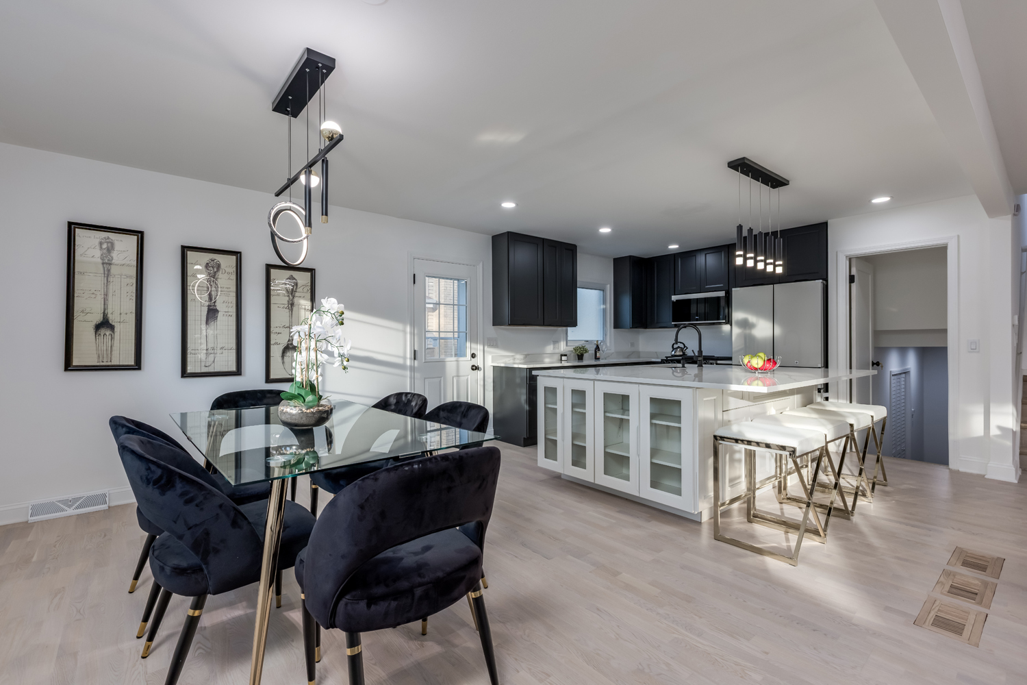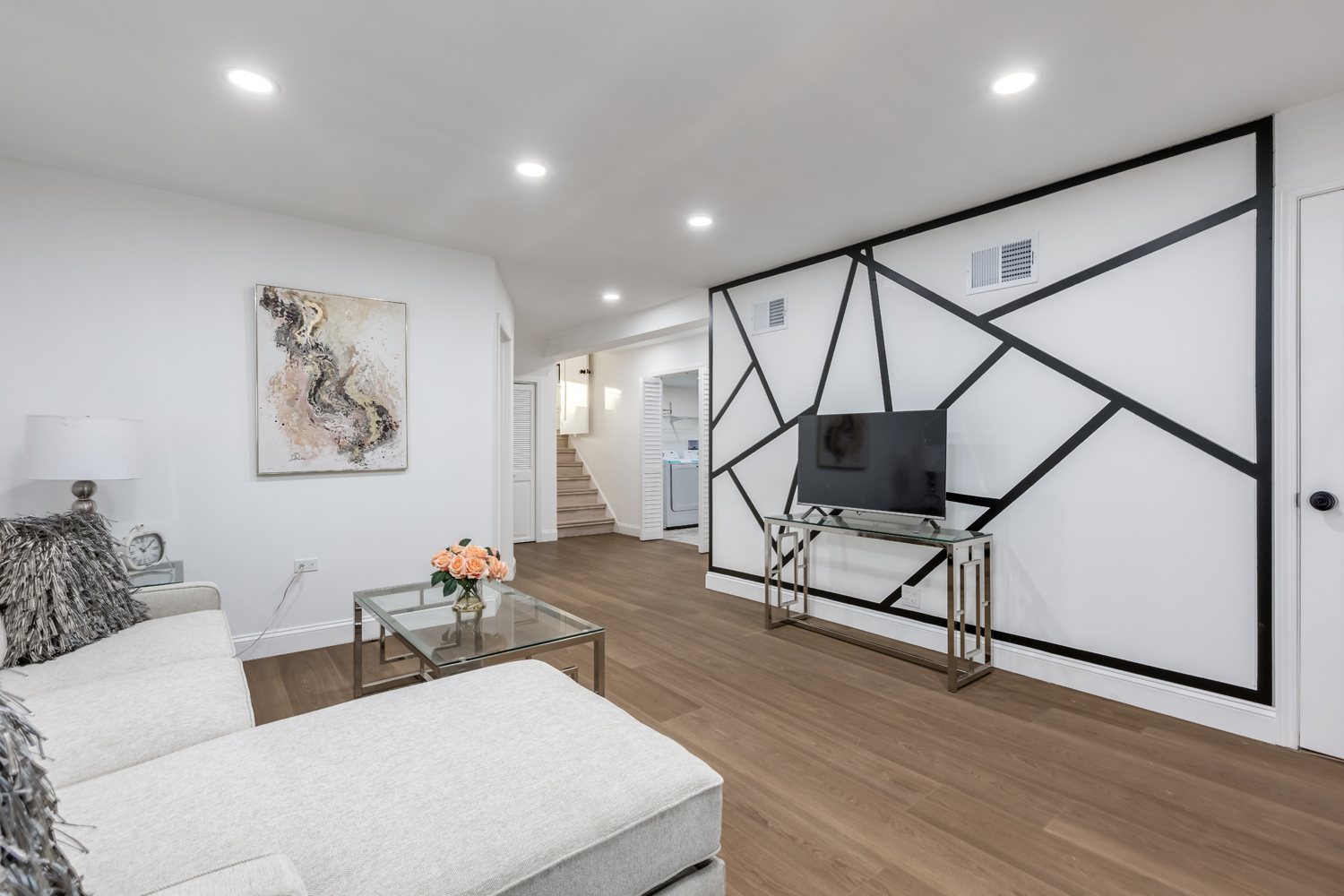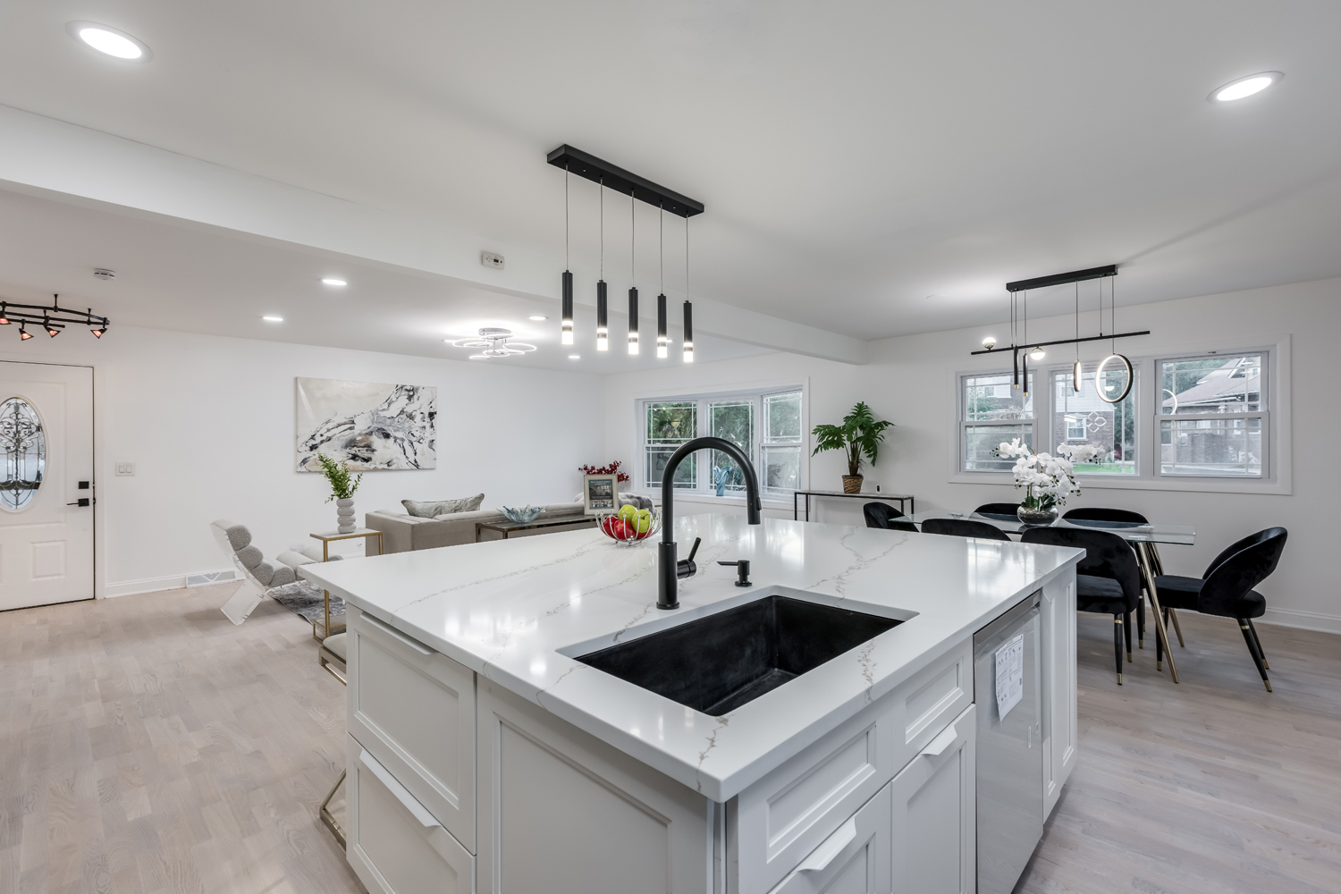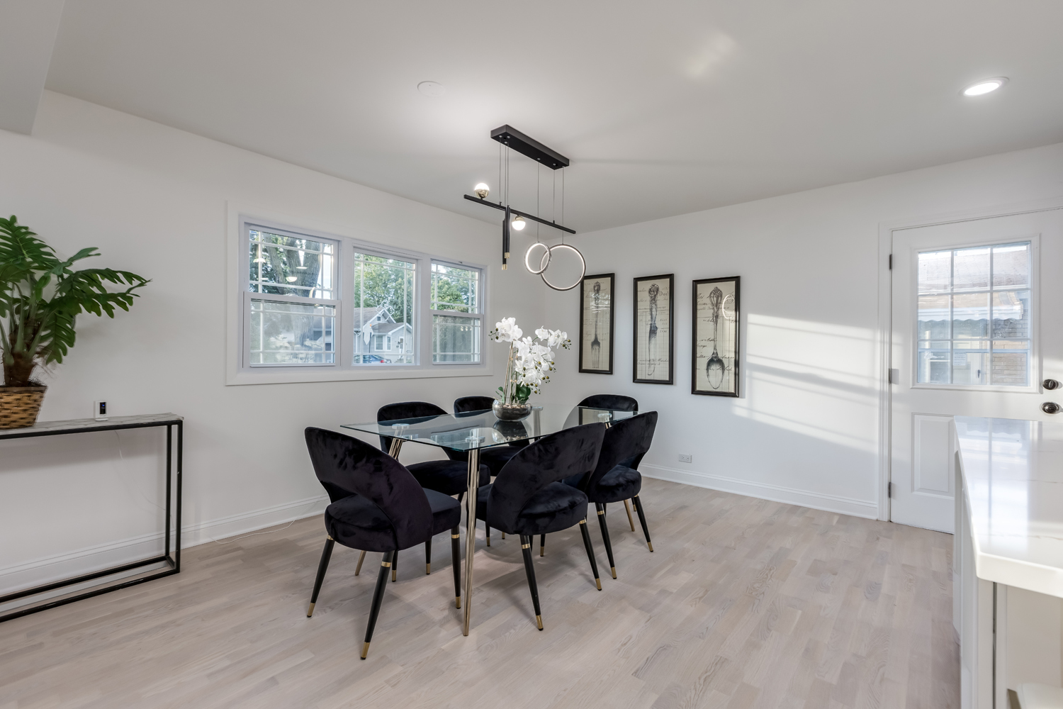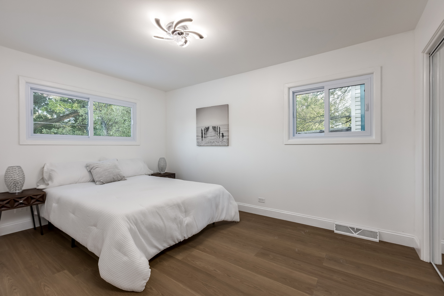 Experience this stunning, fully renovated split-level home featuring 5 spacious bedrooms and 3 luxurious bathrooms. The moment you walk in, you’re welcomed by a sunlit living room with an open floor plan that seamlessly connects to the modern kitchen and dining area. The living and dining spaces boast brand new white oak hardwood floors, creating a warm and inviting atmosphere. The state-of-the-art kitchen is a chef’s dream, showcasing multicolor cabinetry, a massive quartz island with ample seating, upgraded white appliances, and plenty of space for bar stools-perfect for entertaining guests. Upstairs, you’ll find 4 generous bedrooms, including the master suite with an attached bath. The master bathroom features a new vanity, stylish tile work, a modern shower, and an anti-fog mirror. The upper level also includes three additional bedrooms and a completely renovated hallway bath. The lower level offers a cozy family room with a slider door leading to a recently redone covered patio, ideal for outdoor gatherings. Lower level also includes a 5th bedroom and 3rd full bath, featuring new vanities, tile work, and shower. Recent upgrades enhance this home’s appeal: brand new floors throughout, new furnaces, AC units (2000) roof (2022), 100 AMP electrical panel(2021) new doors and windows, and concrete work including driveway and sidewalks (2021). The property is further improved with new light fixtures and copper plumbing. The expansive backyard provides a massive entertaining area, complete with a privacy fence. Driveway long enough to fit 3-4 vehicles. Conveniently located close to schools, shopping, expressways, train station, Parks, library and daily amenities.
