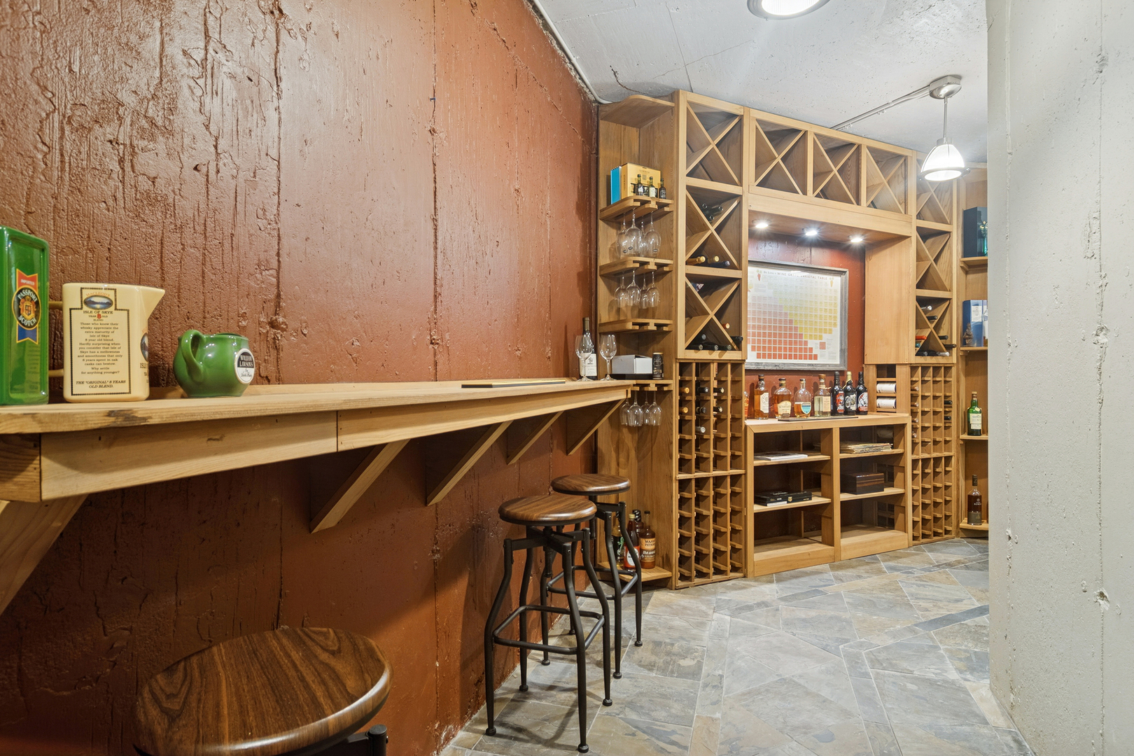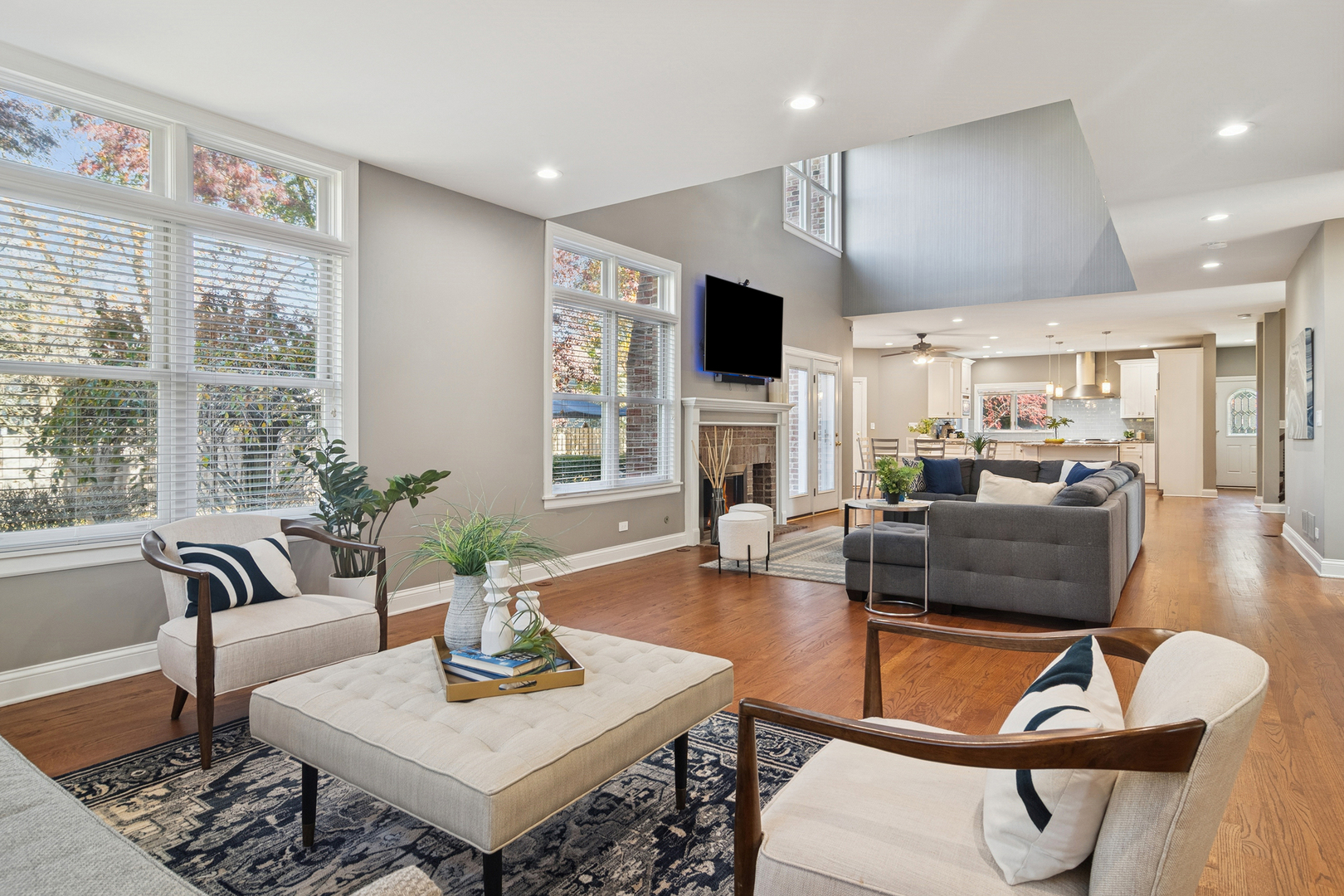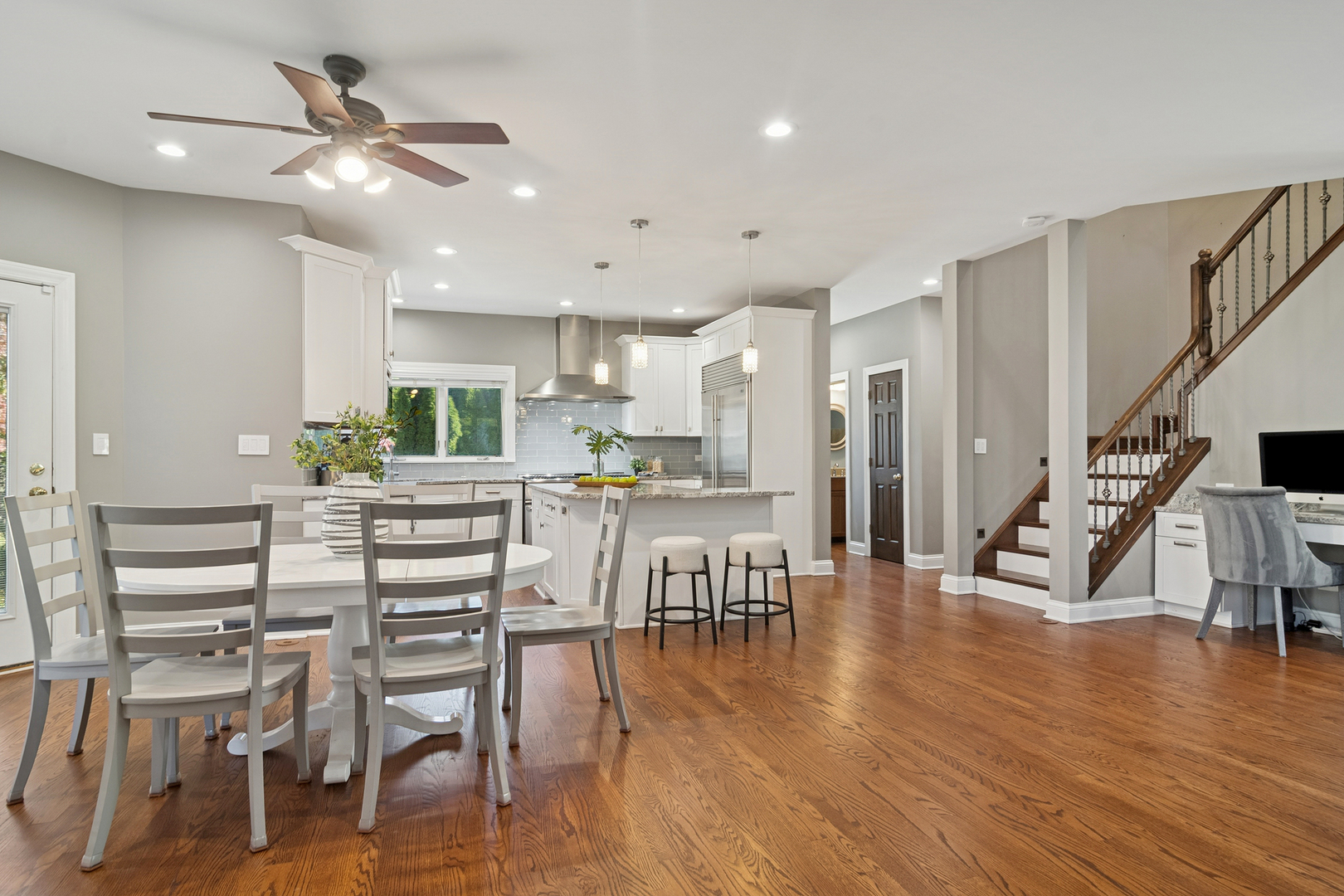 This Smart custom home will fast become your favorite. A welcoming front porch begins your journey into this amazing home. Step into the 2-story center foyer with a bridal staircase leading to the upstairs. On your left a large home office/den features a built in desk. To the right is a large formal dining room with a beautiful butler’s pantry leading into the expansive kitchen. The kitchen has been remodeled with white cabinetry, new granite counters and wood floors as well as high end stainless steel appliances and a gorgeous glass tile backsplash. The center island is large and the eating area even larger. It adjoins the 2-story family room and living room. Gleaming, refinished wood floors flow through the expansive area. Light a fire in the fireplace and cozy up in front of it or enjoy cocktails in the living room area. There is a full bath and a powder room on the first floor. Upstairs the inviting primary bedroom has a sitting area, spa bath with separate vanities and a soaking tub as well as a separate, huge, walk in shower. There are 3 other generous bedrooms and 2 baths including an en-suite. Laundry is conveniently located upstairs. The whole house has radiant heat and brand new zoned AC’s. The basement has high ceilings, a stunning wine cellar, game room, movie theater and workout area all with luxury vinyl plank flooring. Plumbing has been roughed in for a bath. There is a 2 car heated attached garage and a 2-1/2 detached heated garage. The outdoor private patio areas have mature landscaping and the yard is fenced. New boiler, new roof, new AC’s. What’s not to love?