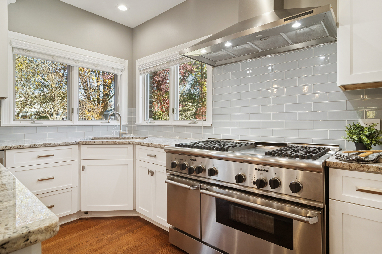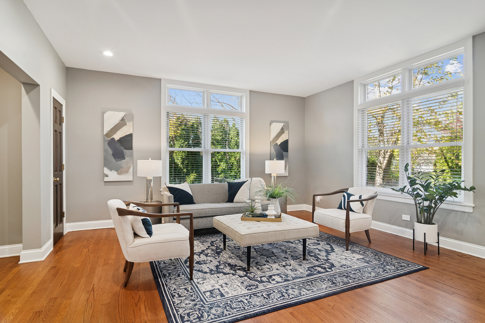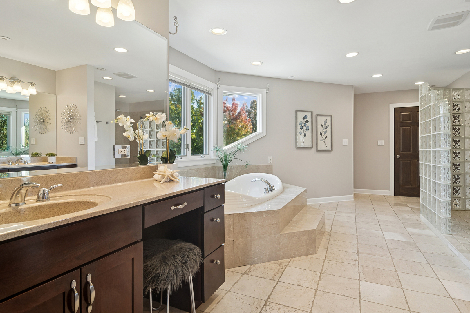 This Smart custom home will fast become your favorite. A welcoming front porch begins your journey into this amazing home. Step into the 2-story center foyer with a bridal staircase leading to the upstairs. On your left a large home office/den features a built in desk. To the right is a large formal dining room with a beautiful butler’s pantry leading into the expansive kitchen. The kitchen has been remodeled with white cabinetry, new granite counters and wood floors as well as high end stainless steel appliances and a gorgeous glass tile backsplash. The center island is large and the eating area even larger. It adjoins the 2-story family room and living room. Gleaming, refinished wood floors flow through the expansive area. Light a fire in the fireplace and cozy up in front of it or enjoy cocktails in the living room area. There is a full bath and a powder room on the first floor. Upstairs the inviting primary bedroom has a sitting area, spa bath with separate vanities and a soaking tub as well as a separate, huge, walk in shower. There are 3 other generous bedrooms and 2 baths including an en-suite. Laundry is conveniently located upstairs. The whole house has radiant heat and brand new zoned AC’s. The basement has high ceilings, a stunning wine cellar, game room, movie theater and workout area all with luxury vinyl plank flooring. Plumbing has been roughed in for a bath. There is a 2 car heated attached garage and a 2-1/2 detached heated garage. The outdoor private patio areas have mature landscaping and the yard is fenced. New boiler, new roof, new AC’s. What’s not to love?
