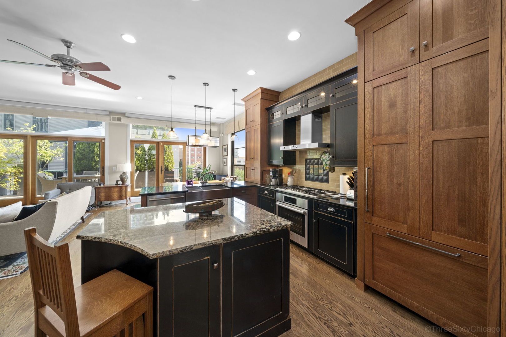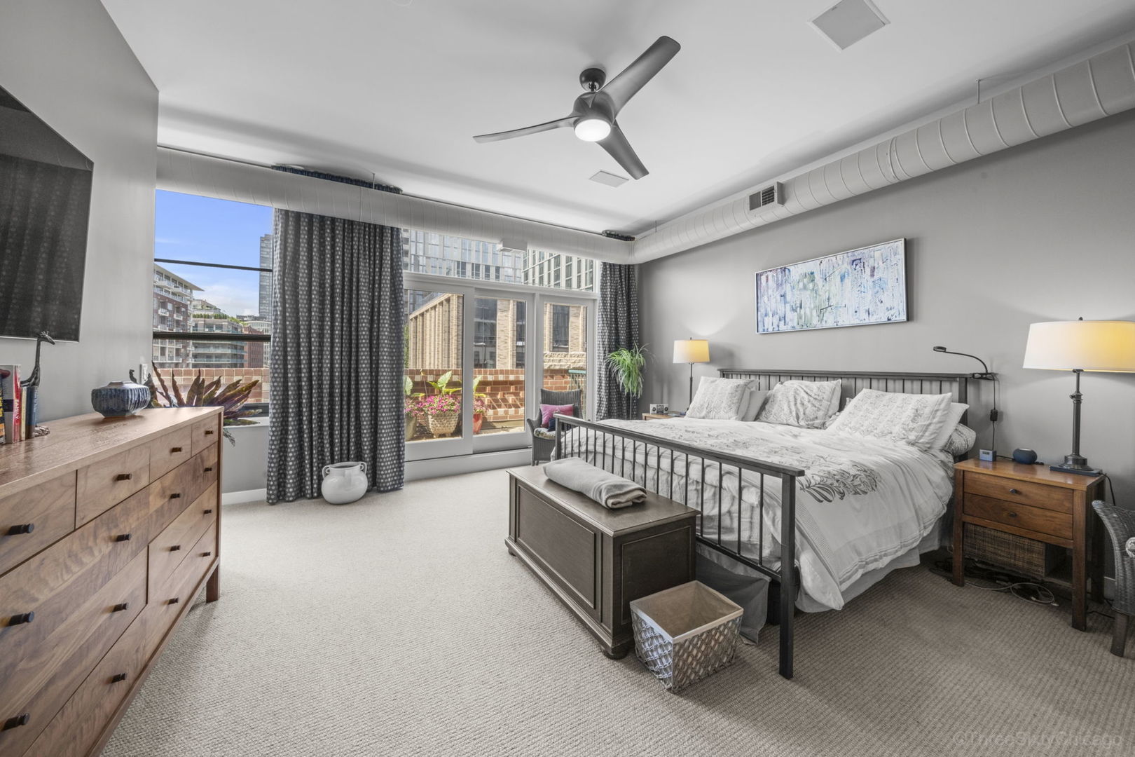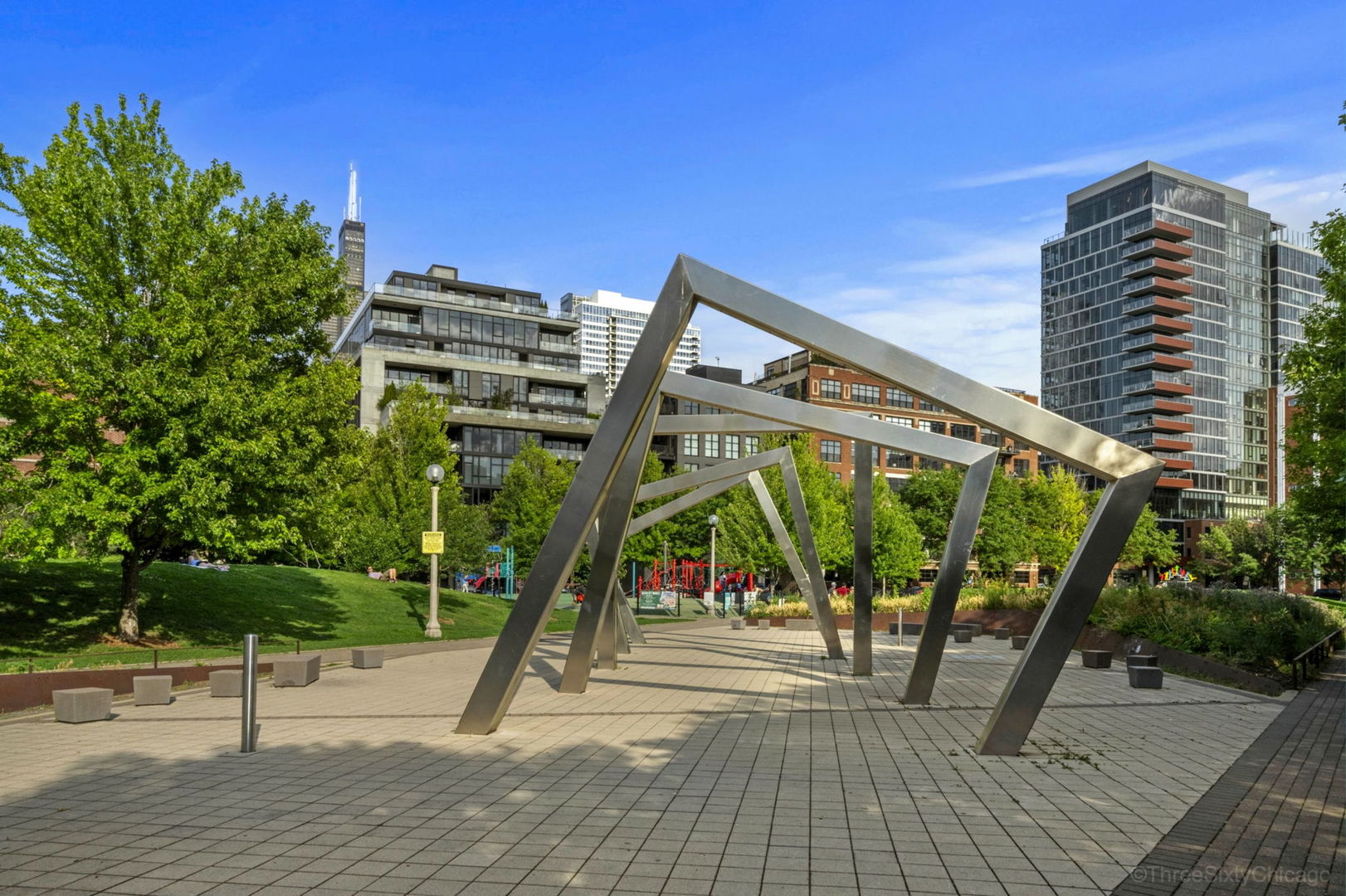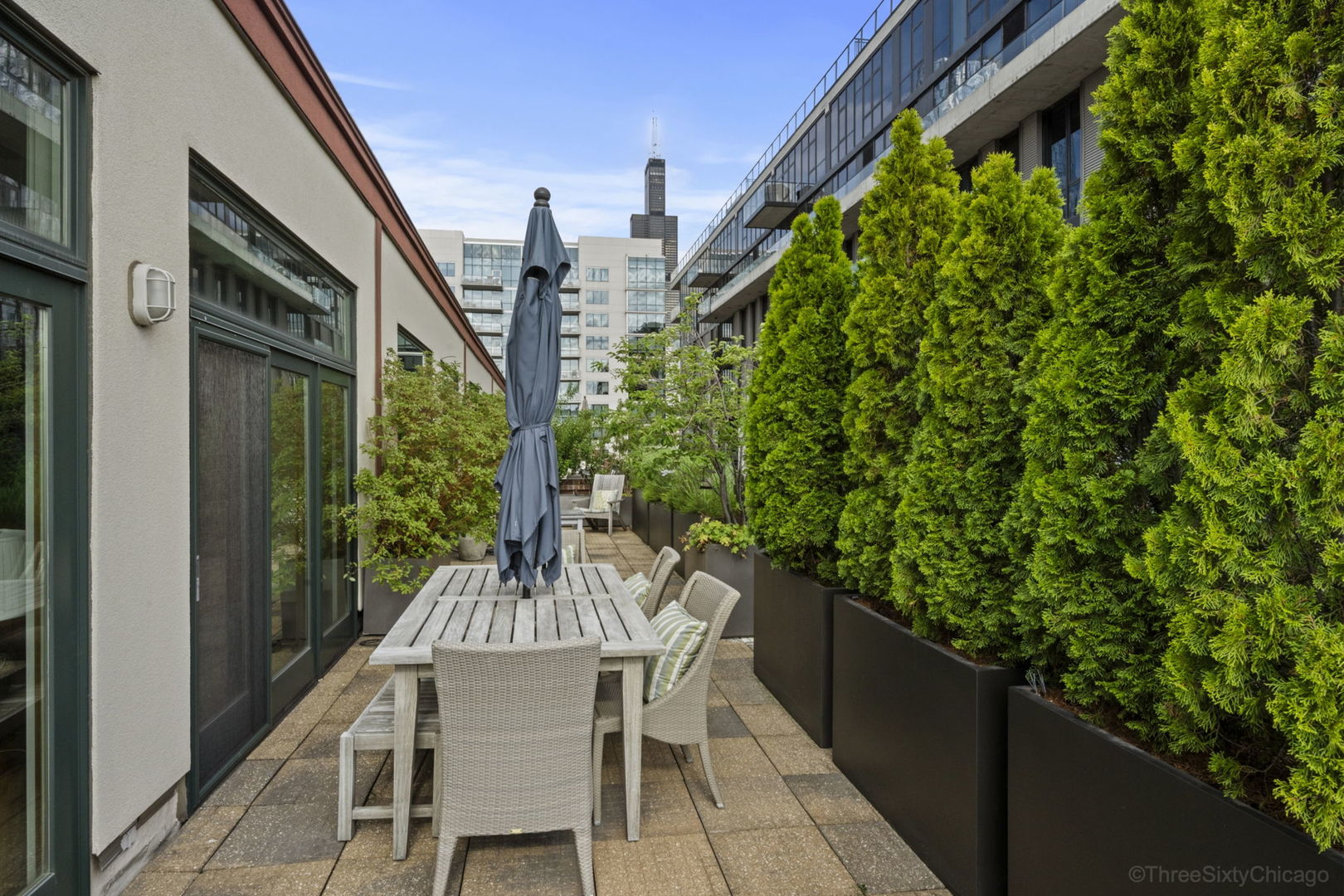 Sophisticated West Loop Penthouse with Park Views & Designer Finishes Welcome to elevated living in the heart of the West Loop. This impeccably updated 3-bedroom, 2-bath penthouse at Monroe Manor offers the perfect blend of luxury, space, and location-all on one expansive level. Step directly from the elevator into this stunning 5th-floor corner unit, where walls of windows and three exposures (South, West, and North) bathe the home in natural light and frame sweeping views of Mary Bartelme Park. The thoughtfully designed North Wing features a gracious living and dining space anchored by a custom EcoSmart stainless biofuel fireplace, adorned with artisan Motawi tile and flanked by built-in bookcases. Entertain with ease thanks to the fully equipped wet bar with oven and seamless access to the spacious North Terrace-ideal for evening cocktails or quiet mornings with a view. The private primary suite is a true retreat, complete with two large walk-in custom closets and a spa-inspired bath featuring dual vanities and a luxurious zero-threshold walk-in shower wrapped in designer tile. At the heart of the South Wing is a chef’s kitchen outfitted with Bosch and Dacor appliances, a breakfast-bar island, custom banquette seating, and a warm, inviting family room with tailored built-ins. An integrated office nook provides smart functionality, while the beautifully landscaped South Terrace-complete with irrigation and park views-offers the perfect backdrop for al fresco dining or summer lounging. Two additional bedrooms, including one with a built-in Murphy bed and custom storage, provide flexible living options. A stylishly renovated guest bath and a spacious laundry room with full-size machines and additional storage add convenience. This penthouse includes two side-by-side parking spaces in the attached heated garage. Ideally situated across from Mary Bartelme Park and moments from the best of Randolph Street, Fulton Market, Whole Foods, and Mariano’s-this is West Loop penthouse living at its finest.