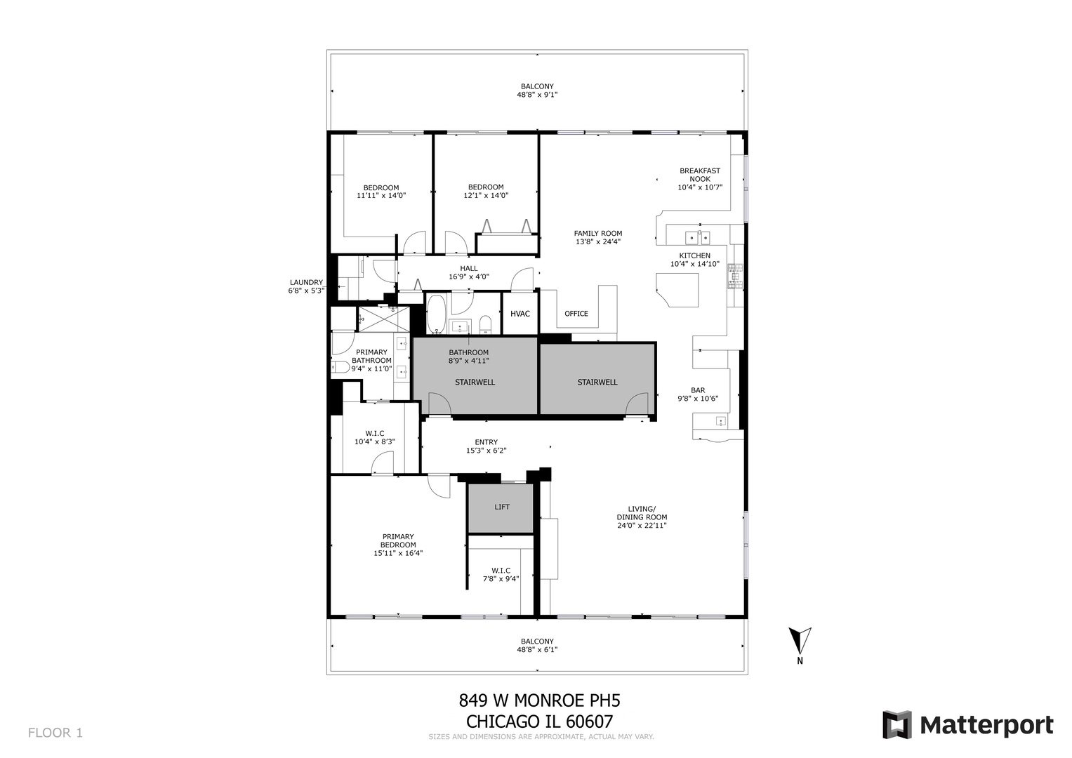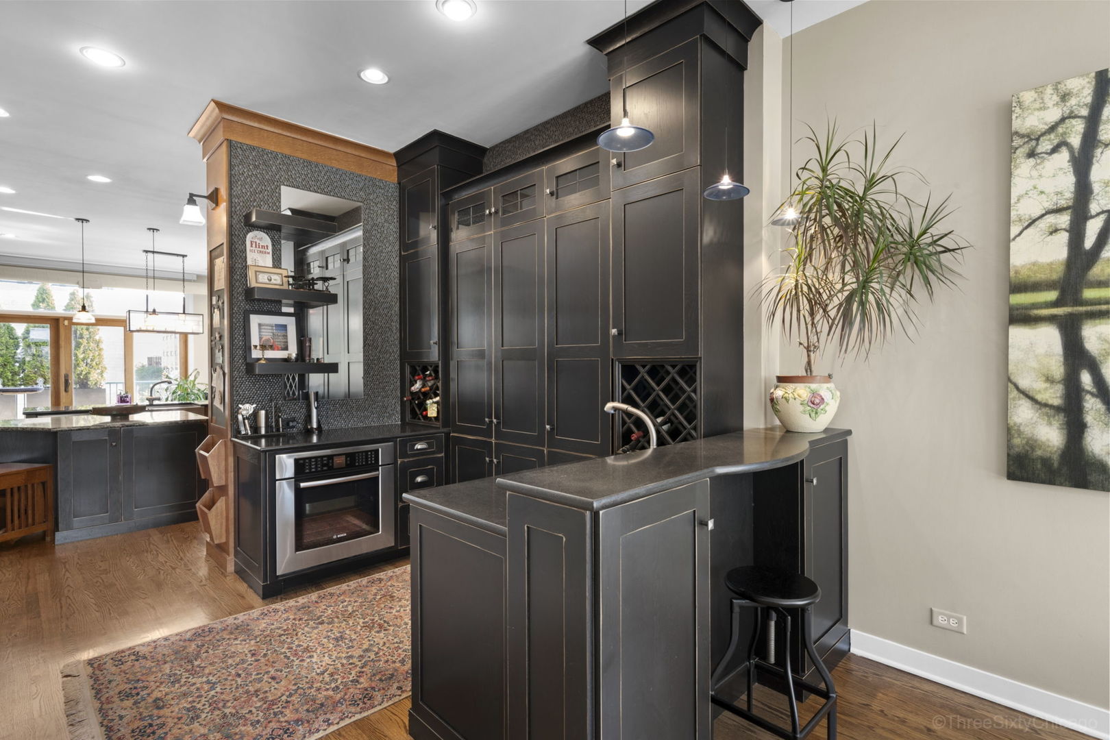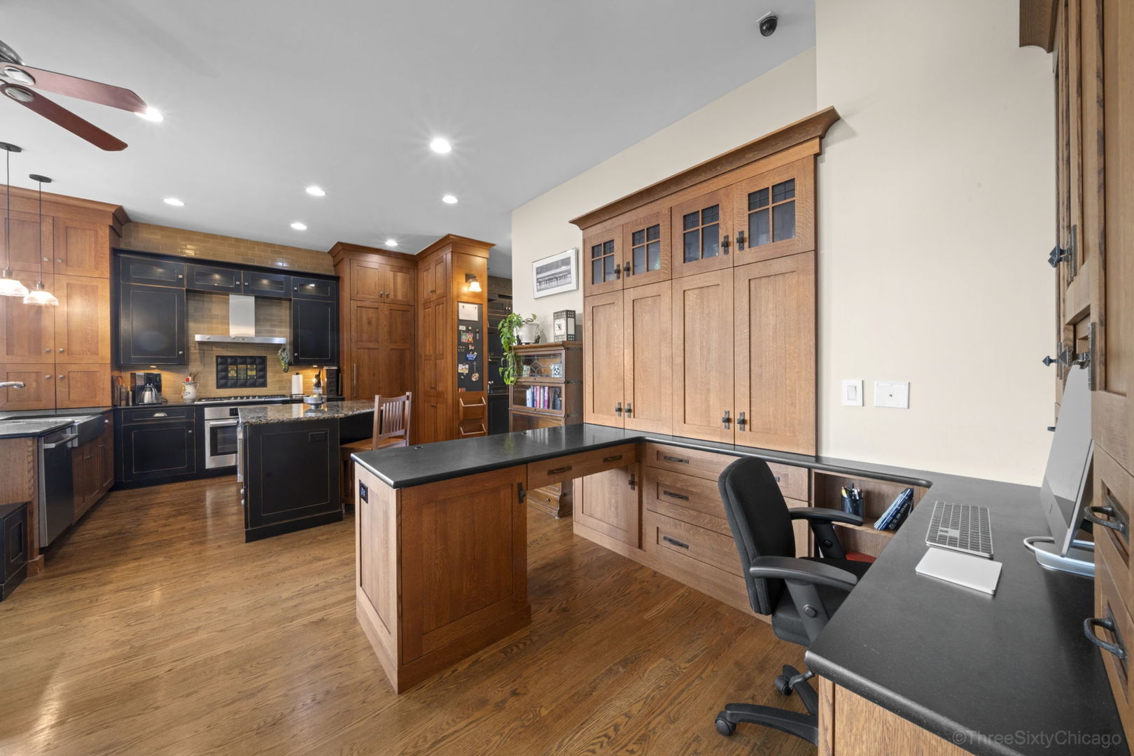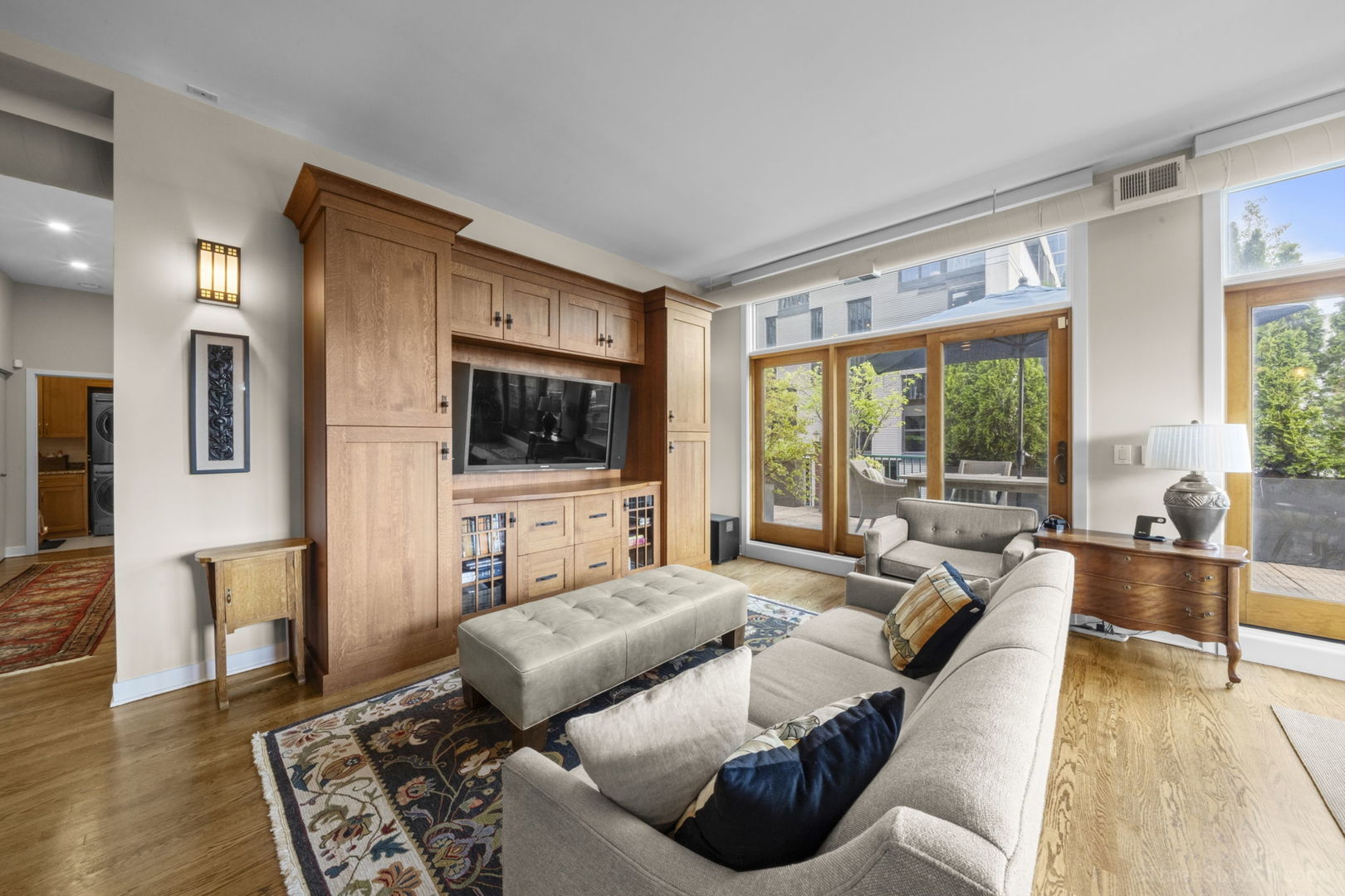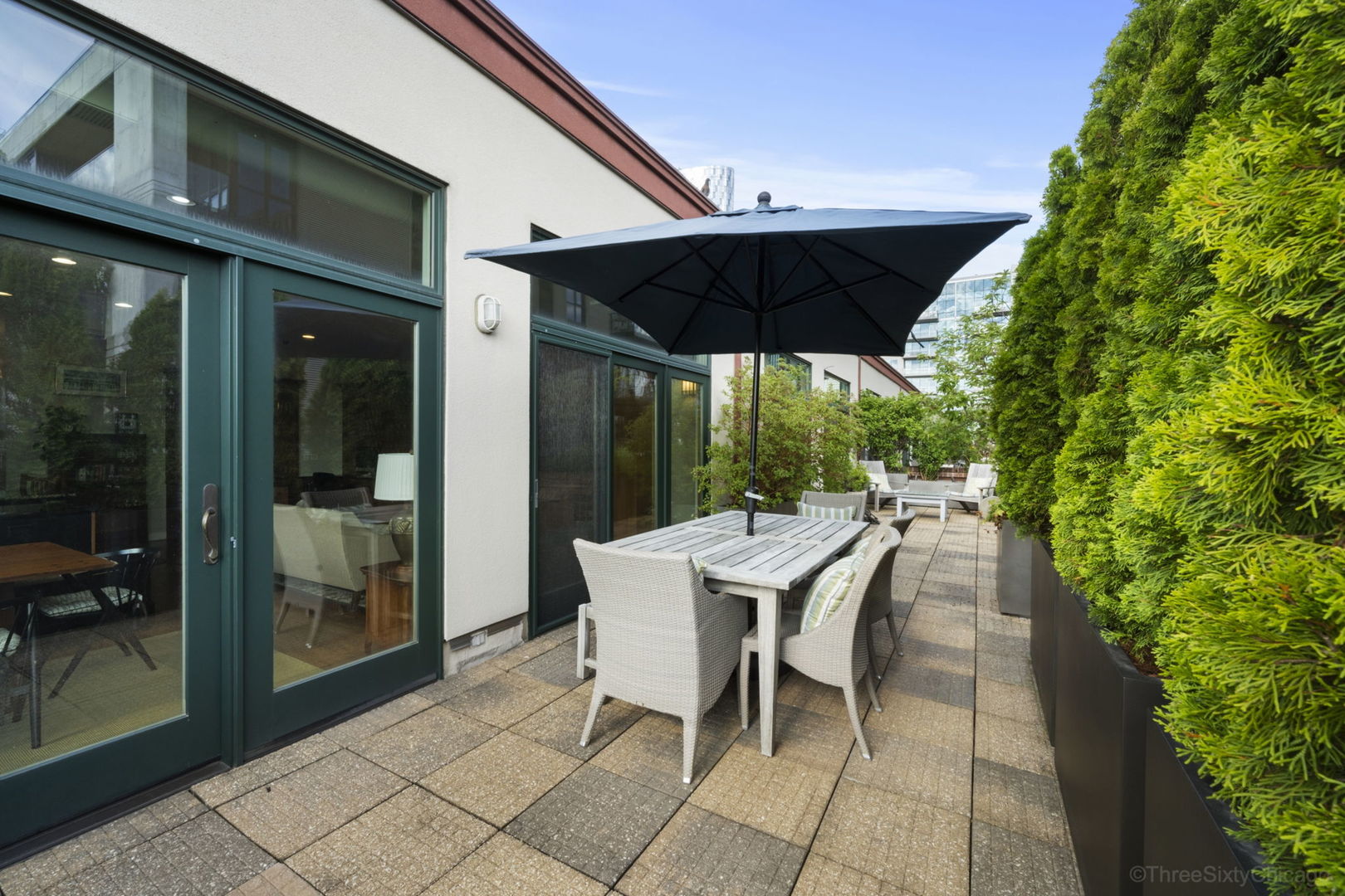 Sophisticated West Loop Penthouse with Park Views & Designer Finishes Welcome to elevated living in the heart of the West Loop. This impeccably updated 3-bedroom, 2-bath penthouse at Monroe Manor offers the perfect blend of luxury, space, and location-all on one expansive level. Step directly from the elevator into this stunning 5th-floor corner unit, where walls of windows and three exposures (South, West, and North) bathe the home in natural light and frame sweeping views of Mary Bartelme Park. The thoughtfully designed North Wing features a gracious living and dining space anchored by a custom EcoSmart stainless biofuel fireplace, adorned with artisan Motawi tile and flanked by built-in bookcases. Entertain with ease thanks to the fully equipped wet bar with oven and seamless access to the spacious North Terrace-ideal for evening cocktails or quiet mornings with a view. The private primary suite is a true retreat, complete with two large walk-in custom closets and a spa-inspired bath featuring dual vanities and a luxurious zero-threshold walk-in shower wrapped in designer tile. At the heart of the South Wing is a chef’s kitchen outfitted with Bosch and Dacor appliances, a breakfast-bar island, custom banquette seating, and a warm, inviting family room with tailored built-ins. An integrated office nook provides smart functionality, while the beautifully landscaped South Terrace-complete with irrigation and park views-offers the perfect backdrop for al fresco dining or summer lounging. Two additional bedrooms, including one with a built-in Murphy bed and custom storage, provide flexible living options. A stylishly renovated guest bath and a spacious laundry room with full-size machines and additional storage add convenience. This penthouse includes two side-by-side parking spaces in the attached heated garage. Ideally situated across from Mary Bartelme Park and moments from the best of Randolph Street, Fulton Market, Whole Foods, and Mariano’s-this is West Loop penthouse living at its finest.