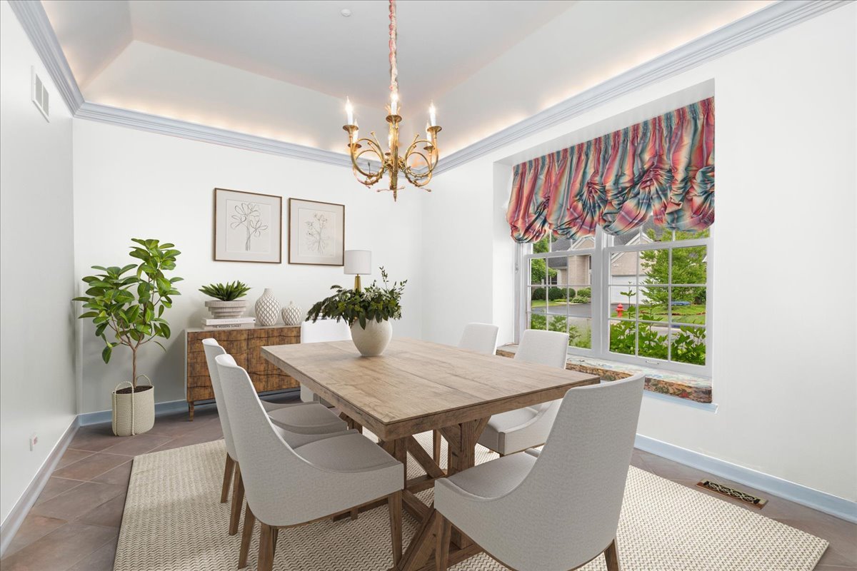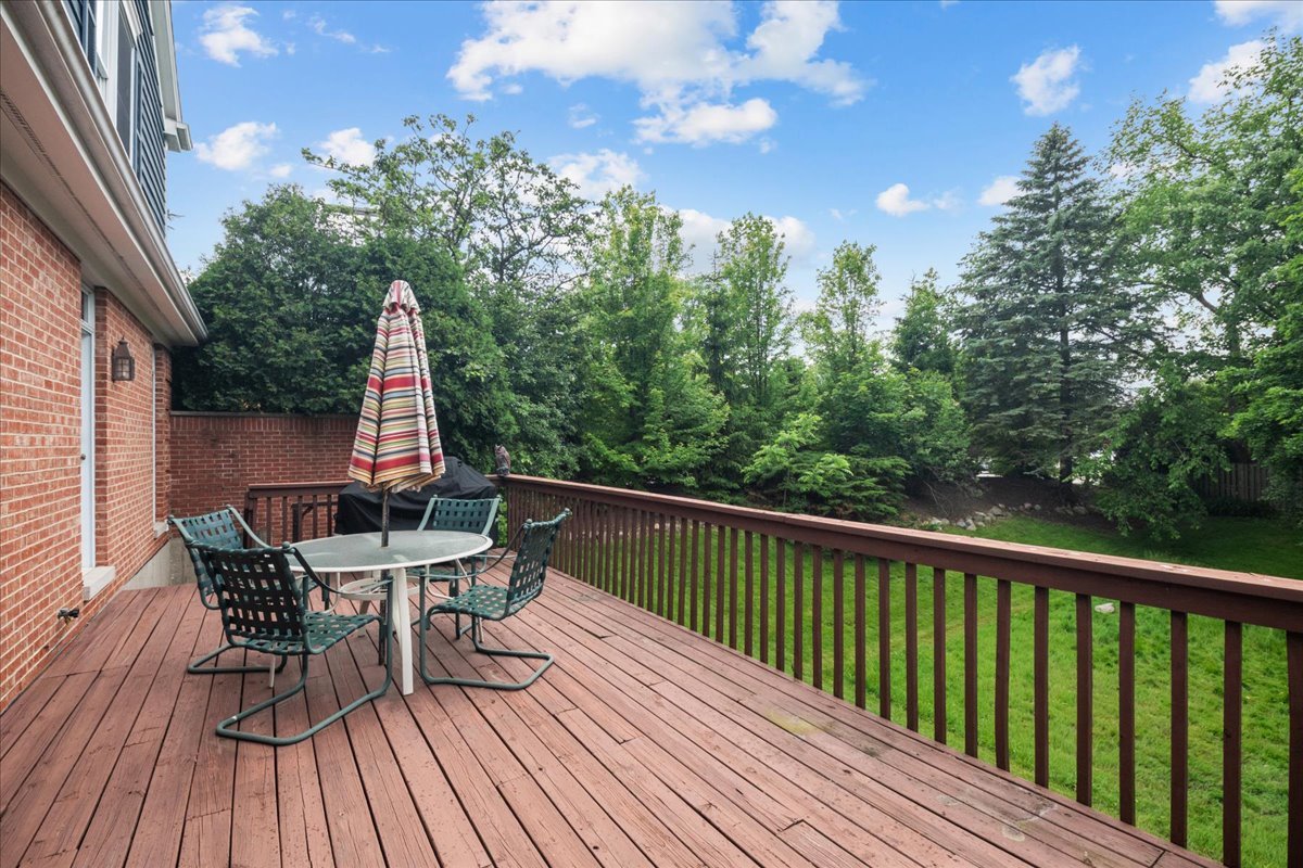 Located on a private cul-de-sac, this sun-filled, newly painted, move-in ready home offers the ease of maintenance-free living and the comfort of a first-floor primary suite. The welcoming foyer opens to a spacious living room with vaulted ceilings, a cozy fireplace and glass-inset patio doors that lead out to a large deck overlooking peaceful wooded views – perfect for relaxing or entertaining. A formal dining room with tray ceiling and elegant cove lighting sets the scene for gatherings. The eat-in kitchen features wood cabinetry, granite countertops and stainless-steel appliances. The first-floor primary suite is a private retreat with a large walk-in closet, direct deck access and an en-suite bath complete with double vanity, whirlpool tub and separate shower. Additional main floor highlights include a powder room and a laundry/mudroom with access to the attached two-car garage. Upstairs, a loft area offers flexible space for a family room or home office. Two additional bedrooms share a hall bath with a double vanity. The finished lower level adds generous living space with a recreation room, dedicated art room and plenty of storage. Enjoy outdoor living on the expansive deck with wooded views. Great opportunity to make this home yours!