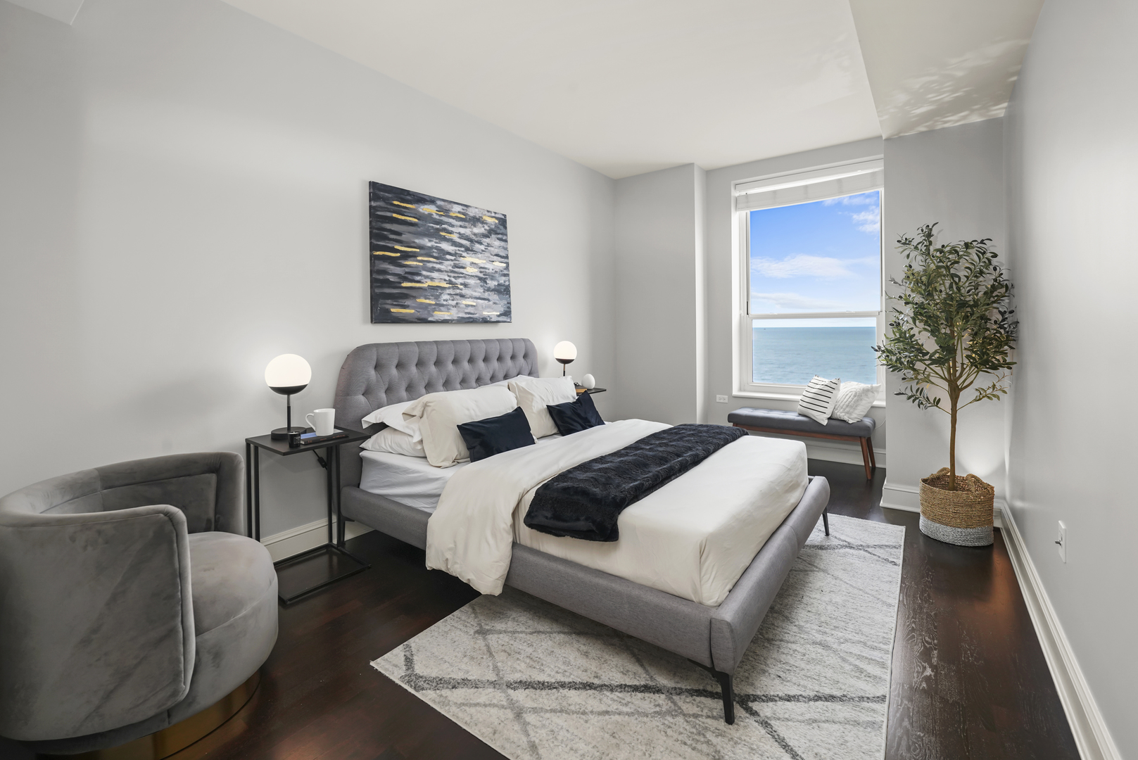One, two, and three bedroom units available ranging from 1000-3700+ square feet. 1005 is a 1737 sq ft lake facing split two bedroom with den, 9′ ceilings, loads of closets, kitchen with all new SS Bosch kitchen appliances and new, in-unit Whirlpool washer and dryer. This beautifully renovated historical building, nestled along Chicago’s picturesque lakefront, seamlessly combines timeless elegance with contemporary luxury. Step into the magnificent lobby, and you’ll instantly be transported to a modern take on a classic, surrounded by exquisite architectural details that showcase the craftsmanship of this iconic structure. From intricately carved moldings to soaring ceilings adorned with stunning chandeliers, every inch of this building exudes a sense of grandeur. 1005, where old-world charm effortlessly merges with modern design, creating a harmonious balance between style and functionality. But it’s not just the interiors that set this building apart. It also offers a wide range of amenities designed to enhance your lifestyle. Take a dip in the heated indoor pool, work up a sweat in the state-of-the-art fitness center, or host unforgettable gatherings in the expansive 3,500-square-foot Grand Lounge, complete with soaring 20-foot ceilings and breathtaking views of the lake. The rooftop deck greets residents with mesmerizing vistas of Lake Michigan. Picture yourself savoring your morning coffee as the sun rises over the water or hosting memorable events against the backdrop of the city’s skyline and the serene lakefront. Beyond the building’s beauty, its location is unparalleled. Situated between Michigan Avenue and Lake Shore Drive, this residence offers access to the vibrant cultural scene, world-class dining options, and the finest shopping experiences that the city has to offer. Whether you’re leisurely strolling along the scenic lakefront trail, exploring nearby museums, or enjoying a day at the beach, everything you desire is at your front door. **Photos and Virtual Tour are of the model residence. These are representative of inventory available or optional finish upgrades and may not exactly represent this listing unit. The design choices represented in the renderings of the lobby are proposed options reflecting general design inspiration and considerations. All design intent is subject to change. A variety of floorplans and finish packages are available.**