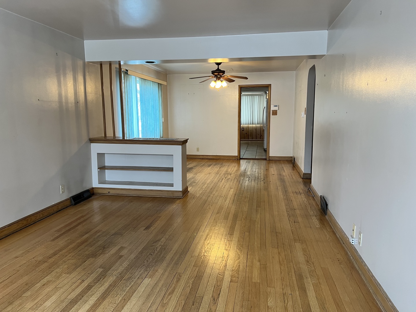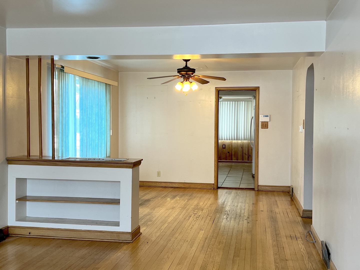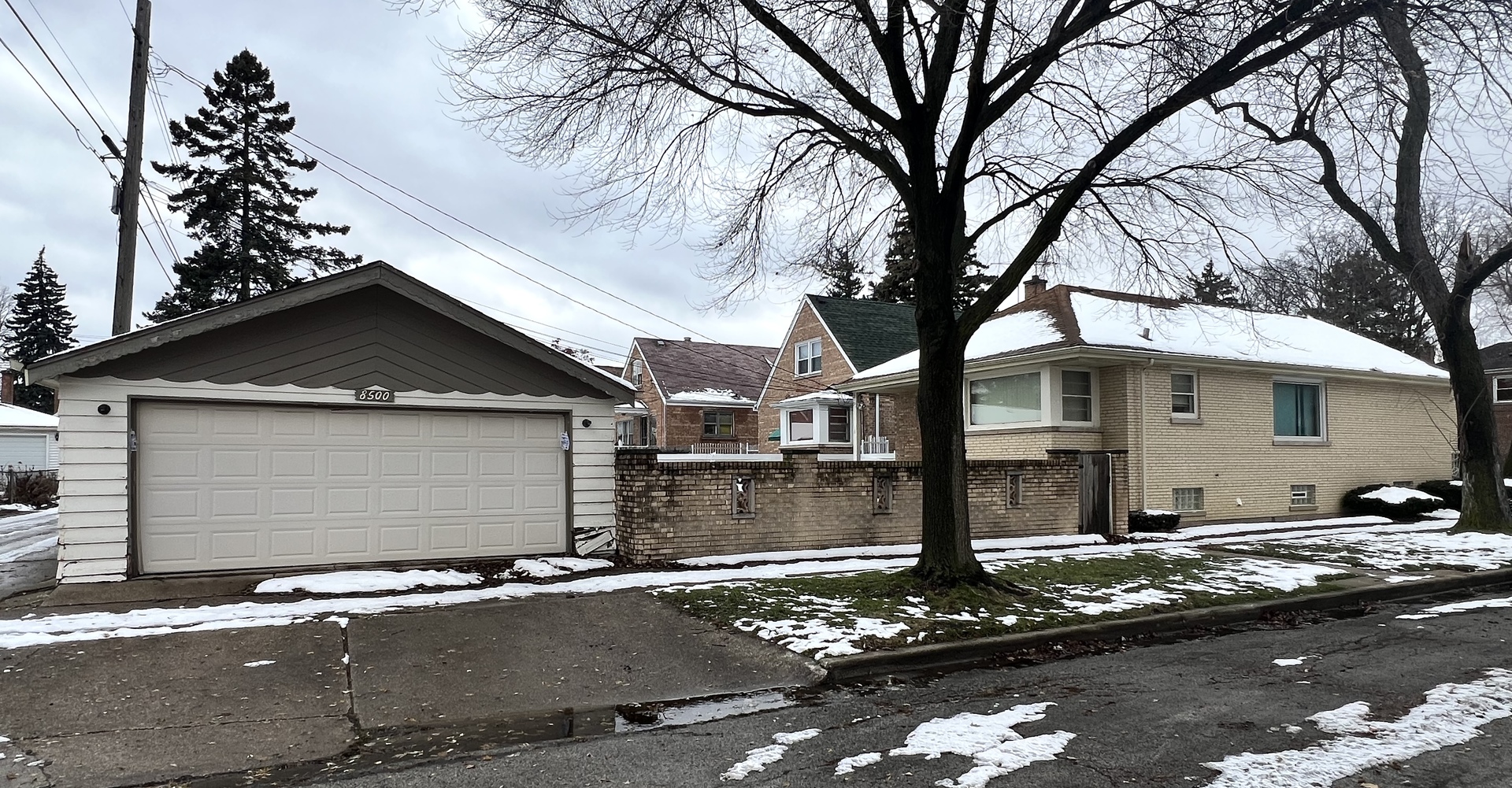 This mid-century bungalow is full of natural light. It is located on an oversized corner lot with a 2-car garage and a lovely backyard surrounded by a privacy fence. This 2BR home has an eat-in kitchen in addition to a separate dining room with a bar and powder room in the basement — great potential for entertaining. This is a solid property that needs some TLC and aesthetic updates. Sold AS-IS.