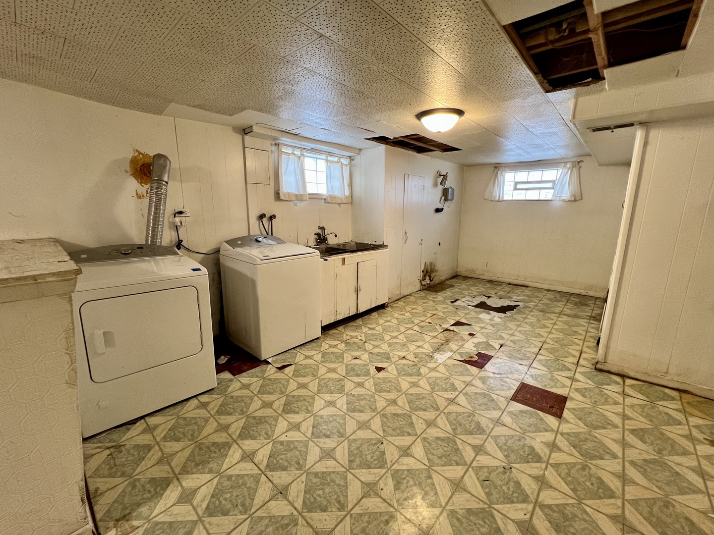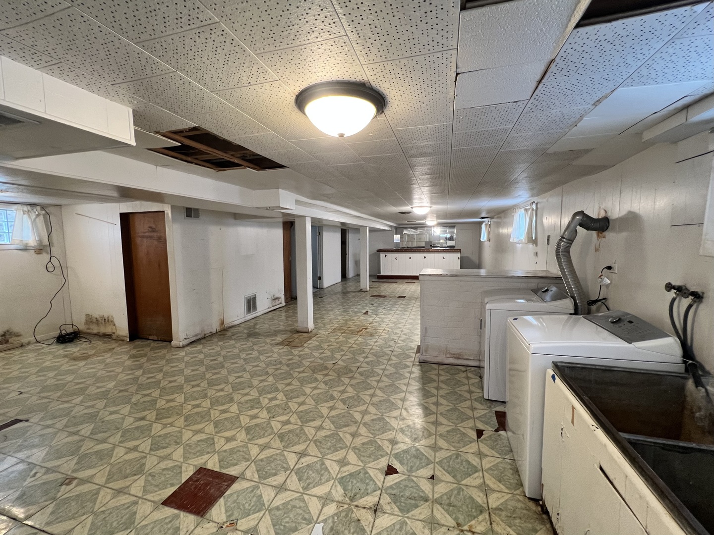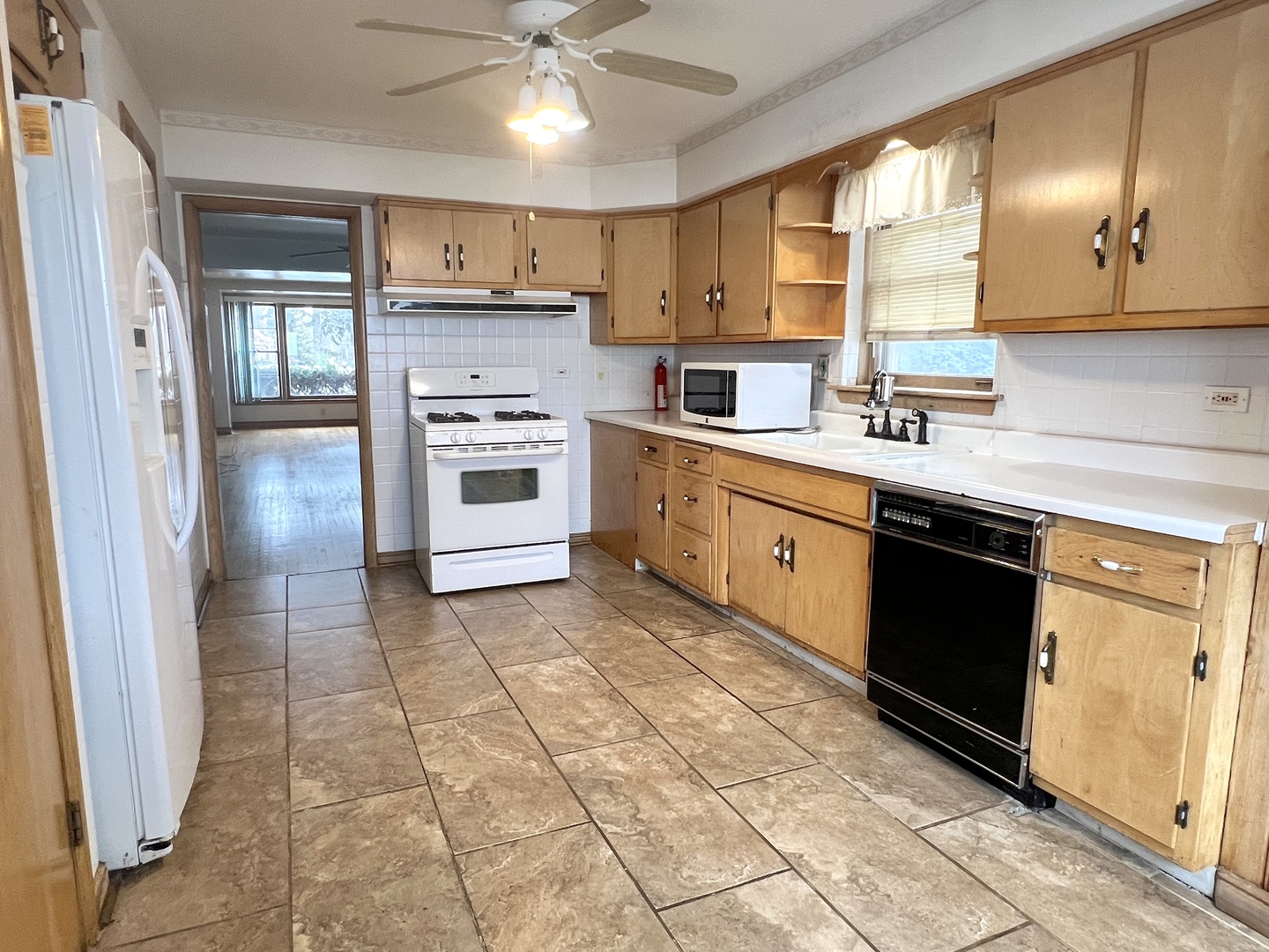 This mid-century bungalow is full of natural light. It is located on an oversized corner lot with a 2-car garage and a lovely backyard surrounded by a privacy fence. This 2BR home has an eat-in kitchen in addition to a separate dining room with a bar and powder room in the basement — great potential for entertaining. This is a solid property that needs some TLC and aesthetic updates. Sold AS-IS.