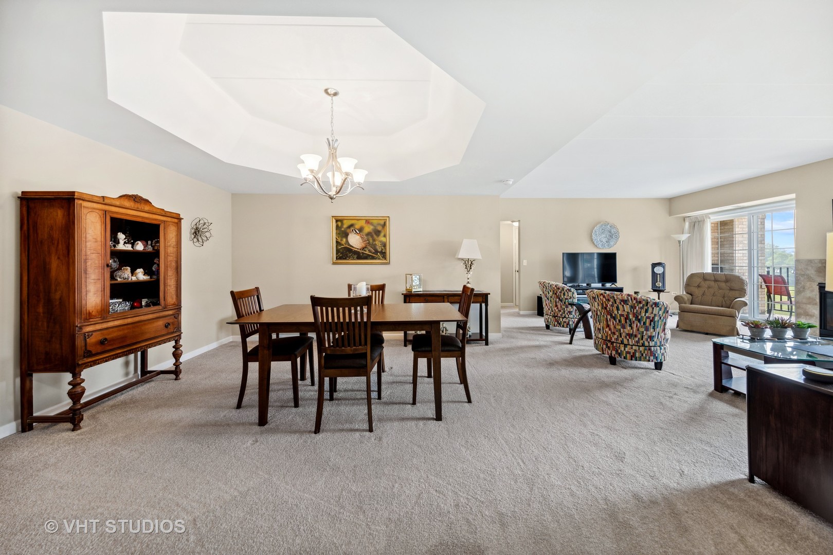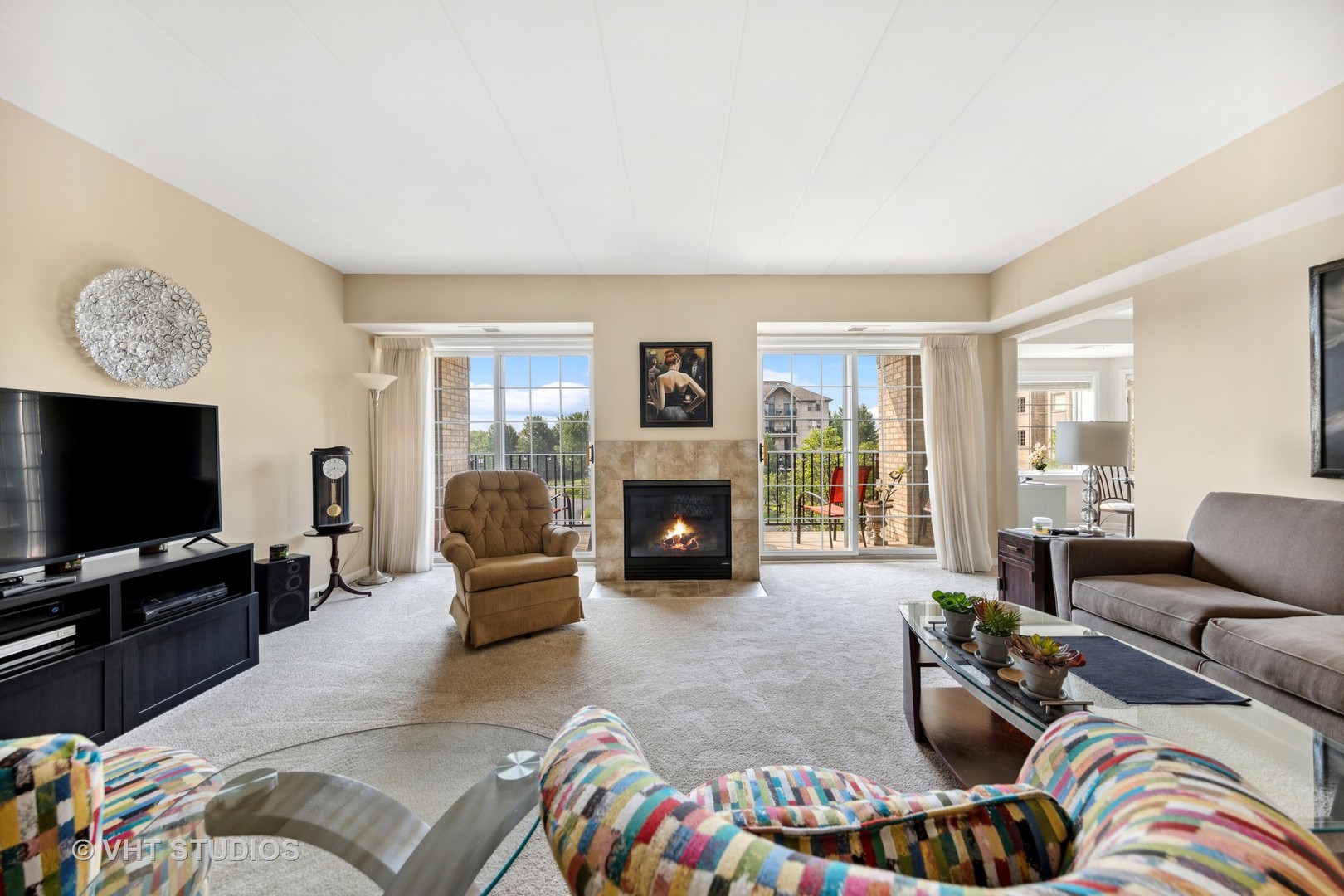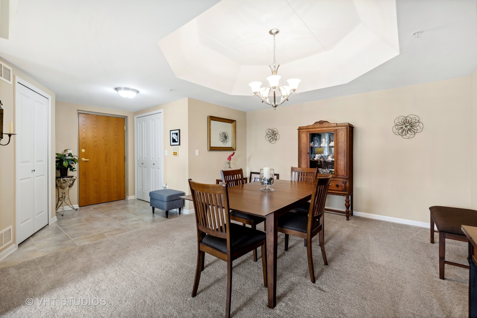 Welcome to the Dover Model Custom Built in 2016~ONE OWNER~in Sought-After Farmingdale Village a Gallagher & Henry Built Community! Nestled in one of Woodridge’s most desirable communities, this stunning 2-bedroom, 2-bath condo combines comfort, convenience, and tasteful design. Known for its solid flexicore construction, Farmingdale Village offers residents a peaceful lifestyle with quick access to I-355, premier shopping, dining, and is located within the highly rated Downers Grove South High School district. Step inside to an elegant & spacious home with traditional floor plan featuring a welcoming foyer with beautiful ceramic tile. The formal dining room showcases an elegant tray ceiling, while the sun-filled living room boasts a cozy fireplace and sliding glass doors that bring in fresh air and natural light. Plush carpeting runs throughout the main living areas, adding warmth and comfort. The updated kitchen is a true showstopper, featuring Clarino quartz countertops, classic subway tile backsplash, abundant soft close cabinetry & lower cabinets include pull out drawers for easy access, base under the sink is by coreguard for added protection; along with stainless steel appliances, and a sunny eat-in breakfast area-perfect for your morning coffee or casual meals. The primary suite is a peaceful retreat, large enough to accommodate a queen or king-size bed, complete with a walk-in closet and a beautifully updated en-suite bath. One of the standout features is the custom-designed step-in shower, an innovative idea from this unit’s owner that impressed the builder so much, it became a staple in future floor plans.The 2nd bedroom offers double closets and access to the 2nd full bath, with bathtub & shower. Additional features include in-unit laundry with ample closet space, heated garage with assigned parking #14, dedicated storage unit in the garage and elevator access for convenience. You won’t find a more well-cared-for, tastefully upgraded home in all of Woodridge. Don’t miss your chance to own this exceptional condo in Farmingdale Village!