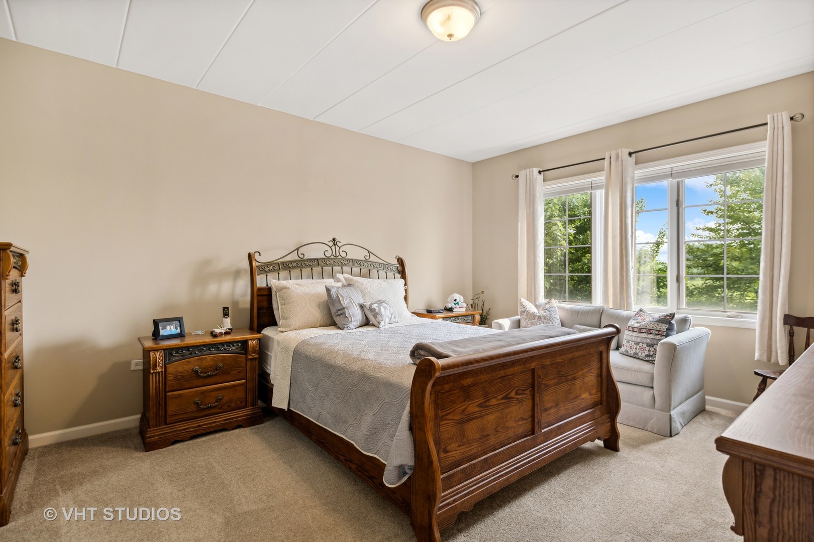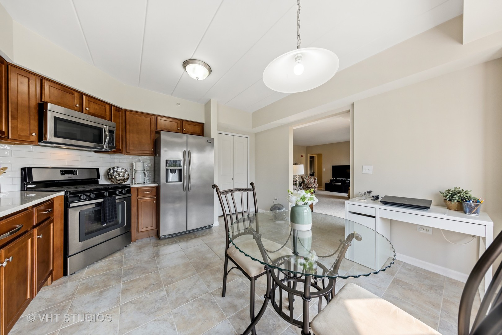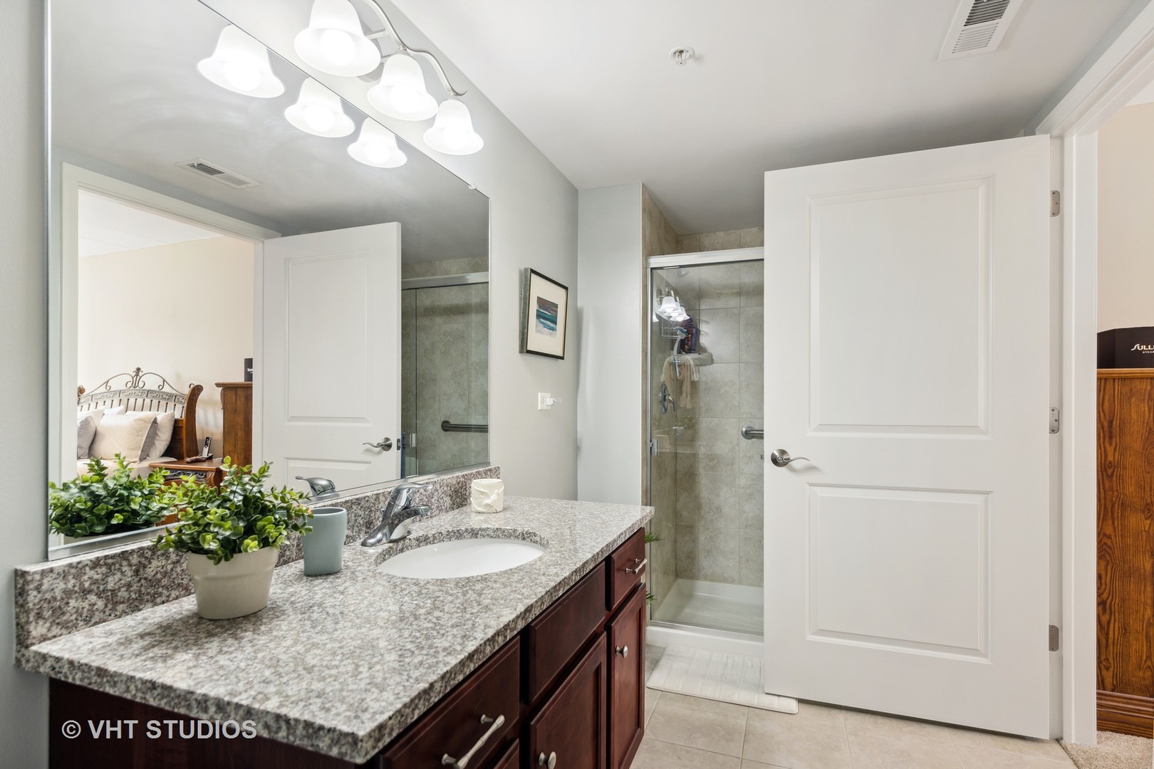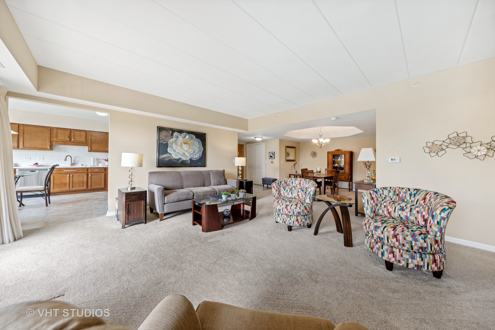 Welcome to the Dover Model Custom Built in 2016~ONE OWNER~in Sought-After Farmingdale Village a Gallagher & Henry Built Community! Nestled in one of Woodridge’s most desirable communities, this stunning 2-bedroom, 2-bath condo combines comfort, convenience, and tasteful design. Known for its solid flexicore construction, Farmingdale Village offers residents a peaceful lifestyle with quick access to I-355, premier shopping, dining, and is located within the highly rated Downers Grove South High School district. Step inside to an elegant & spacious home with traditional floor plan featuring a welcoming foyer with beautiful ceramic tile. The formal dining room showcases an elegant tray ceiling, while the sun-filled living room boasts a cozy fireplace and sliding glass doors that bring in fresh air and natural light. Plush carpeting runs throughout the main living areas, adding warmth and comfort. The updated kitchen is a true showstopper, featuring Clarino quartz countertops, classic subway tile backsplash, abundant soft close cabinetry & lower cabinets include pull out drawers for easy access, base under the sink is by coreguard for added protection; along with stainless steel appliances, and a sunny eat-in breakfast area-perfect for your morning coffee or casual meals. The primary suite is a peaceful retreat, large enough to accommodate a queen or king-size bed, complete with a walk-in closet and a beautifully updated en-suite bath. One of the standout features is the custom-designed step-in shower, an innovative idea from this unit’s owner that impressed the builder so much, it became a staple in future floor plans.The 2nd bedroom offers double closets and access to the 2nd full bath, with bathtub & shower. Additional features include in-unit laundry with ample closet space, heated garage with assigned parking #14, dedicated storage unit in the garage and elevator access for convenience. You won’t find a more well-cared-for, tastefully upgraded home in all of Woodridge. Don’t miss your chance to own this exceptional condo in Farmingdale Village!