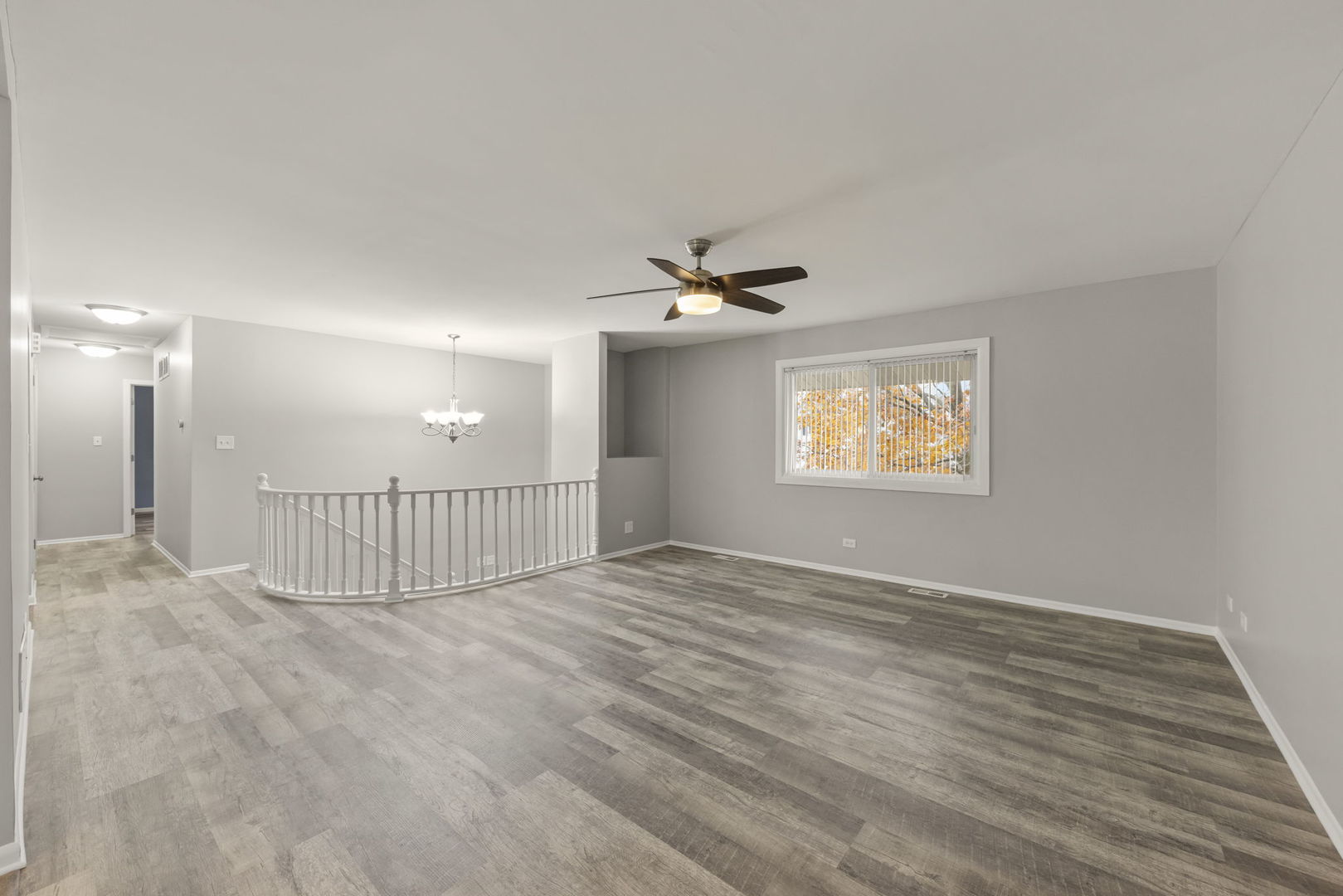 Welcome to this beautifully updated home offering an ideal blend of style, comfort, and functionality. Featuring an amazing open floor plan, this home is freshly painted in neutral tones with crisp white trim and doors throughout. New floors flow seamlessly across the main living areas, enhancing the bright and airy feel. The eat-in kitchen is a showstopper, boasting ceiling-height dark cabinetry with brushed nickel hardware, light granite countertops, stainless steel appliances (new July 2025), and Lifeproof vinyl flooring-perfect for both everyday living and entertaining. Additional highlights include: New furnace installed October 2025, Updated electrical system and Ceiling fans in all rooms for year-round comfort. Enjoy the comfort and cozy ambiance of the brick fireplace in the lower level. Fully fenced yard with a large deck (ideal for entertaining), concrete patio, and shed (2018). Located in a desirable neighborhood, this home is within walking distance to elementary and high schools, the Carol Stream Park District with fitness center, and Armstrong Park-perfect for biking or strolling once the weather warms up. Families will love the abundance of nearby parks and playgrounds, all just a short walk away. Conveniently close to shopping, restaurants, and expressways, this home offers the perfect combination of modern updates, thoughtful features, and unbeatable location.