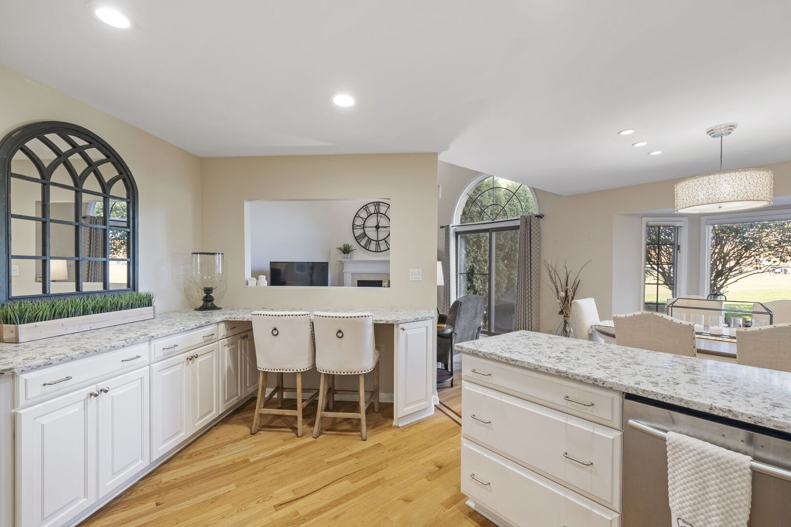 Rarely available and ABSOLUTELY CHARMING! This beautifully updated townhome in the sought-after Villas of Carriage Green offers the perfect blend of comfort, style and a premium location. Featuring three beautifully finished levels. The second floor boasts three generous bedrooms and two full bathrooms. The main level features a stunning & fully remodeled kitchen, hardwood floors, a convenient laundry room, a family room with cozy fireplace that creates a warm and inviting atmosphere, an updated powder room, a walk-out to a private patio and an attached 2-car garage. Lastly, a fully finished basement provides so much extra living space and tremendous storage! Enjoy the serene backyard views and exceptional privacy from this stellar location. Truly the one you’ve waited for.. It’s so perfect!