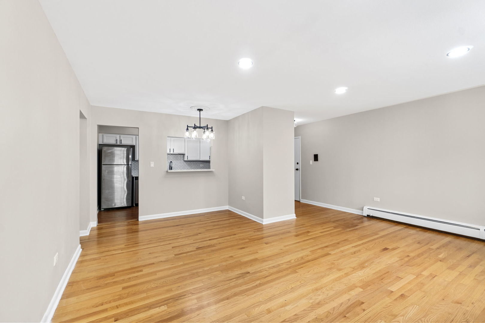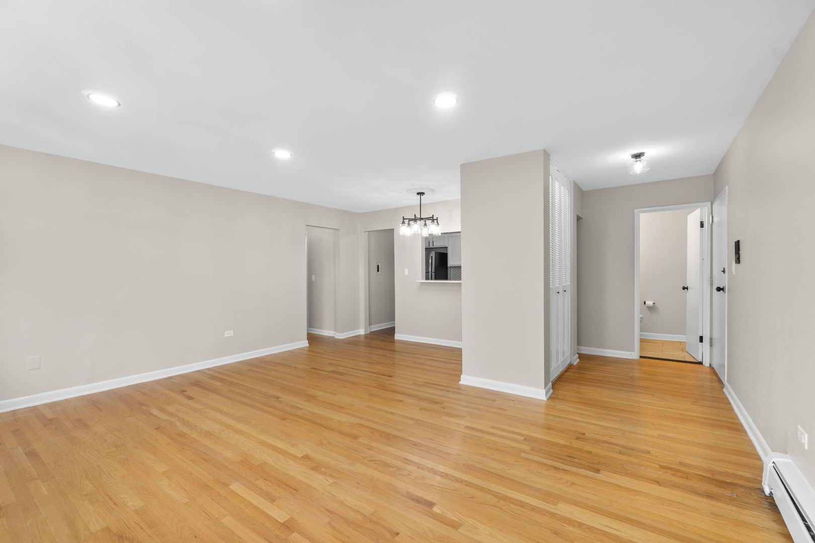 Updated 2 BR/1.5 BA with heated garage space included. This unit is on the top floor with lots of light, hardwood floors, a new kitchen and updated bathrooms. Near golf course, shopping, restaurants and highway.