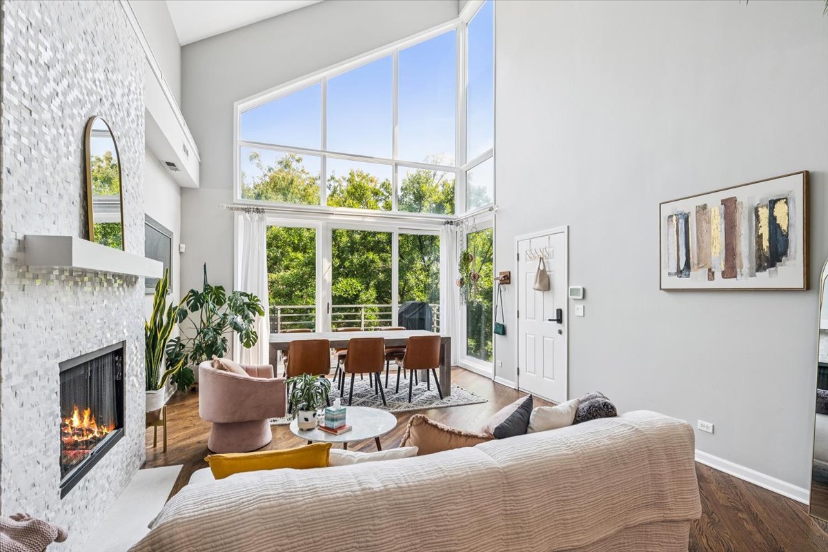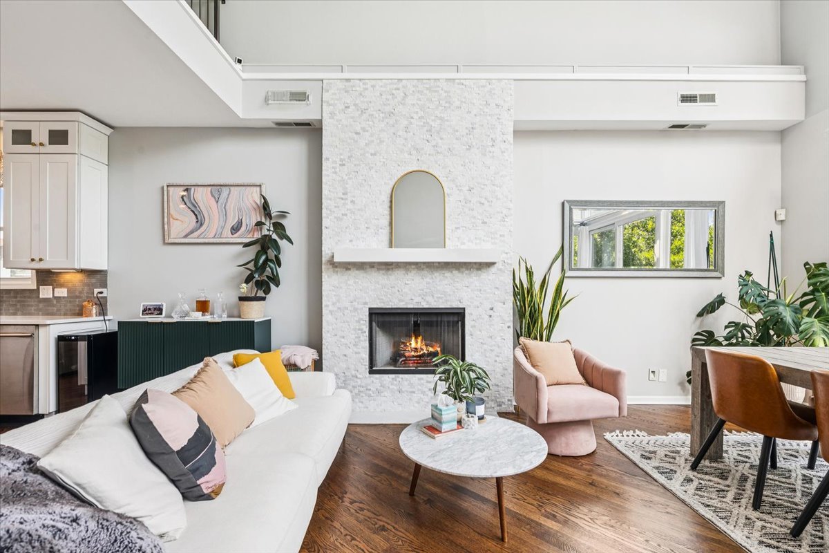 Sitting high in the treetops, this one of a kind 3 bed 3 bath West Town duplex up penthouse is ready for you to make it your home! Soaring 23′ cathedral ceilings allowing natural light to pour into the living room, dining room and kitchen – all on the main level. Gleaming dark hardwood floors contrast beautifully with the chef’s kitchen and stunning gas fireplace. Relax in your serene primary suite, complete with dual sinks, spa like shower and separate soaking tubs or enjoy your morning coffee on one of three private outdoor spaces including one off the primary. An additional bedroom, full bath and in-unit laundry round out the main floor. Upstairs, the sunlight continues to stream in thanks to an open loft perfect for work or working out! French doors lead you into the 3rd bedroom/flex space that features soaring ceilings, a full bathroom and a wet bar making this a great space for entertaining or a private retreat for guests! Located near everything West Town has to offer, you’ll find yourself walking to dining and entertainment! Additional storage and parking are included with this fabulous penthouse.