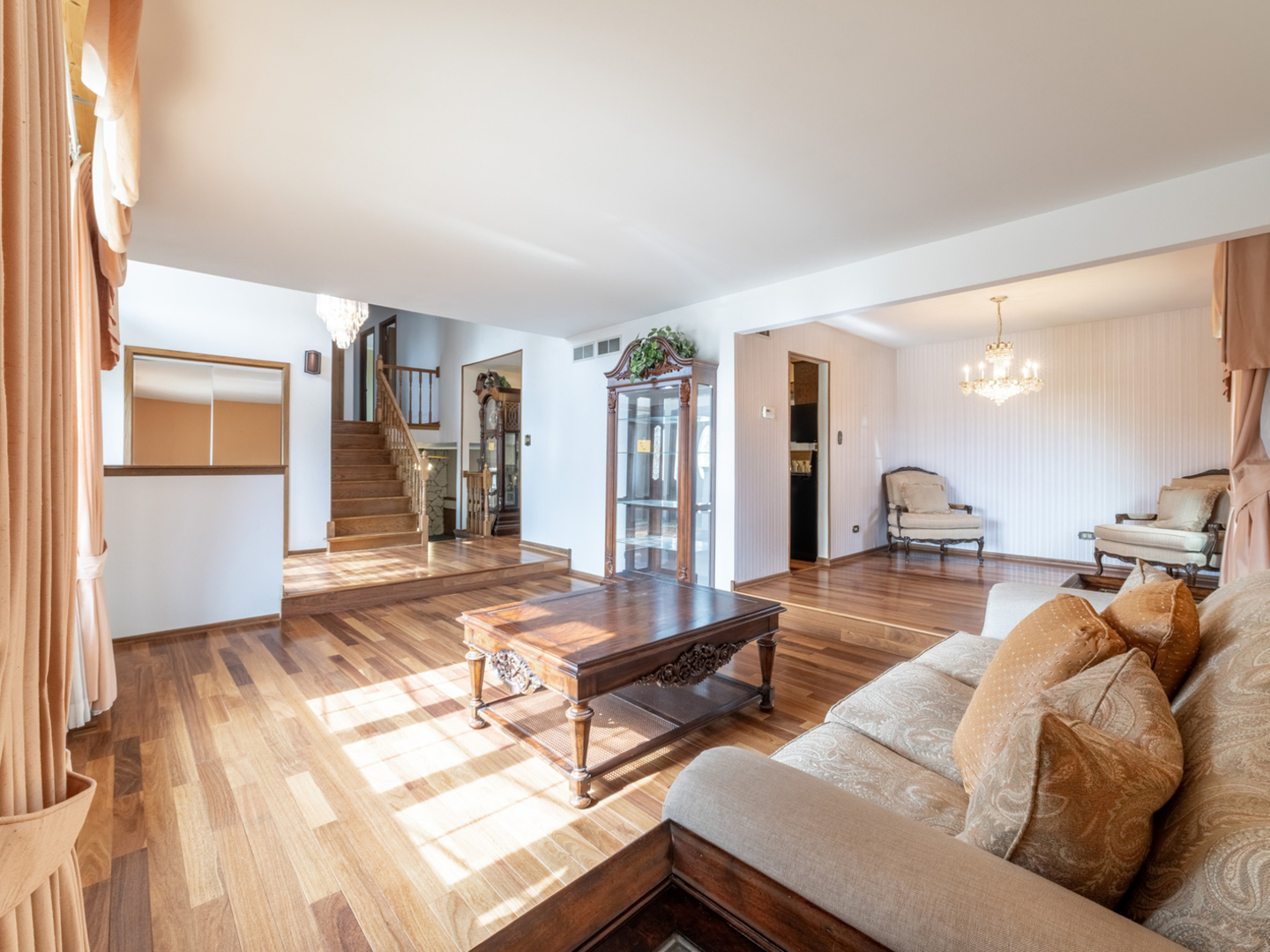 Welcome to this beautifully maintained, custom-built tri-level home in the heart of Tinley Park. This mostly brick, one-owner home showcases true pride of ownership and quality craftsmanship throughout. Step inside to a spacious foyerthat opens to a bright and inviting living room and formal dining area, both featuring gorgeous hardwood floors. The eat-inkitchen offers Corian countertops, oak cabinetry, and stainless steel appliances-perfect for preparing meals andgathering with loved ones. A stunning three-seasons room extends the living space, providing the ideal spot to relax andenjoy peaceful views in every season. The lower level features a huge family room, a full bath, laundry area with newer washer (2023) and dryer (2021),convenient crawl space access, and direct entry to the attached 2.5-car garage. The home is also equipped with a newerhot water heater (2023) and HVAC system installed around 2015. Upstairs, you’ll find three generously sized bedroomsand another full bath, all adorned with beautiful hardwood flooring. Outside, the home is surrounded by professionallylandscaped grounds, offering curb appeal and a peaceful setting to enjoy the outdoors. This thoughtfully designedlayout offers both comfort and functionality, making it perfect for everyday living and entertaining. Located in a quiet, well-established neighborhood, this home is close to everything Tinley Park has to offer-top-ratedschools, scenic parks, vibrant dining and shopping, and easy access to major highways and Metra for commuters.Combining timeless charm, quality construction, and a prime location, this home is an exceptional find in one of TinleyPark’s most desirable communities.