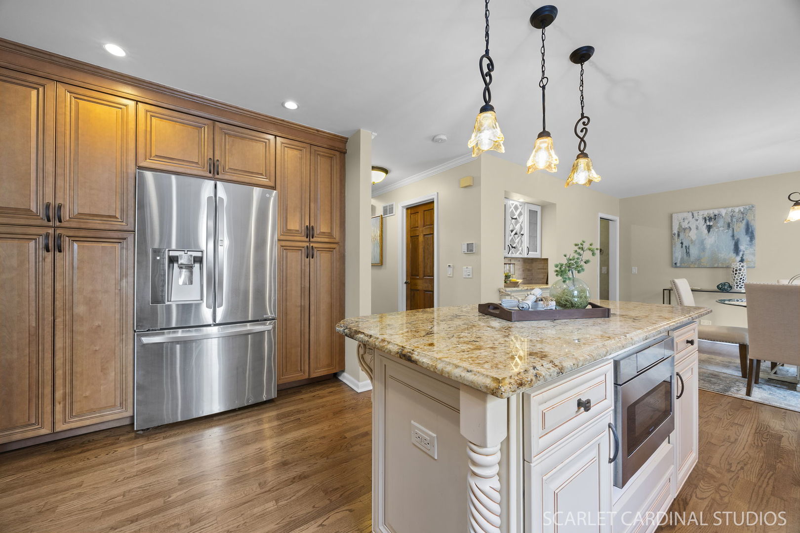 This stunning, executive style Brighton Ridge home IS the new Naperville home you’ve been dreaming of! Step in to your 2-story foyer featuring gleaming hardwood flooring and 2 closets, flanked by the perfect 1st floor bedroom or office. Entertaining is such a breeze here with the large formal living room and elegant dining room connected, they can accommodate the largest gatherings! The exceptional kitchen has been so beautifully remodeled with custom details and maple cabinetry. Stainless appliances, stainless vented hood over the stove and a hidden microwave is tucked away in the island. Gorgeous granite counters, pendant lighting, Incredible amounts of pantry space and a separate built-in serving buffet/coffee station is featured in the eating space. An open kitchen to family room layout is on everyone’s wish list and you will be wowed by the incredible wide open family room! Sun beams in through the skylights of this room with soaring vaulted ceiling, spiral staircase to the massive loft, and bookshelves framing the 2-story brick fireplace. The bay window overlooks the private back yard and gazebo. The light and bright powder room has undergone a complete remodel last year! The laundry room boasts maple cabinets, granite counters with inset utility sink, stackable washer and dryer, tons of storage and this space conveniently connects right to the huge 3-car side load garage. Up the sweeping front staircase you will find your dreamy primary suite with an elevated ceiling, excellent closet space, and even an adorable attached bonus space overlooking the foyer. The primary bath is a sunny vaulted space with a separate shower, deep jacuzzi tub and 2 separate vanities. On the opposite end of the hallway, the massive open loft overlooking the family room has endless options for art space/play room/office space, etc.! The large bedroom next to the loft is a spacious retreat with a huge walk-in closet and additional walk-in attic storage. The additional bedrooms are spacious with great closet space and ceiling fans. The guest bathroom has just been completely remodeled and is absolutely gorgeous with dual sink quartz topped vanity, ceramic tile floor, and a full linen closet. There is a huge unfinished basement waiting for all of your storage needs or ready for your fantastic finishing ideas. With no crawlspace, it is a wide open area! The excellence of this property continues as you step out back onto the 2-tiered deck and notice the cozy screened in gazebo – perfect for enjoying bug-free evenings! Lush landscaping including peach and apple trees! Enjoy maintenance-free lawn watering with the in ground sprinkler system! A beautiful stone path is behind the gazebo, a garden space in the far corner, tons of green grass space and a fully fenced in yard round out this amazing back yard. Springbrook Prairie is literally steps away from your new home – featuring over 1,800 acres of walking/biking trails, an off leash dog area, and a model aircraft area! Also walkable to the Brighton Ridge neighborhood park right down the street. Starbucks, restaurants and grocery shopping are also walkable! Centrally located, right off 75th and Naperville Blvd, you are within 10 minutes of the train station and everything downtown Naperville has to offer! If you are looking for an exceptional, updated home, you have found it! Check out this list of updates, literally nothing do to here but move in! 2025 – NEWLY remodeled upstairs guest bath, NEW dishwasher. 2024 – NEWLY remodeled powder room. 2022 – NEW driveway with shaved curb. 2021 – NEW windows throughout! 2020 – NEW Furnace, NEW AC, NEW Hardwood floors on 1st level ( with exception of kitchen) NEW carpet. 2019 – NEW ROOF