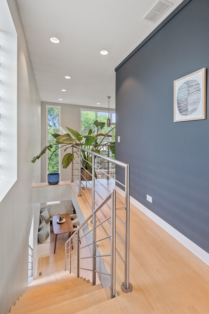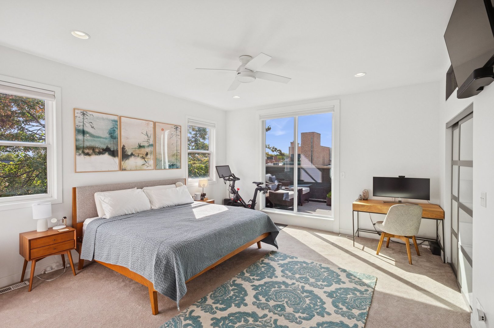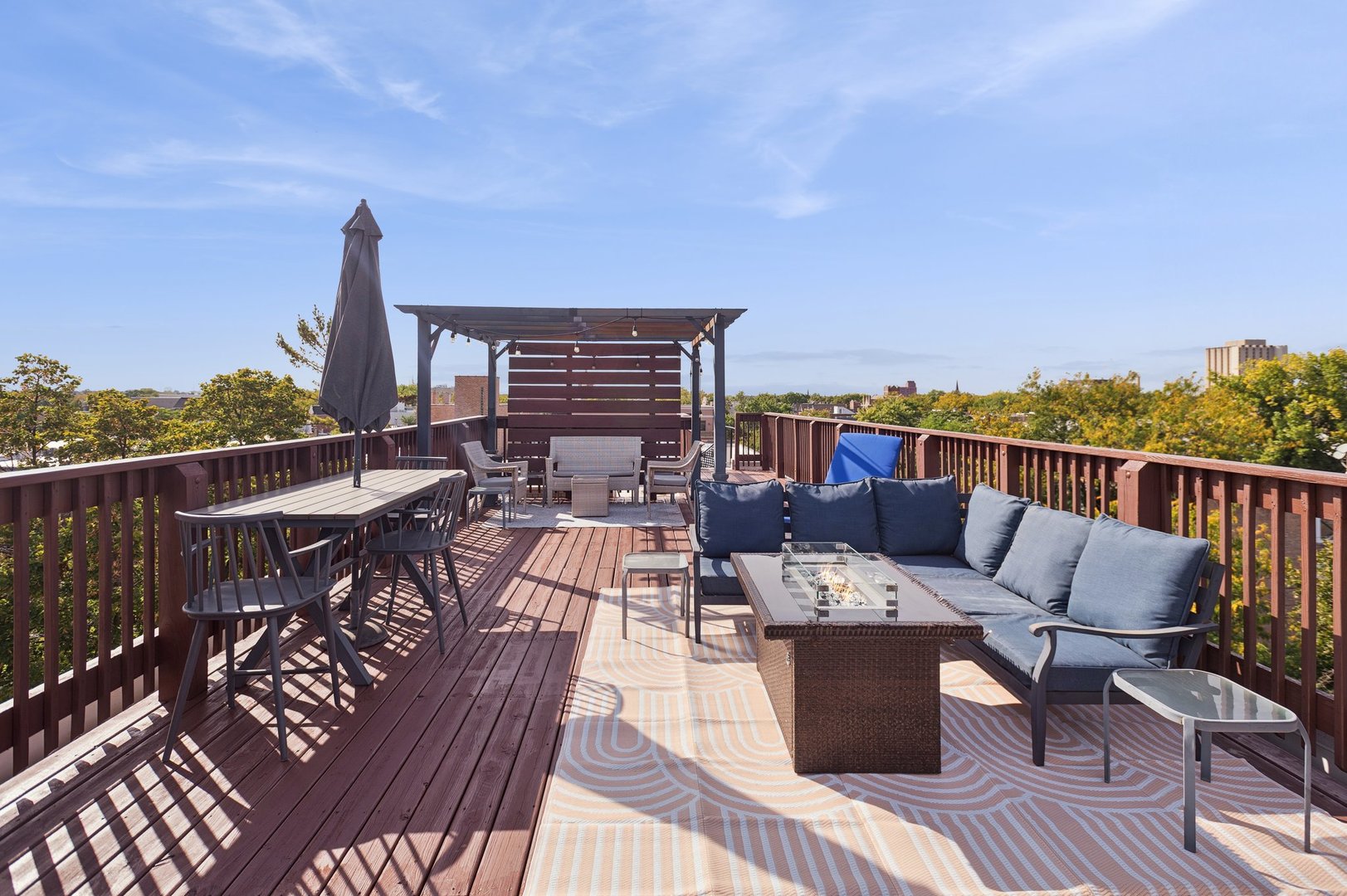 This pristine, well appointed penthouse duplex sits on a peaceful, tree-lined street in East Ukrainian Village. It has 4 private outdoor spaces (!), including an expansive private roof deck (16X40), perfect for an urban rooftop garden. The living room will wow you with 20 ft ceilings and floor-to-ceiling windows that fill the room with natural light, providing stunning tree-top and skyline views. Surrounded by the charm of the neighborhood yet steps from the energy of Chicago Avenue and Division Street, this home strikes the perfect balance between urban convenience and residential tranquility. Built just before zoning changes imposed height restrictions, this building is one of the tallest in the area, guaranteeing fabulous skyline views year-round. Many updates include new W/D, newer appliances (see Feature Sheet under add’l info tab) and HVAC. Roof only 9 years old. Well located as just a quick walk to Chicago Ave and Division Street with endless options for dining and shopping, including West Town Bakery, Roots, Dante’s Pizza, Black Dog Gelato, and the Michelin-starred Kasama — all within just one block. Convenient to Chicago and Damen bus lines w close proximity to both Green and Blue line CTA stops.