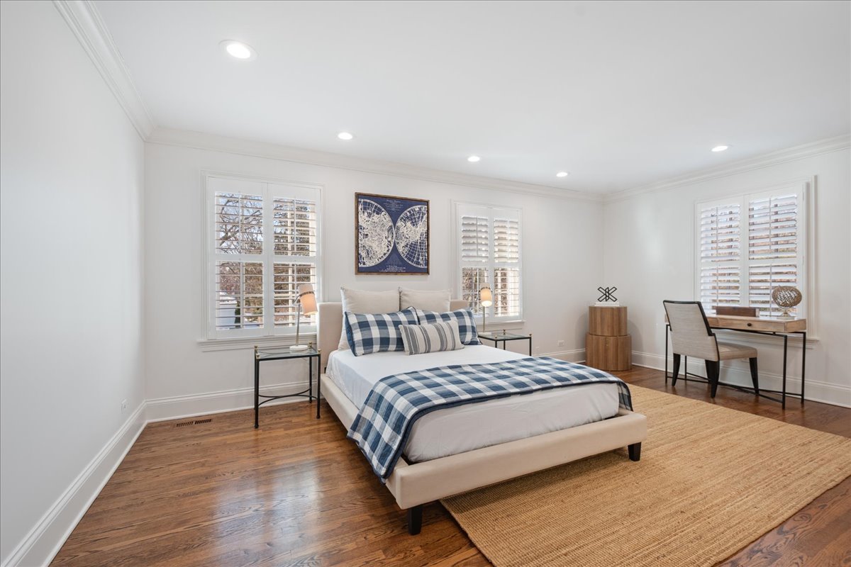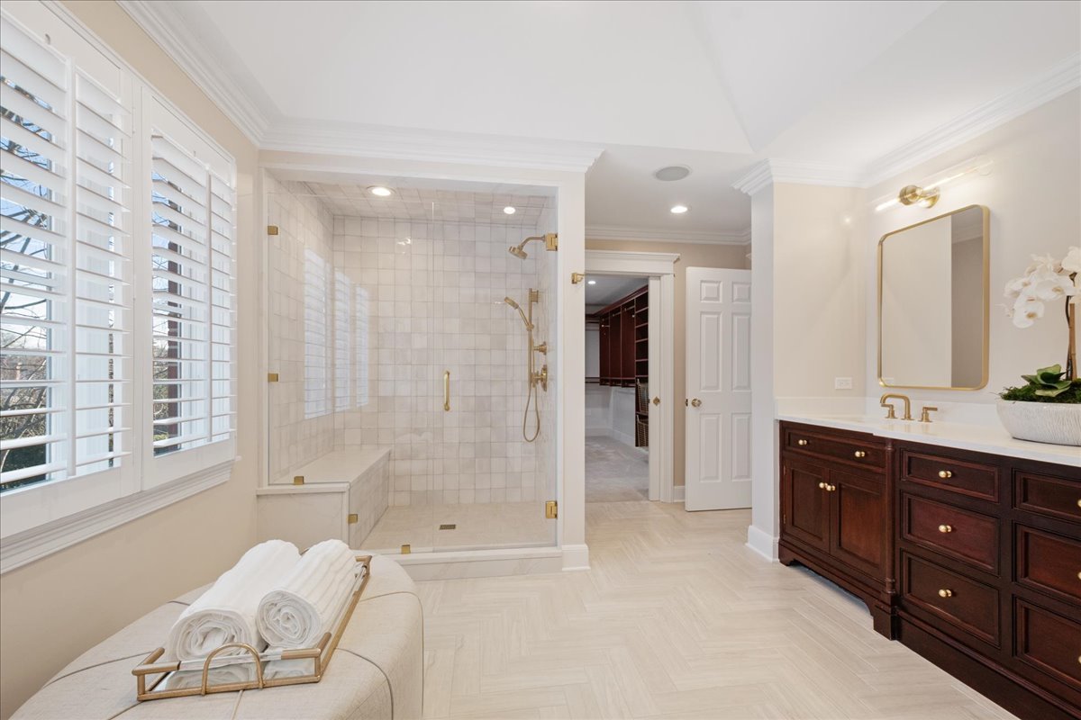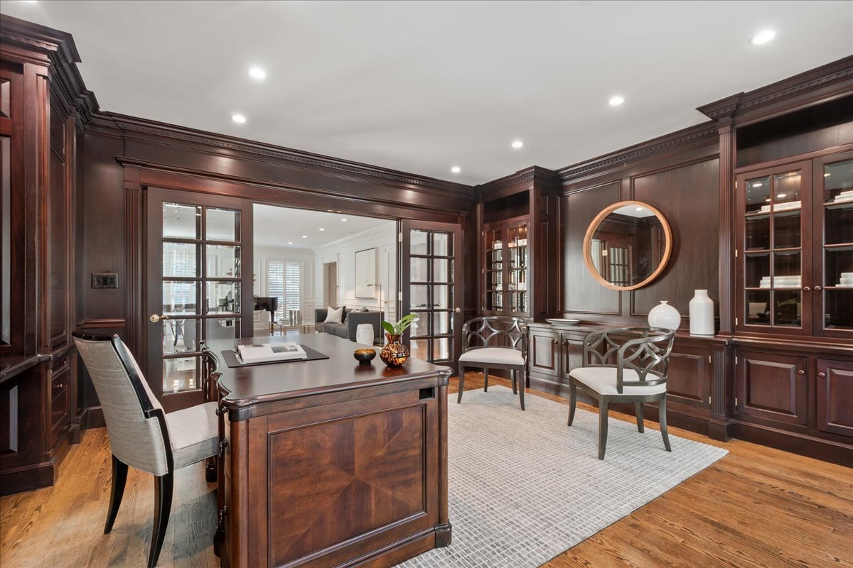 MOVE RIGHT IN to this BETTER THAN NEW, SOLID & timelessly updated 6-bedroom, 5.2-bath home. THERE IS NOTHING TO DO HERE as this house feels BRAND NEW! This exceptional home offers approximately 7,000 sq. ft. of living space and is ideally situated on a 1/2-acre lane just a short walk from downtown Winnetka, the train, nursery schools and K-8 schools, This MOVE-IN-READY home has all of today’s bells and whistles – NEW 1ST FLOOR ENSUITE BEDROOM & BATHROOM, huge Christopher Peacock kitchen, RENOVATED 2ND FLOOR ENSUITE PRIMARY BATHROOM, screened-in-blue stone porch with fireplace, movie theater, massive finished basement, dual staircases, circular driveway and attached, heated 2+ car garage. Exquisite custom moldings, large-scaled rooms and finely crafted cabinetry are found at every turn. Designed to bring the outdoors in, sunlight floods throughout this home with almost every room opening up to the professionally landscaped backyard through floor-to-ceiling windows and French slider doors out to the bluestone patio. No expense has been spared, with nearly every mechanical system updated within the past 3 years. The current owners have invested over $400,000 in improvements, including more than $50,000 in designer lighting with an emphasis on Kelly Wearstler Lighting. The entertainer’s kitchen is a true showpiece, featuring an oversized 11-ft island, a spacious eat-in area which accommodates a table for 14, Thermador 6-burner range and double ovens, Sub-Zero column refrigerator and freezer, Cove dishwasher, Newport Brass polished nickel fixtures, wet bar and an exquisite butler’s pantry. The home office is a work-from-home dream, showcasing floor-to-ceiling wood paneling, custom cabinetry and French beveled glass doors. The 1st floor also includes a gracious living and family room each with a fireplace, generous mudroom/laundry room, screened-in porch with fireplace & vaulted beadboard ceiling, a first-floor ensuite bedroom which alternately can serve as a 2nd first floor office and 2 powder rooms. Upstairs, the expansive primary suite features a fireplace & sitting area, a luxurious walk-in closet with an island and a newly renovated spa-like bathroom. Four additional very large bedrooms (1 professionally treated for recording grade quietness perfect for music/podcast production) complete the 2nd level with 2 of the bedrooms having ensuite bathrooms and walk-in-closets. The finished lower level offers exceptional versatility with an exercise room, movie theater, professional workshop, recreation room, and storage galore. The outdoor living is equally impressive showcasing a bluestone patio spanning the entire width of the house (extra-wide, 111 ft lot), outdoor fireplace, built-in grill, sound system, professional uplighting and, fully-fenced yard with room for a pool. Originally built by a builder for his own family, this custom home exemplifies SUPERIOR CRAFTMANSHIP and is among THE MOST SOLID & WELL-BUILT HOMES you will find on the North Shore.