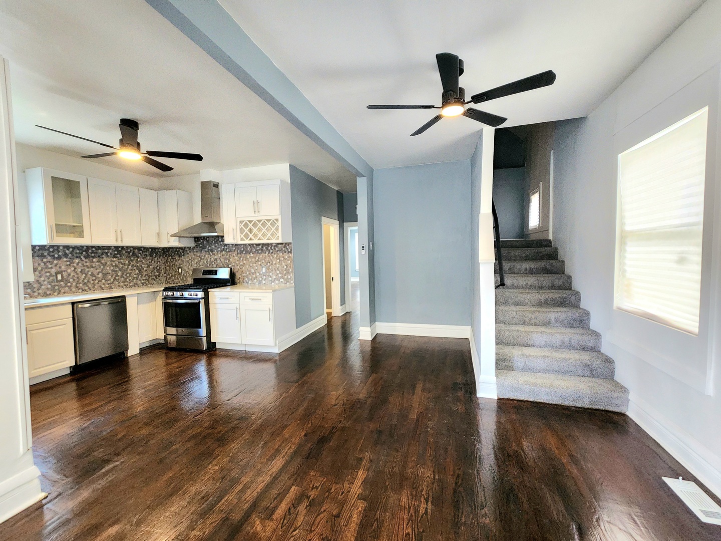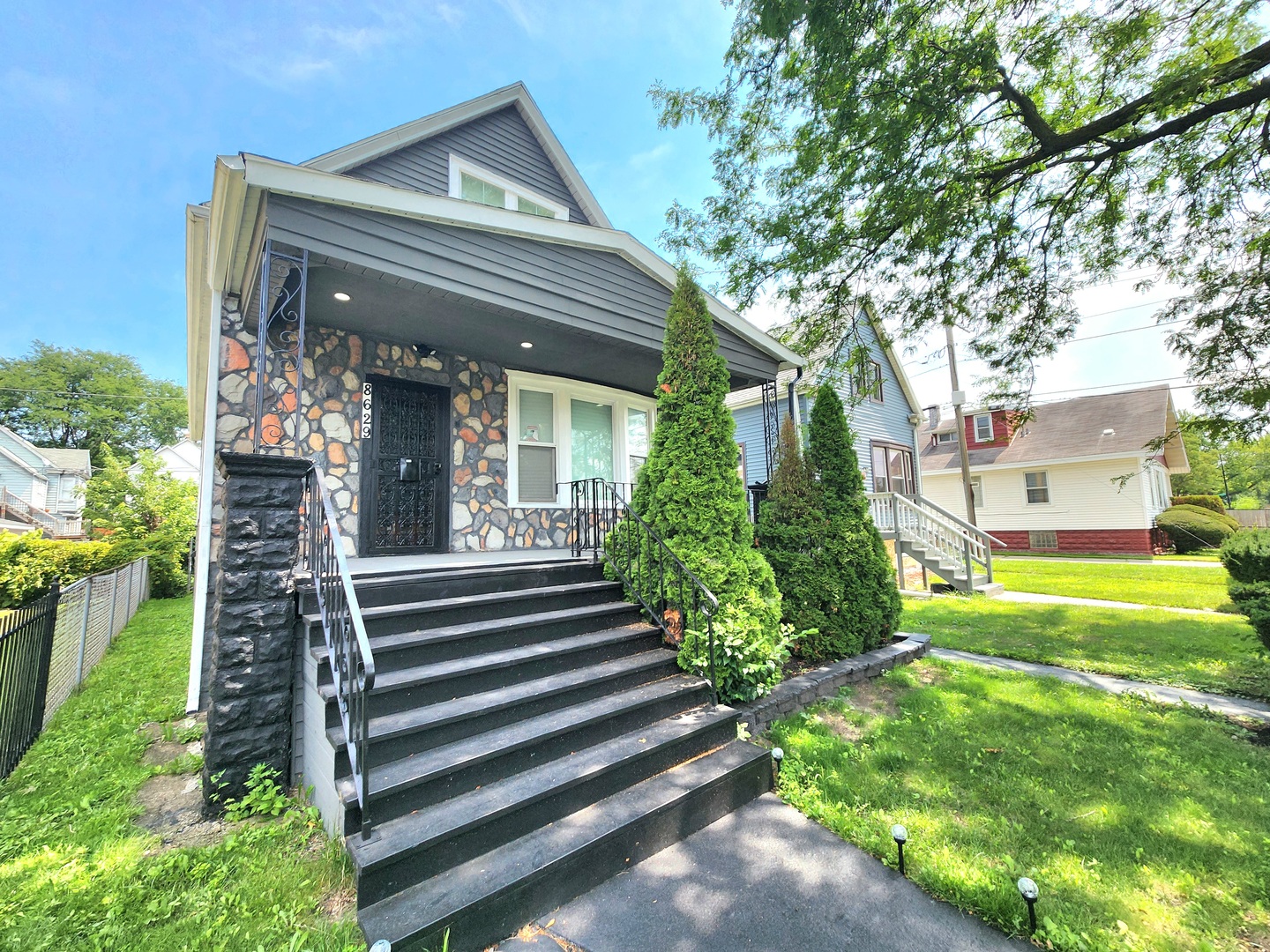 Welcome to this beautifully updated and spacious 5 bedroom 3-bathroom home with hardwood floors throughout, featuring a stunnning open-concept kitchen and dining area. Enjoy cooking in a kitchen equipped with stainless steel refrigerator, dishwasher and stove with a sleek wall mount range hood, standing cabinets with a wine rack, and elegant quartz countertops. The huge master bedroom offers a private retreat with a walk-in closet with a connecting bathroom. The fully finished basement includes a bedroom, laundry area with cabinets, generous storage space, bathroom and endless possibilities for entertainment or a home office. This home boasts all newer appliances a brand-new roof and HVAC system. Step outside to a huge backyard with patio area and a side yard-perfect for your next gathering. A detached 2-car garage is also included. Conveniently located near public transportation, schools, grocery stores, shopping areas and much more. Don’t miss this gem-schedule your showing today!