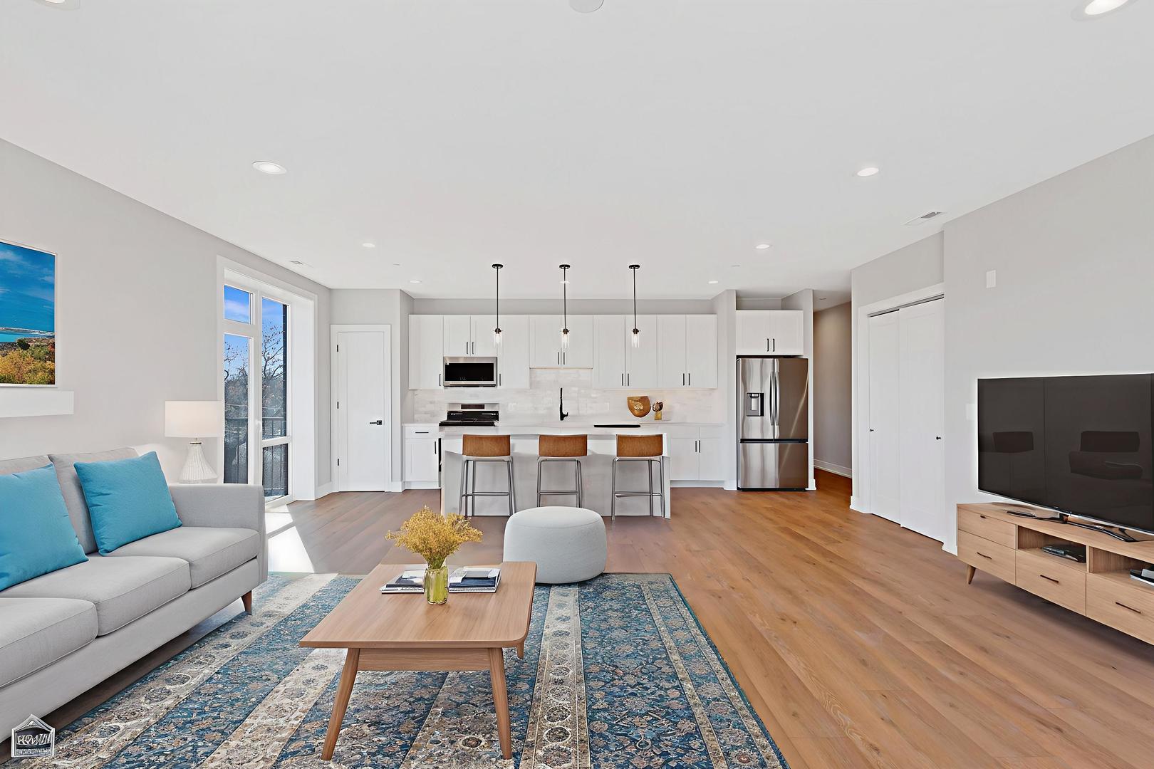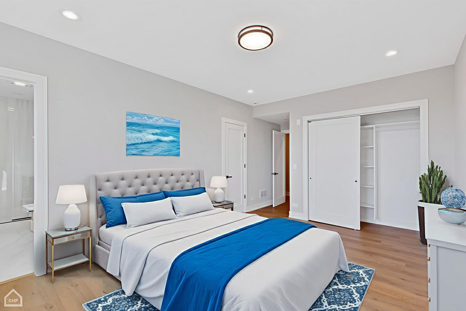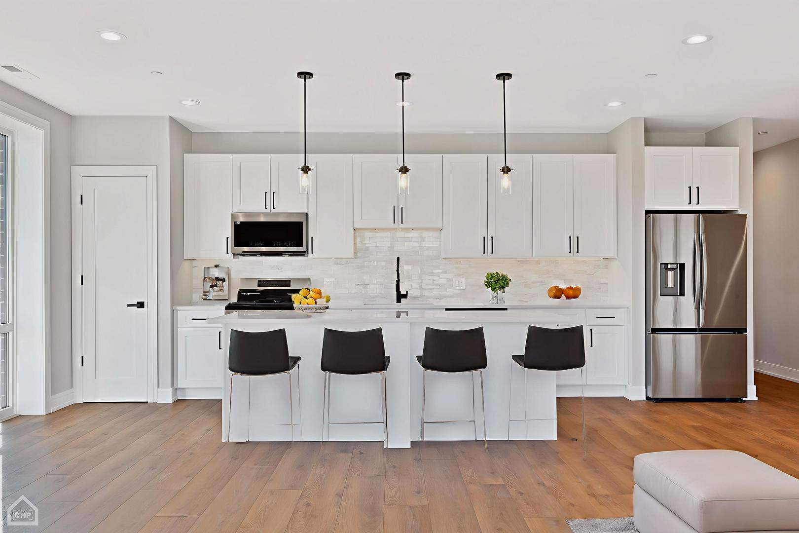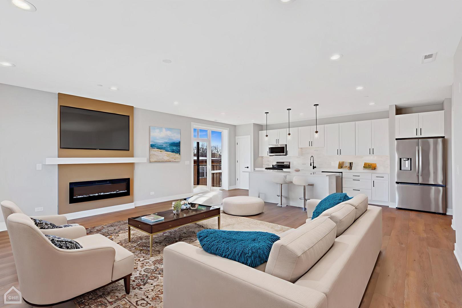 1 LEFT! New Construction River Grove (8) massive wide expansive 3-bedroom 2 bath units includes 2 tandem remote secured parking spaces PLUS private fenced yards with patio OR substantial private attached entertainment sized decks strategically located off main living space. Luxury finishes, wide planked engineered floors throughout. fully appointed chefs’ kitchen, quartz countertops, tiled backsplash, Stainless Steel appliances, Fingerprint resistant, 5 burners cook top, pantry, island, and separate pantry. High Quality Mill Work, Fireplace, Resort caliber porcelain baths, frameless glass, walk in shower, double vanity sink, primary suite with super-sized walk in closet, all closets professionally organized. Exterior bike racks, Fire Sprinkler System, Exceptional location minutes from public transit, parks, dining, shopping and much more. Model ready. Pricing from 399k-419k Hands on Veteran Developer with over 20 years experience. 1 year builder warranty included. Huntington Bank is offering to all qualified buyers as low as 97 LTV No PMI and significant contributions towards a purchasers closing expenses. Ask for more details. Guest parking available at public library during showings directly across the street.