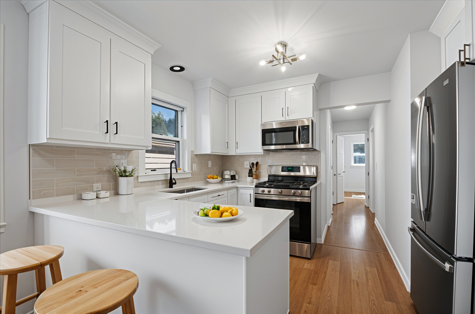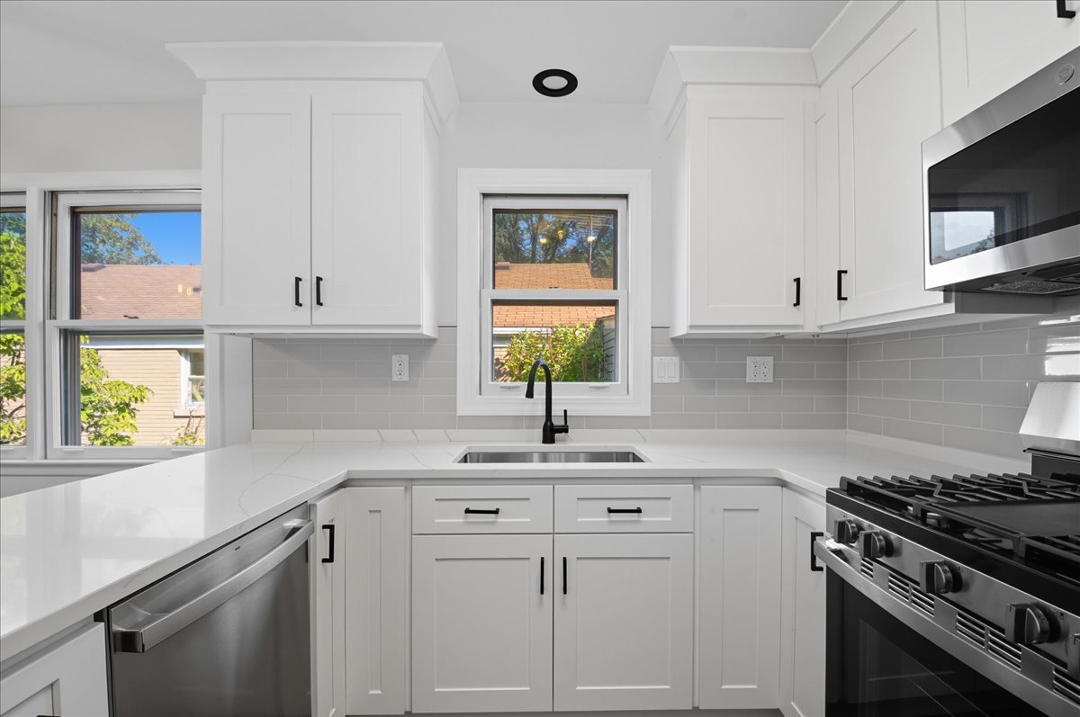 Welcome Home! Step into this thoughtfully updated 3-bedroom, 1-bathroom residence that perfectly blends modern upgrades with timeless charm. Impeccably remodeled throughout, this home features a newly renovated kitchen with sleek quartz countertops, stainless steel appliances, and a well-designed layout that maximizes space and function. The luxury bathroom showcases contemporary fixtures, a high soaker tub, and elegant gold-trim accents, creating a spa-like retreat. Beautifully refinished hardwood floors flow throughout, providing a warm and welcoming foundation for your new home. The partially finished basement offers a cozy fireplace, a large bay window that floods the space with natural light, and warm ambient lighting for relaxing evenings. You’ll also find a dedicated office area with built-in storage, a new laundry area with brand-new washer and dryer, and additional storage space for everyday convenience. Enjoy peace of mind with major system upgrades, including new furnace and A/C, new water heater, updated plumbing and modernized electrical. Outside, both the front and back yards feature new sod, perfect for gardening or play. Entertaining is a breeze with outdoor electric hookups, a gas line for your BBQ. The 2-car garage adds practicality and convenience. Nestled in a charming neighborhood near expressways, public transportation, parks, shopping, and dining, and located within the Skokie-Morton Grove school district, this home offers an unbeatable blend of comfort, location, and style. Move-in ready and designed for modern living, this is the perfect place to call home.