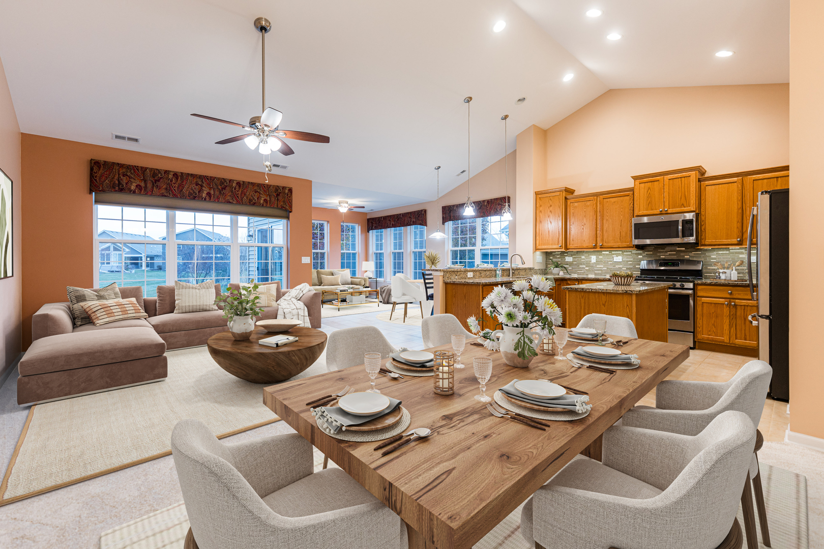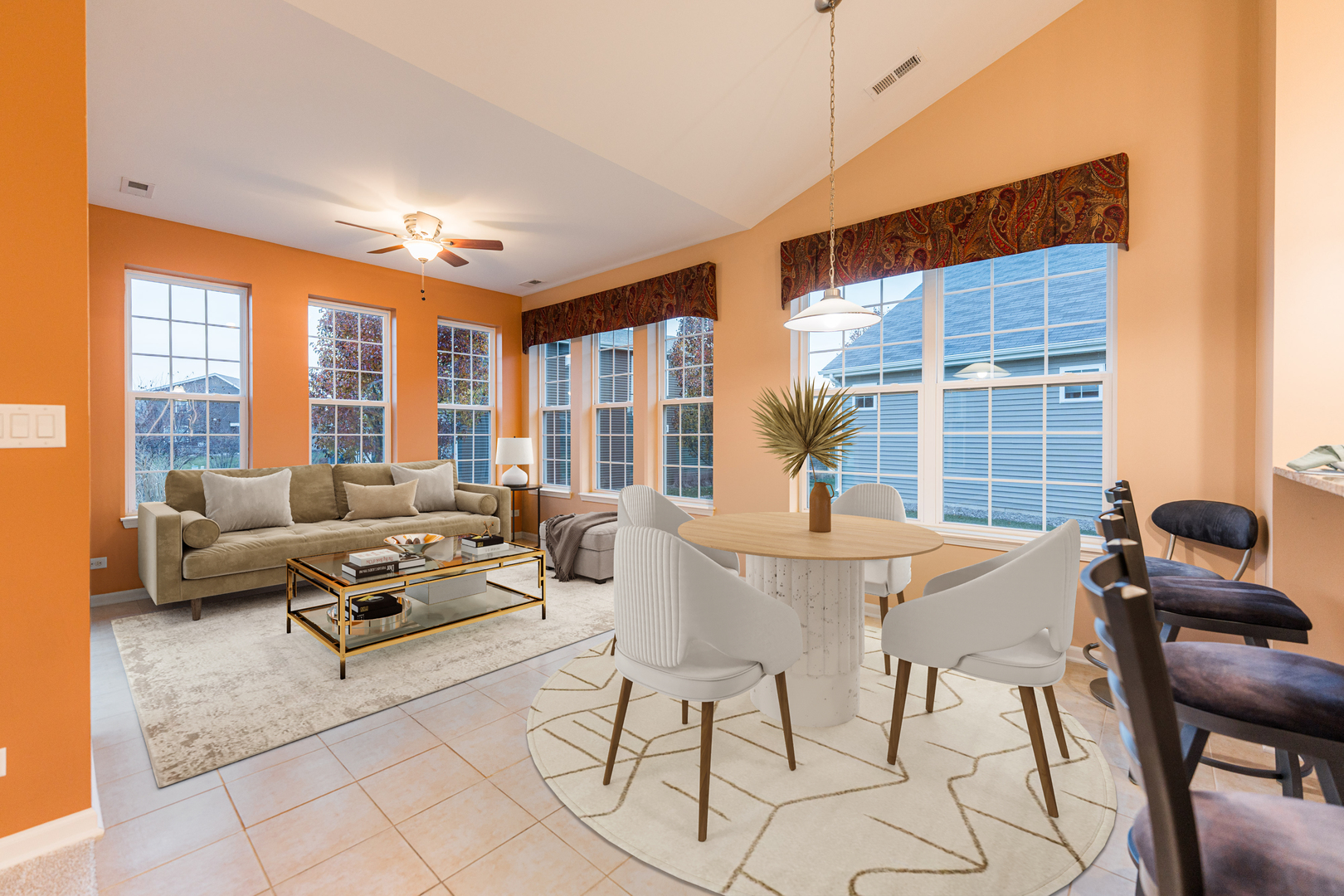HOME FOR THE HOLIDAYS??? Quick close is available. NO MORE SHOVELING! NO MORE MOWING LAWNS! TIME TO ENJOY RETIREMENT! If you like the idea of low maintenance living, but like the freedom of a single family home, this place is for you! Welcome to the 55 and up community of Carillon. This very popular Monte Carlo model has 2 car heated garage, 2 bedrooms and an office as well as A LARGE SUN ROOM! The kitchen features vaulted ceilings, granite counters, and glass backsplash. You have a dining area AS WELL as an eating area in the kitchen, making it a great set up for entertaining! Need some quiet time? Curl up with a book in the sunroom and enjoy all of the bright light streaming in. Enjoy a relaxing soak in the walk-in tub by Ella Bubbles (installed 2023). The living room and office feature motorized blinds which can be controlled with a remote or your phone. The Aprilaire Humidifer was installed in 2024. Carpet installed 2025. If you are an outdoor person, you can enjoy grilling with a gas grill hook up in the back on your beautiful extended patio. This lot is very private for the area! Mature landscaping and trees make this a relaxing retreat. The community features a 3 hole golf course (exclusively available for residents and their guests), indoor and outdoor swimming pools, work out room, billiards, community room (with loads of activities), tennis/pickleball courts and more! If you enjoy walks, there are sidewalks throughout the community and approximately 2 miles of walking/biking paths around the community ponds. Snow removal and lawn care are included as well in your monthly assessment, allowing you do just move in and relax! Welcome home!