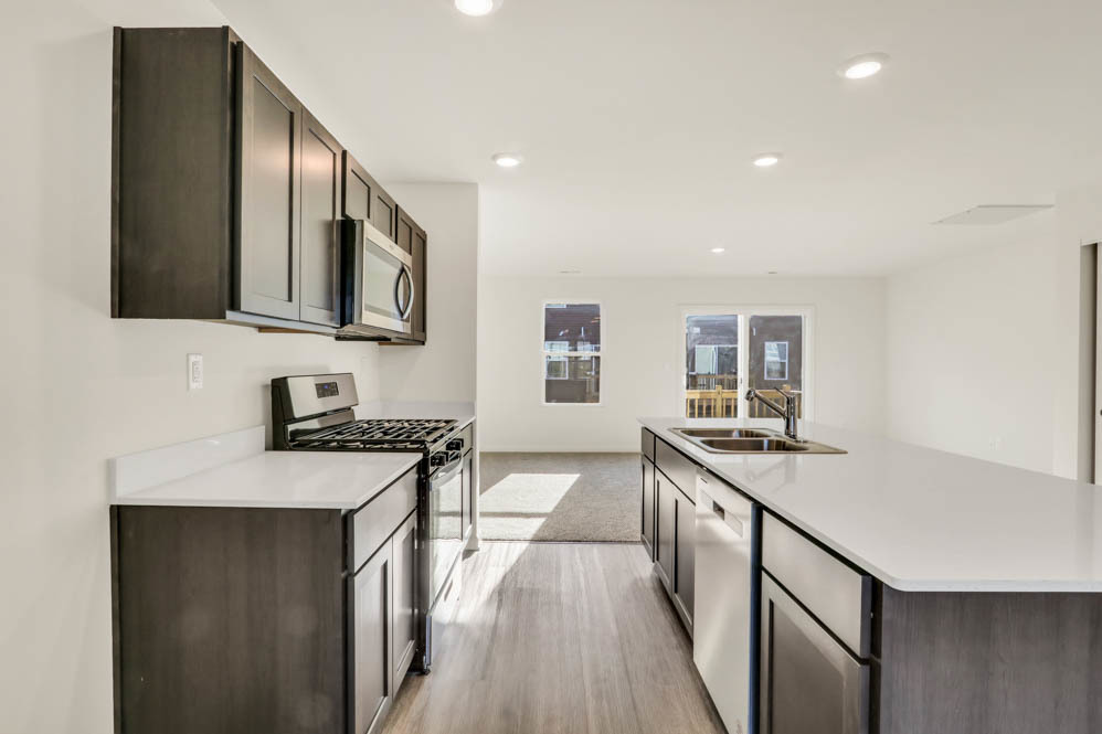 Find yourself at 873 Briar Glen in Hampshire, Illinois, a beautiful new home in our Prairie Ridge community. This townhome will be ready for a late fall move in! Homesite includes a fully sodded yard that is maintained throughout the year as well as snow removal in the winter. This end unit Garfield townhome plan offers 1,756 square feet of living space with 3 bedrooms 2.5 baths, and a finished bonus room. Walking up to the main level, you will find this home’s open concept living space. The expansive kitchen overlooks both the front dining and back great room areas, making it the ideal space to entertain. Step outside onto your balcony, relax and enjoy your morning coffee. Additionally, your kitchen features designer cabinetry, a spacious island with quartz countertops, and pantry. Walking upstairs enjoy your private get away with your large primary bedroom on its own side of the second floor with a en suite bathroom containing a raised dual quartz vanity and walk-in closet. Enjoy the convenience of a second-floor laundry, a second and thrid bedroom with a full second bath. Luxury vinyl plank flooring throughout the kitchen, bathrooms, and laundry. Impressive innovative ERV furnace system and tankless water heater round out the amazing features this home has to offer! Welcome to Prairie Ridge, a new townhome community in Hampshire, IL. Located just minutes from I-90, Rt. 20 and Rt. 47, you’ll have easy access to restaurants, grocery stores, and shopping! Designed for the perfect functionality, this community features low maintenance living, with modern 3-story townhome floorplans. All Chicago homes include our America’s Smart Home Technology, featuring a smart video doorbell, smart Honeywell thermostat, Amazon Echo Pop, smart door lock, Deako smart light switches and more. Photos are of similar home and model home. Actual home built may vary.