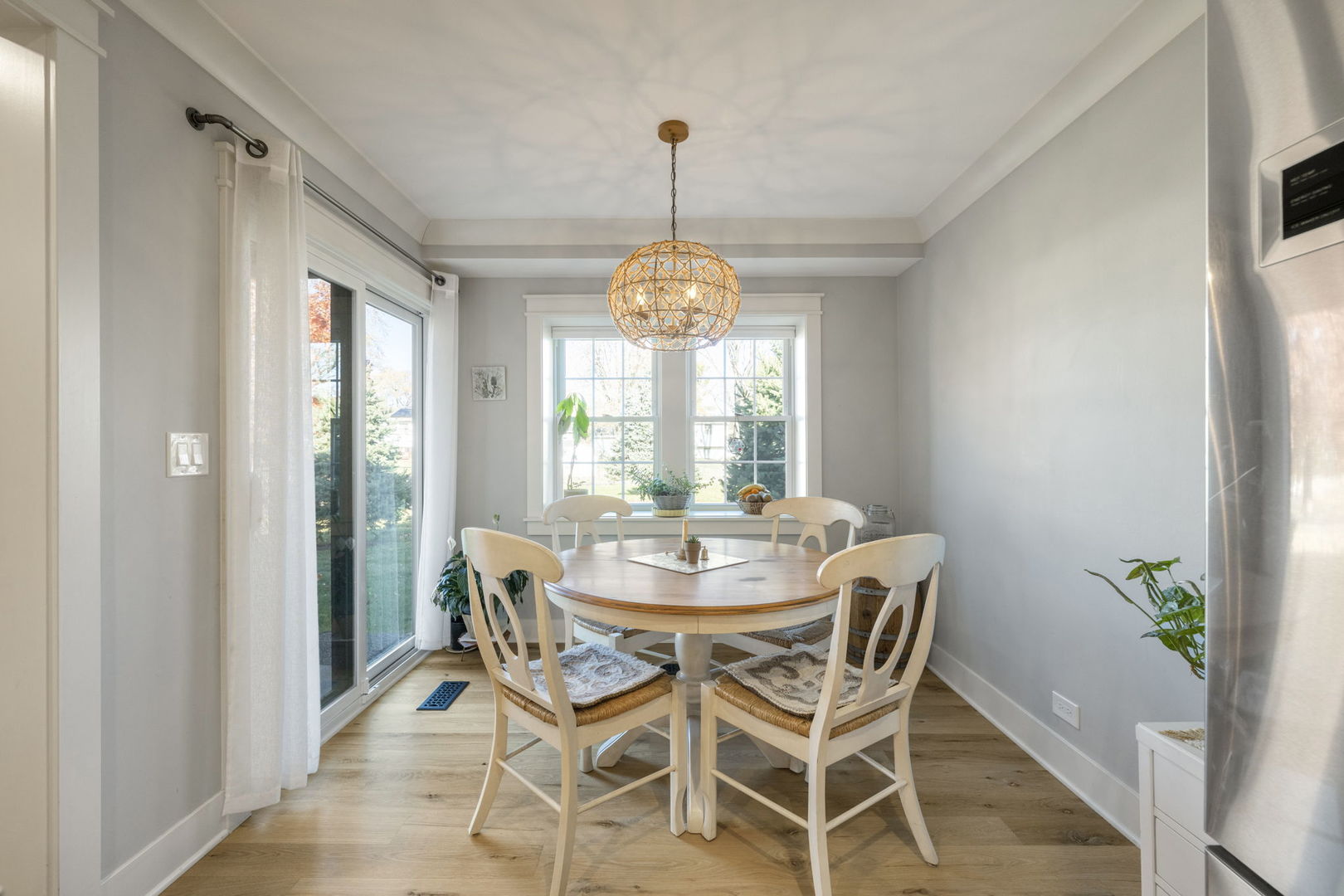 ***UPDATE*** Multiple offers received! All offers will be reviewed Monday, 12/8 evening. Please submit your offers before 5 PM. Rarely Available, Move-In Ready 3 Bedroom, 2 Bathroom First-Floor Condo! This meticulously maintained first-floor unit offers thoughtful updates and custom touches throughout. Step into the welcoming foyer and discover a pantry with custom-built shelves and in-unit laundry featuring custom cabinetry and a stylish ceramic backsplash. The open-concept kitchen is a chef’s dream, with a reclaimed wood island countertop, maple soft-close cabinets, quartz countertops, and a ceramic backsplash. White oak flooring flows seamlessly through the kitchen, living area, and bedrooms. THOR stainless steel appliances (2020), including a 36″ professional gas range with over-the-stove pot filler, elevate your cooking experience. A high performance water filtration system and a high efficient reverse osmosis system provides fresh, clean water for everyday use. The spacious living room features a gas fireplace and glass sliding doors (2020) from both the living and dining room, opening to the patio for year-round enjoyment. The master suite includes a walk-in closet with custom-built shelves and a private bathroom, while both bathrooms boast elegant porcelain walls and floors. Additional highlights include a one-car garage with extra storage, newer windows, HVAC, and water heater (all replaced in 2020), plus a smart thermostat for modern convenience. Ideally located within walking distance to schools, parks, and scenic walking paths, this condo offers a perfect blend of comfort, style, and move-in-ready convenience!
